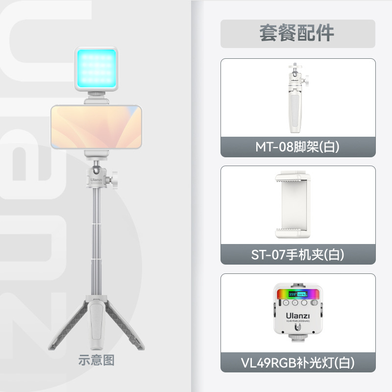 • [휴대폰 셀카 필라이트-화이트] 확장형 삼각대 + 콜드슈 휴대폰 클립 + VL49RGB 필라이트
