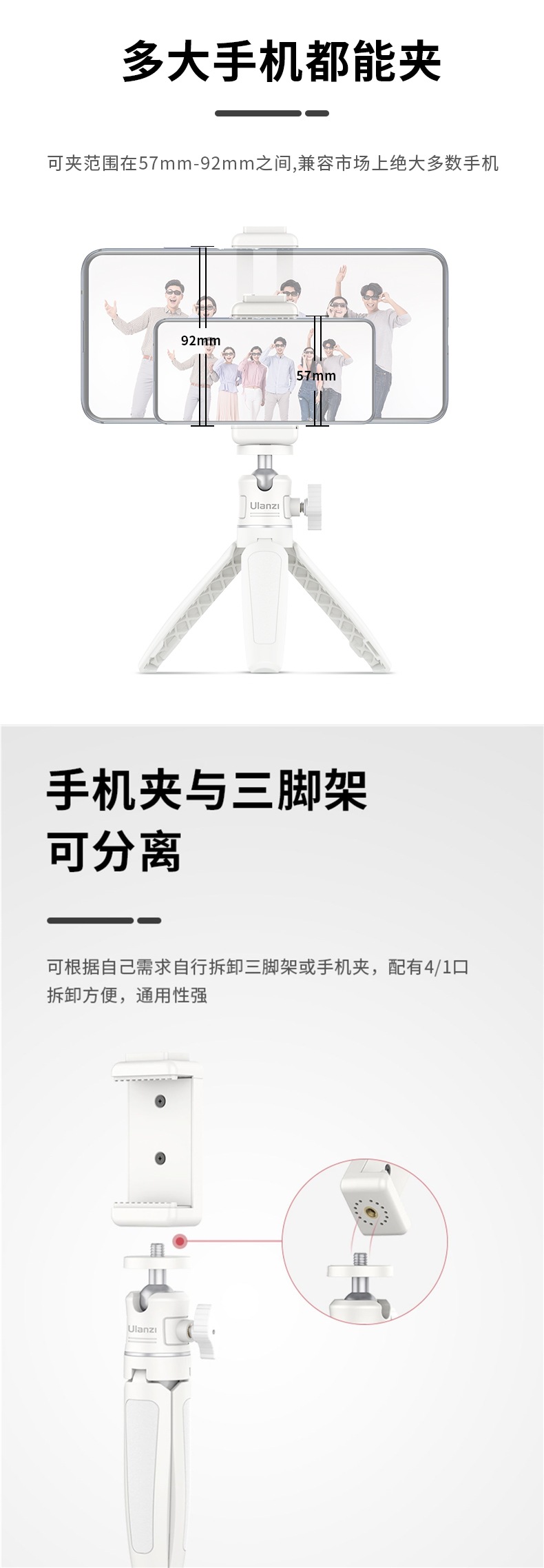 Ulanzi MT-08 미니 카메라 휴대폰 홀더 삼각대 휴대용 셀카봉 사진 vlog 휴대용 사진