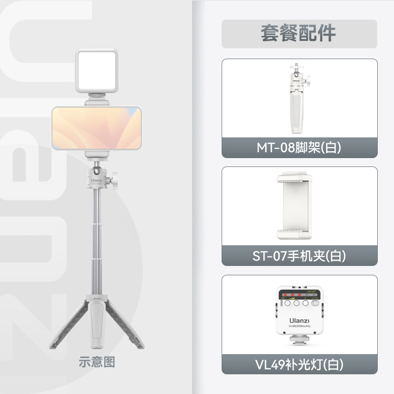 • [휴대폰 셀카 필라이트-화이트] 확장형 삼각대 + 콜드슈 휴대폰 클립 + VL49 필라이트