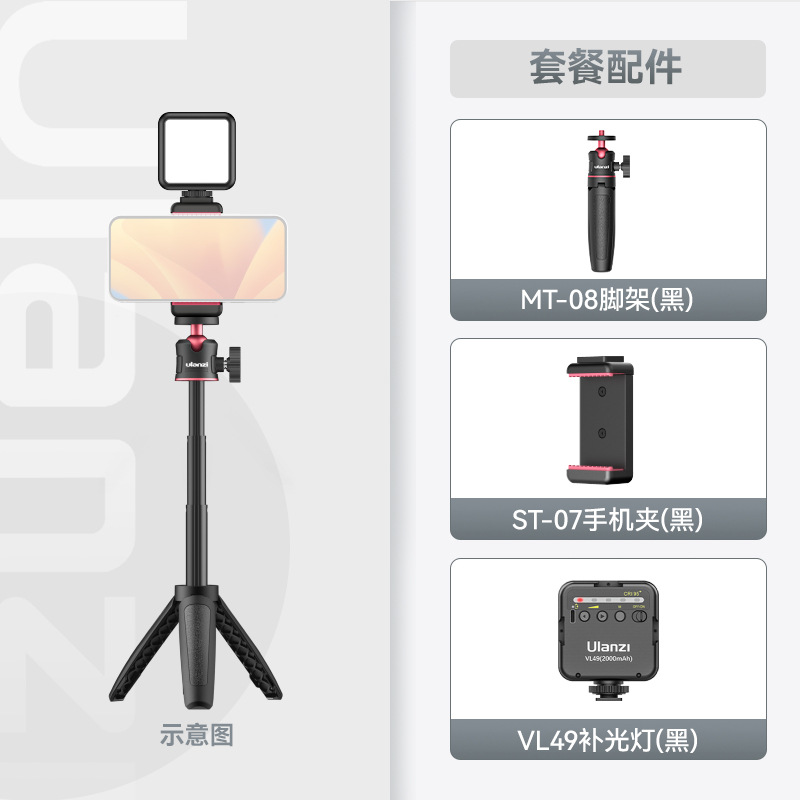 • [휴대폰 셀카 필라이트-블랙] 확장형 삼각대 + 콜드슈 휴대폰 클립 + VL49 필라이트