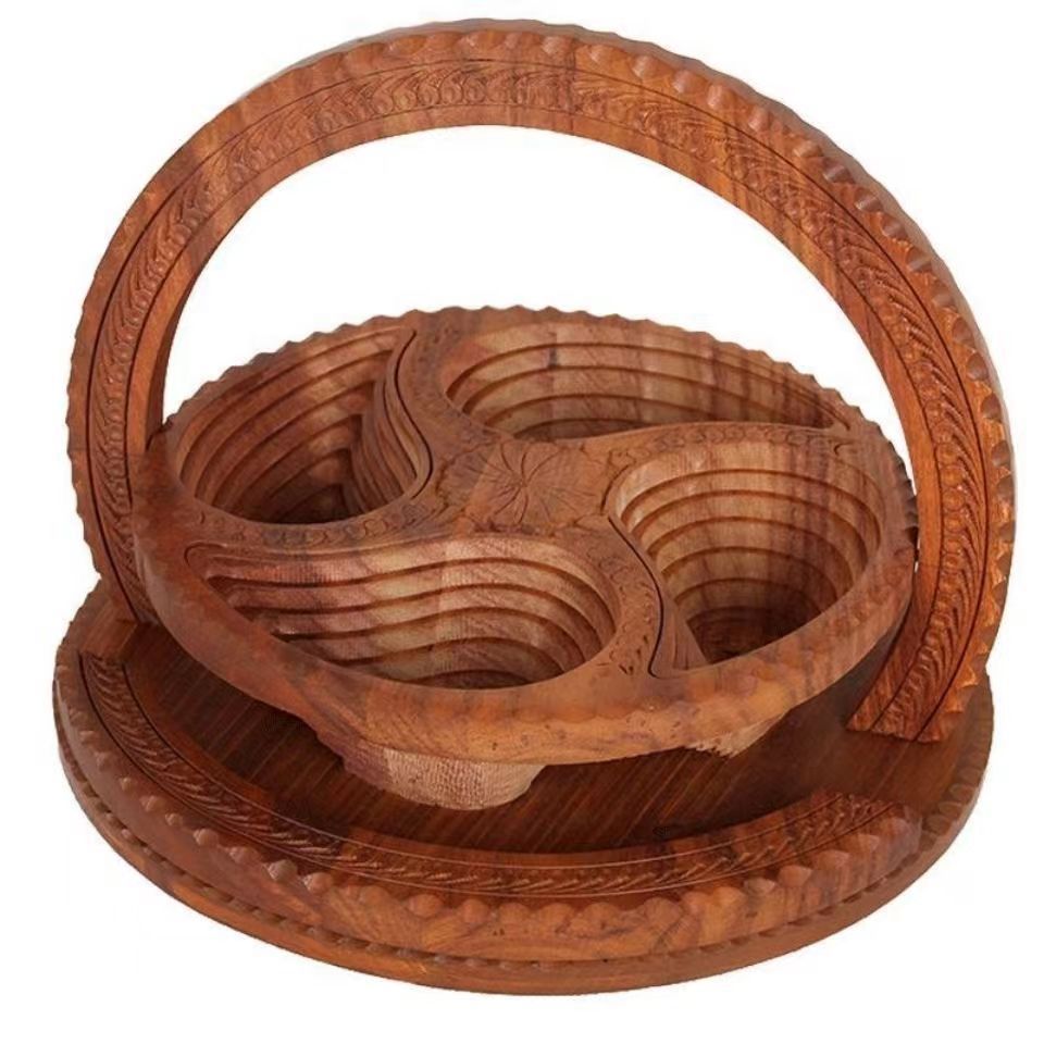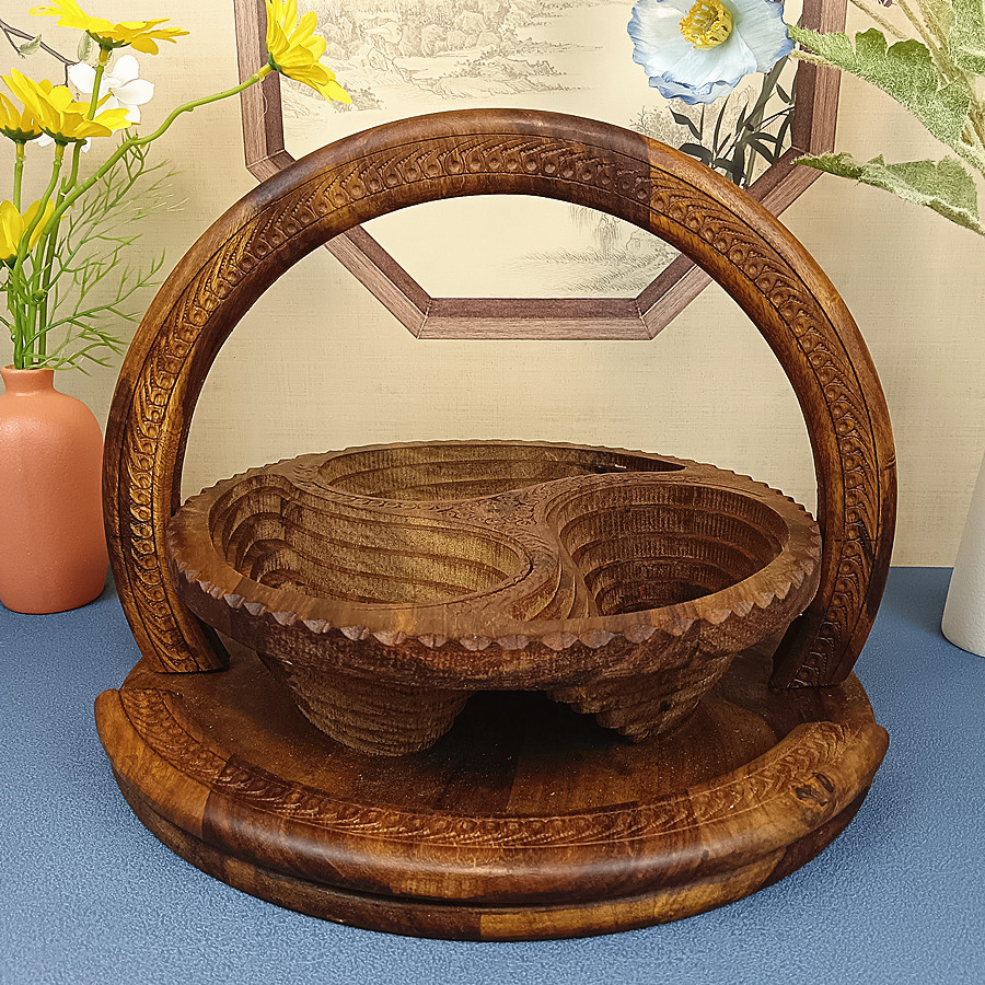파키스탄 말린 과일 바구니 과일 접시 수제 나무 과일 바구니 단단한 호두 나무 조각 단일 그리드 멀티 그리드 견과류 접시