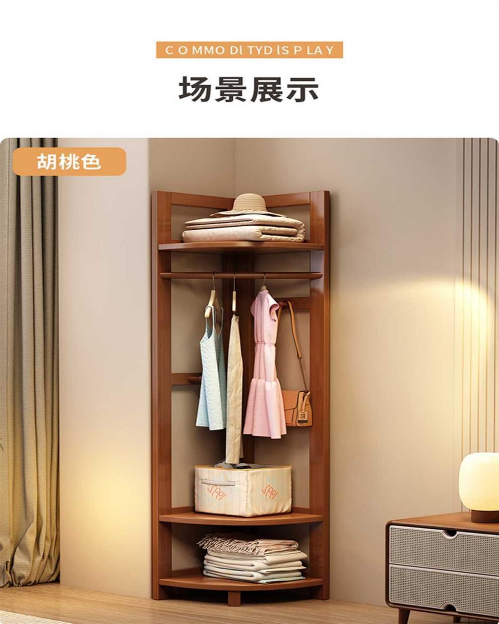 단단한 나무 코너 옷걸이 바닥 침실 옷걸이 보관 랙 간단한 가정용 코너 옷걸이스토어 가기