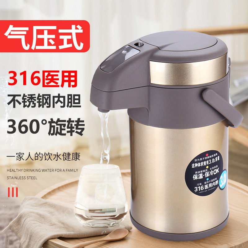 보온병 가정용 푸시식 공기압 냄비 자동차 냄비 316 스테인레스 스틸 보온병 3 리터 푸시 대용량 4