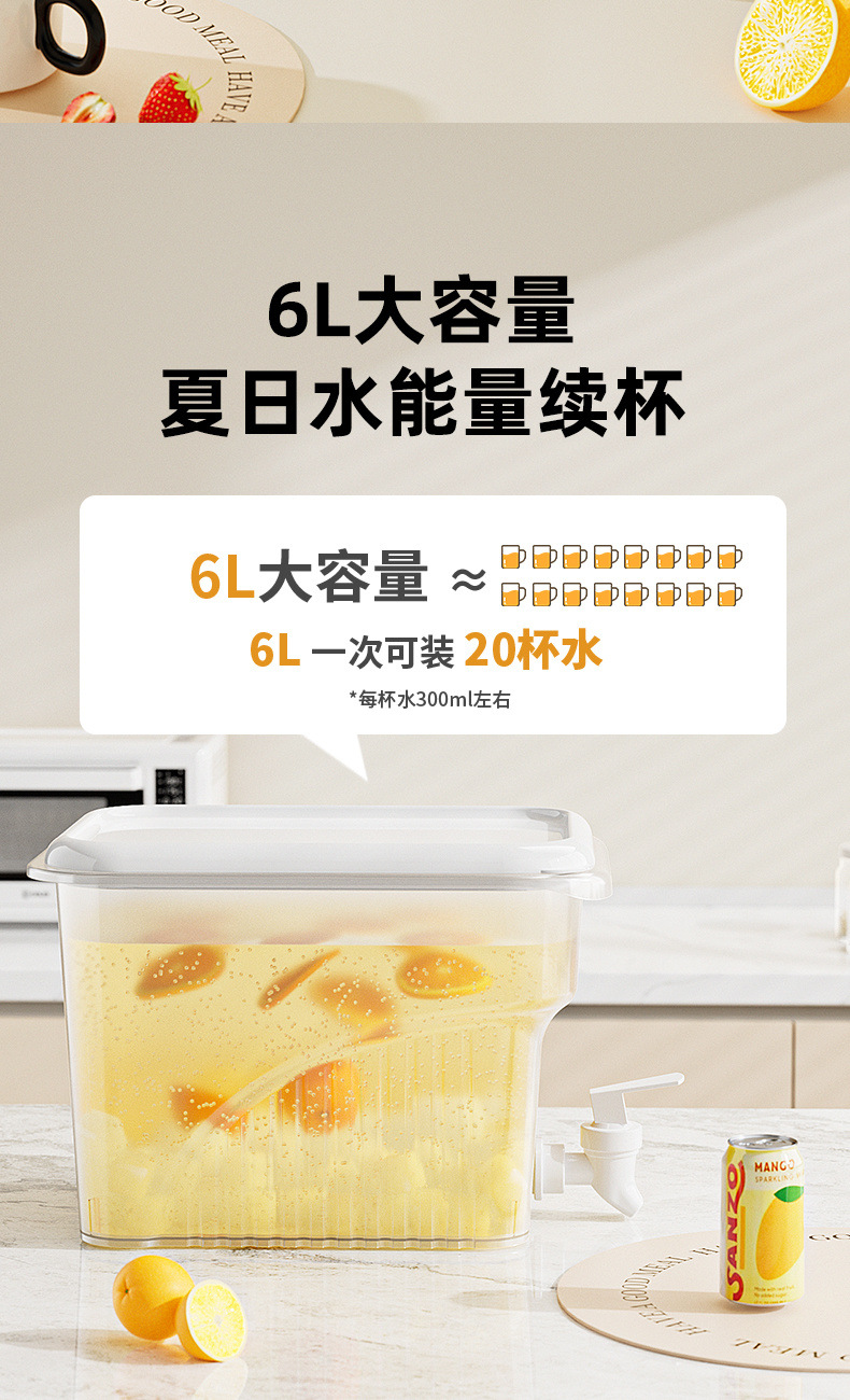 수도꼭지가있는 여름 냉수병 가정용 냉장고 과일 레몬 차 식품 보관 상자 젖빛 공장 도매