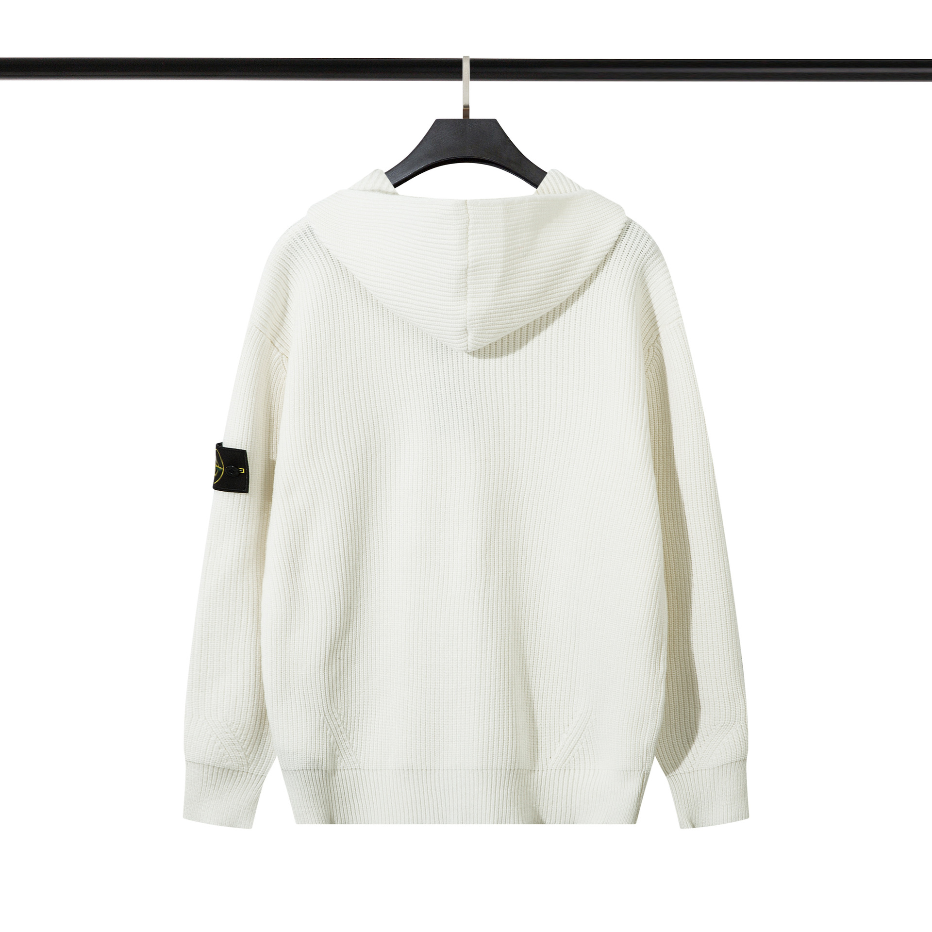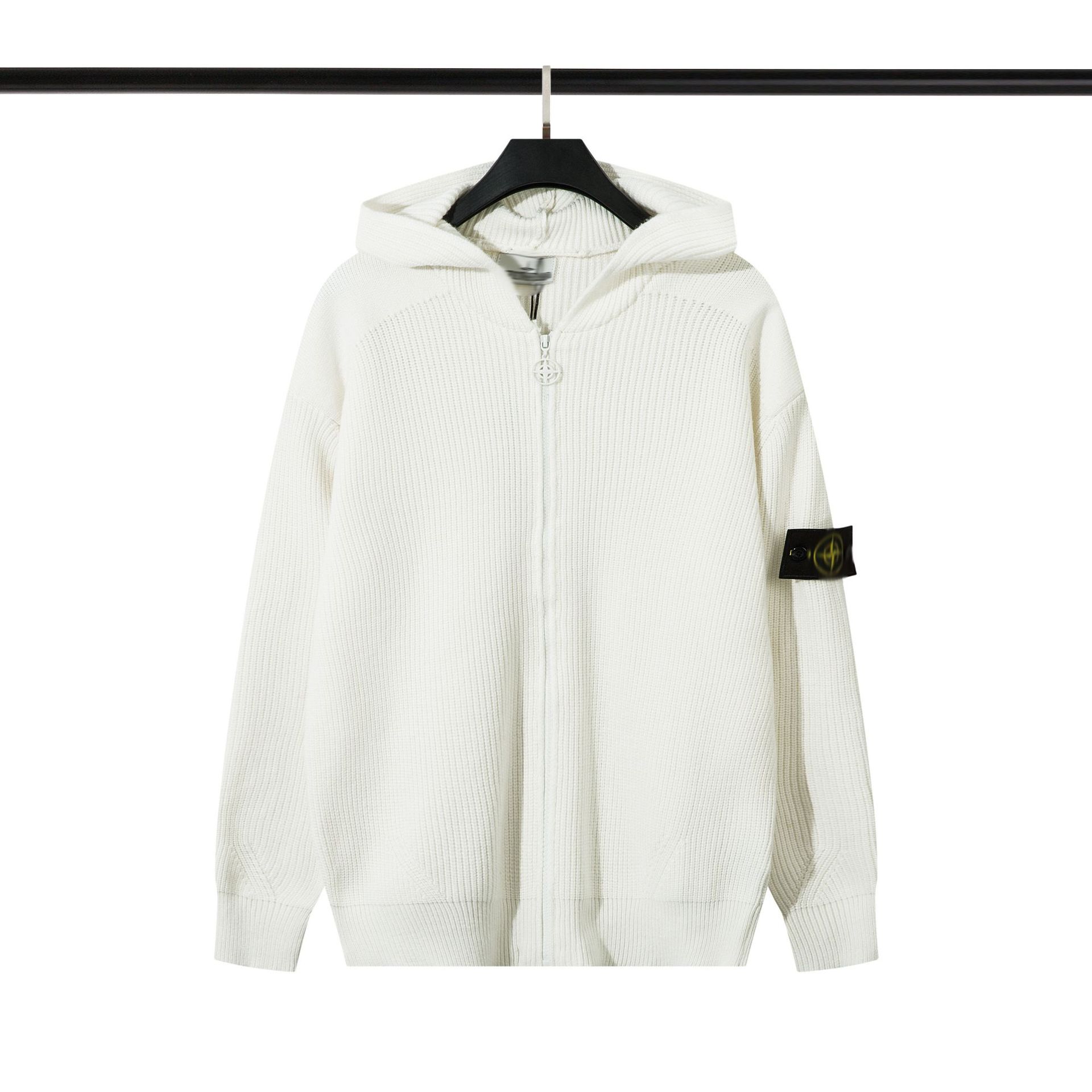 국경을 넘는 유럽과 미국의 트렌디 브랜드 STONE 스톤 지퍼 오픈 가슴 후드 배지 기능성 니트 스웨터 가을 겨울 남성과 여성