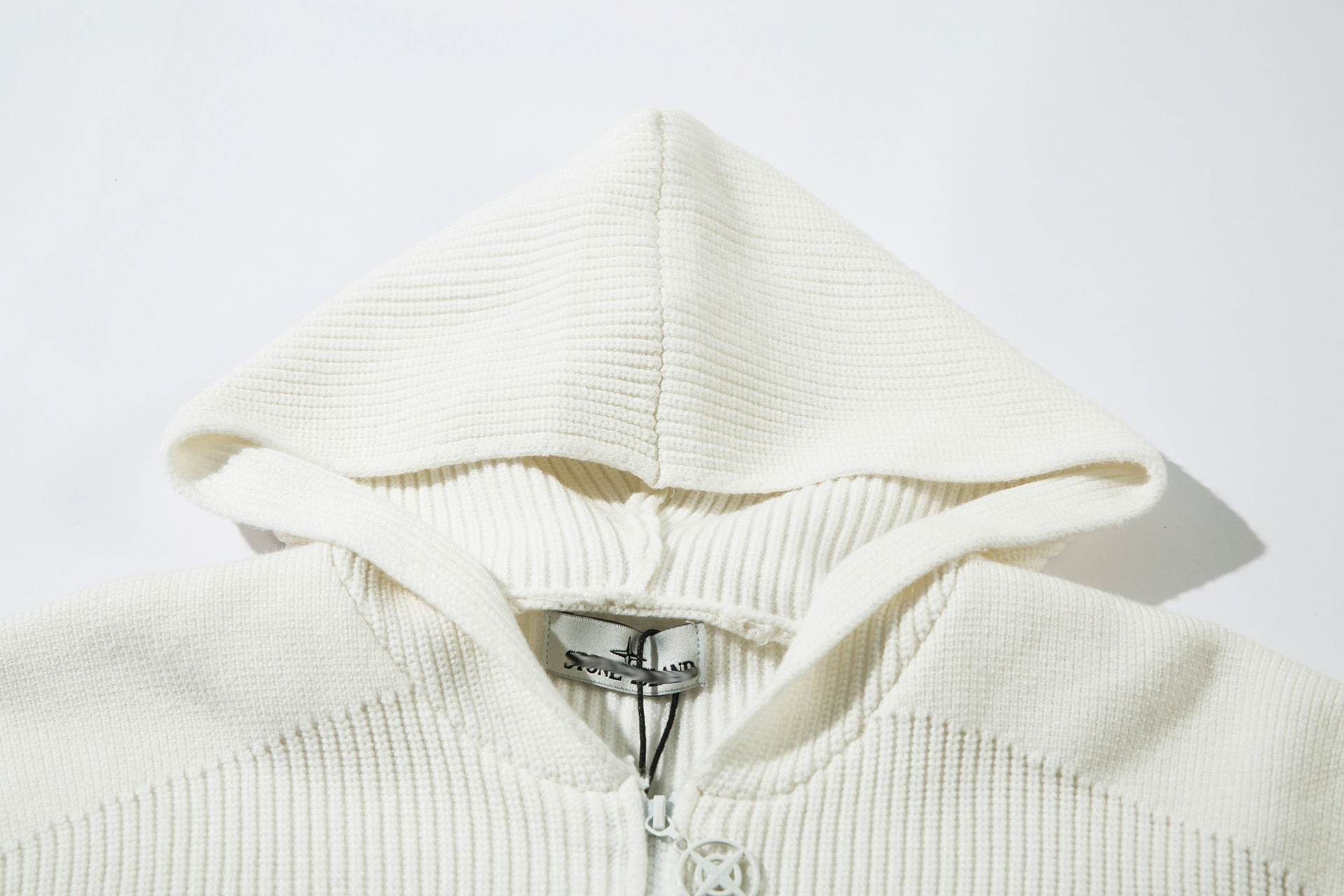 국경을 넘는 유럽과 미국의 트렌디 브랜드 STONE 스톤 지퍼 오픈 가슴 후드 배지 기능성 니트 스웨터 가을 겨울 남성과 여성스토어 가기
