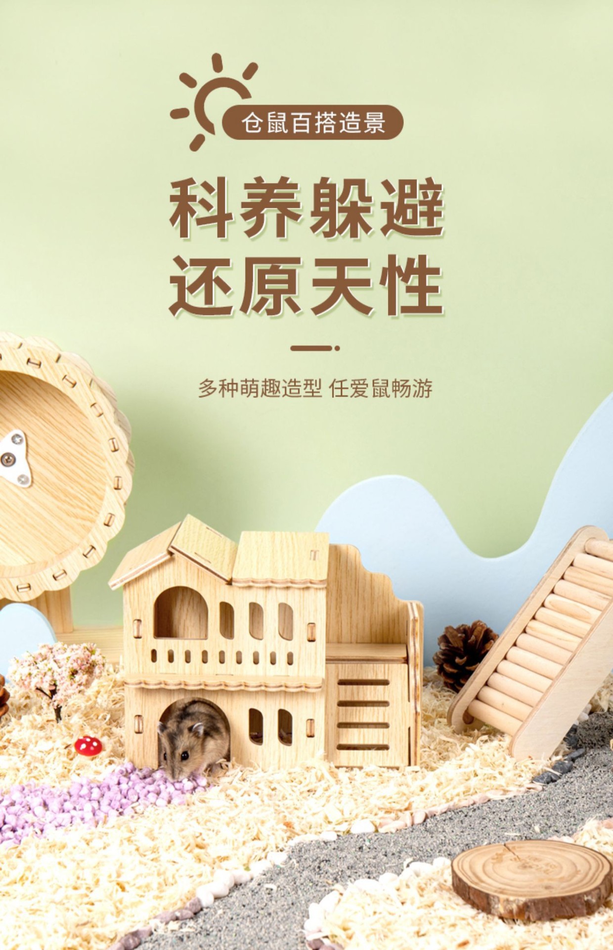 햄스터 둥지 단단한 나무 피난처 골든 베어 조경 용품 작은 집 장난감 사다리 케이지 목조 주택 플랫폼