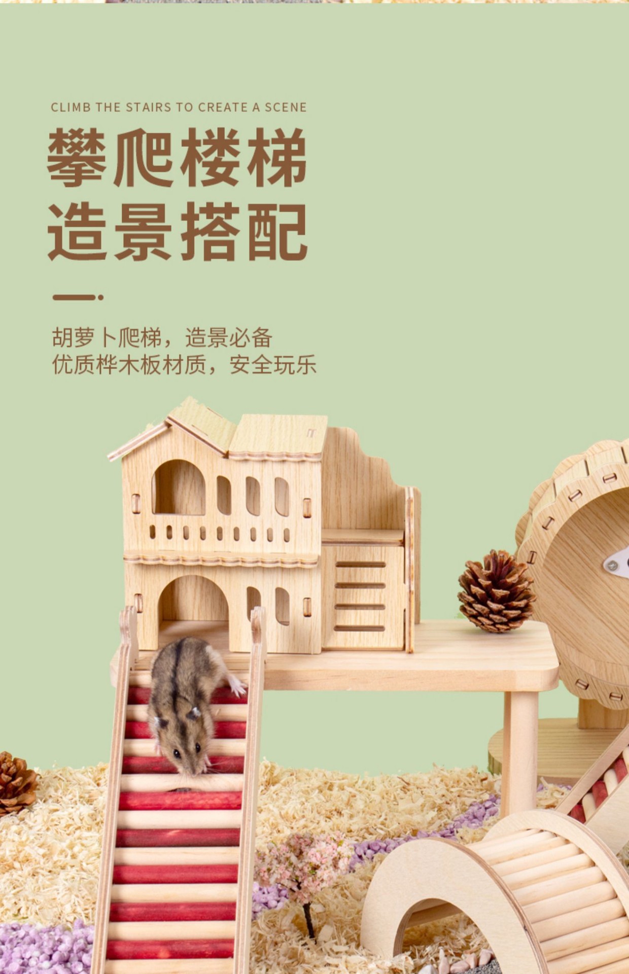 햄스터 둥지 단단한 나무 피난처 골든 베어 조경 용품 작은 집 장난감 사다리 케이지 목조 주택 플랫폼스토어 가기