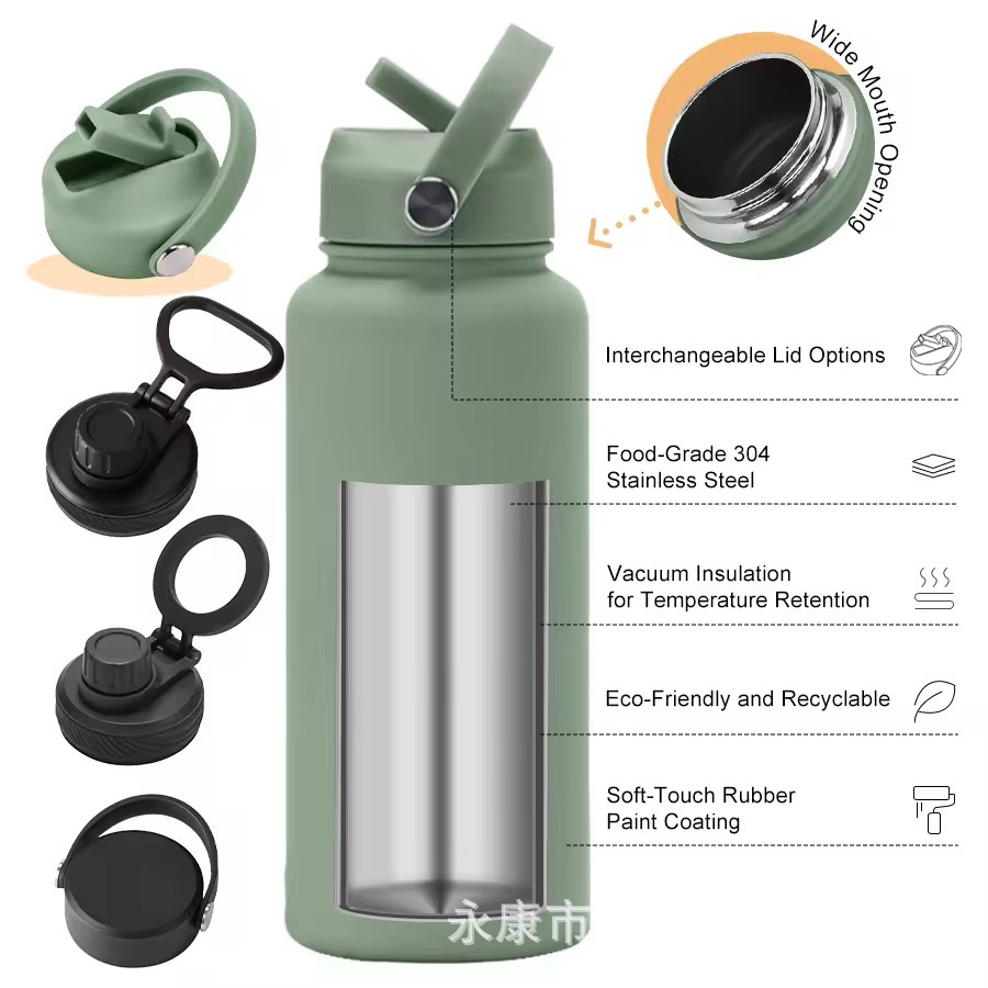 국경 간 304 스테인레스 스틸 단열 및 냉각 공간 주전자 야외 휴대용 대용량 스포츠 주전자 사무실 자동차 워터 컵스토어 가기