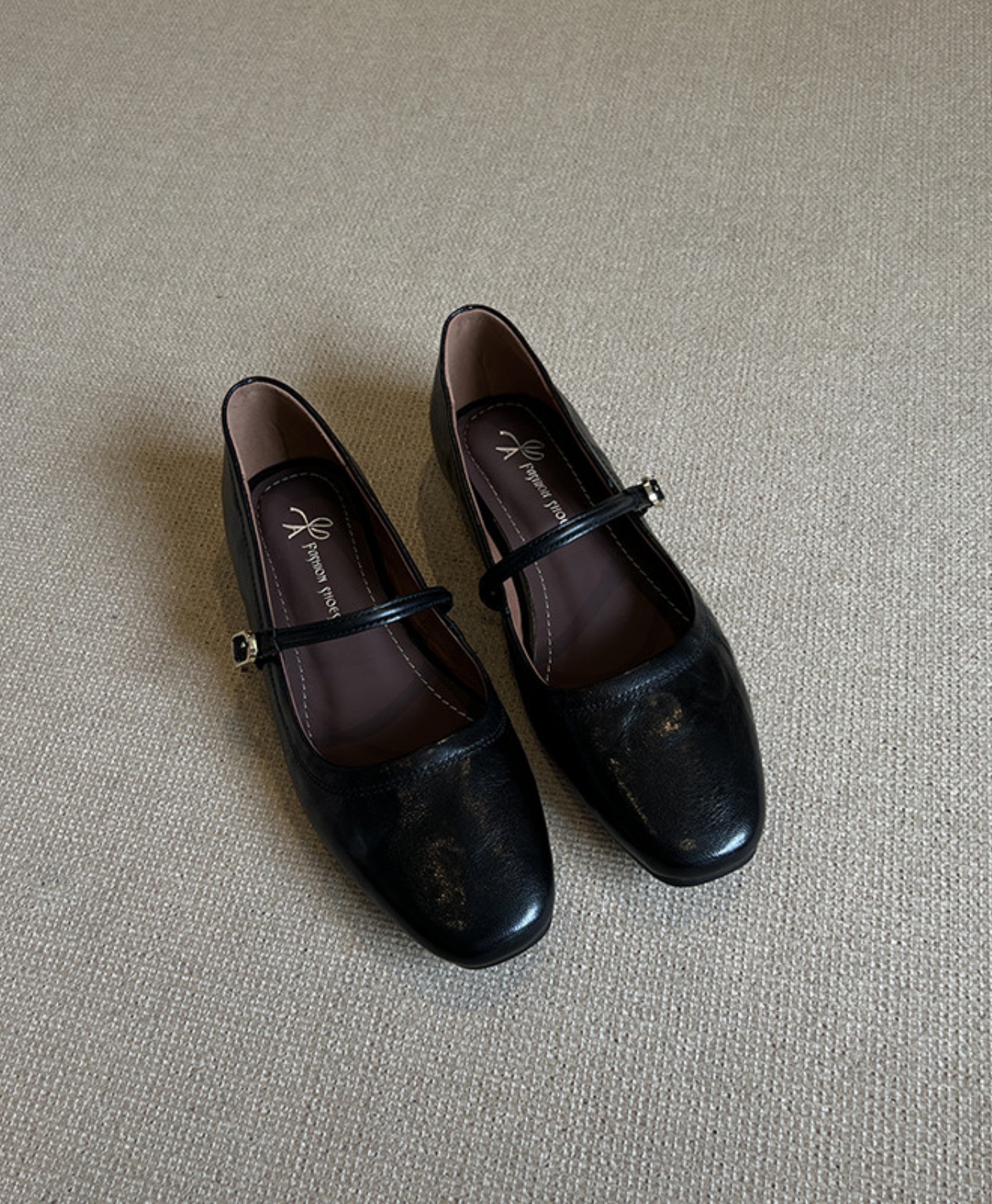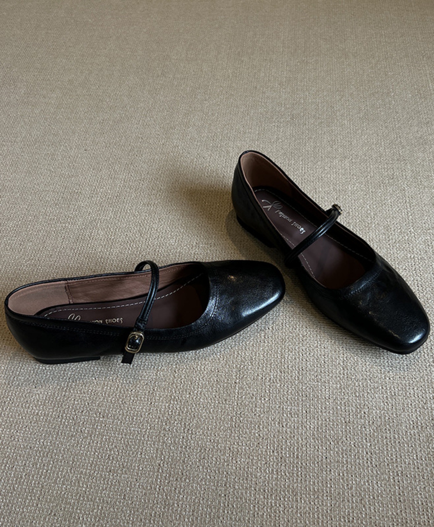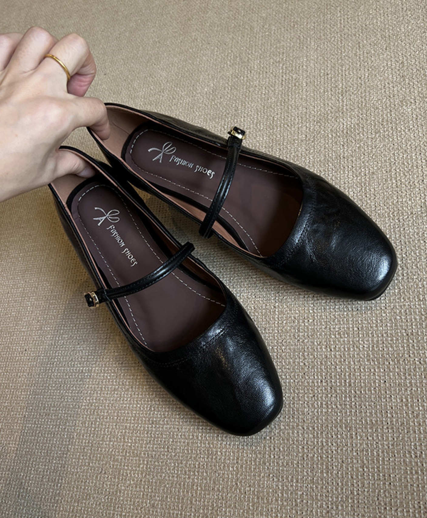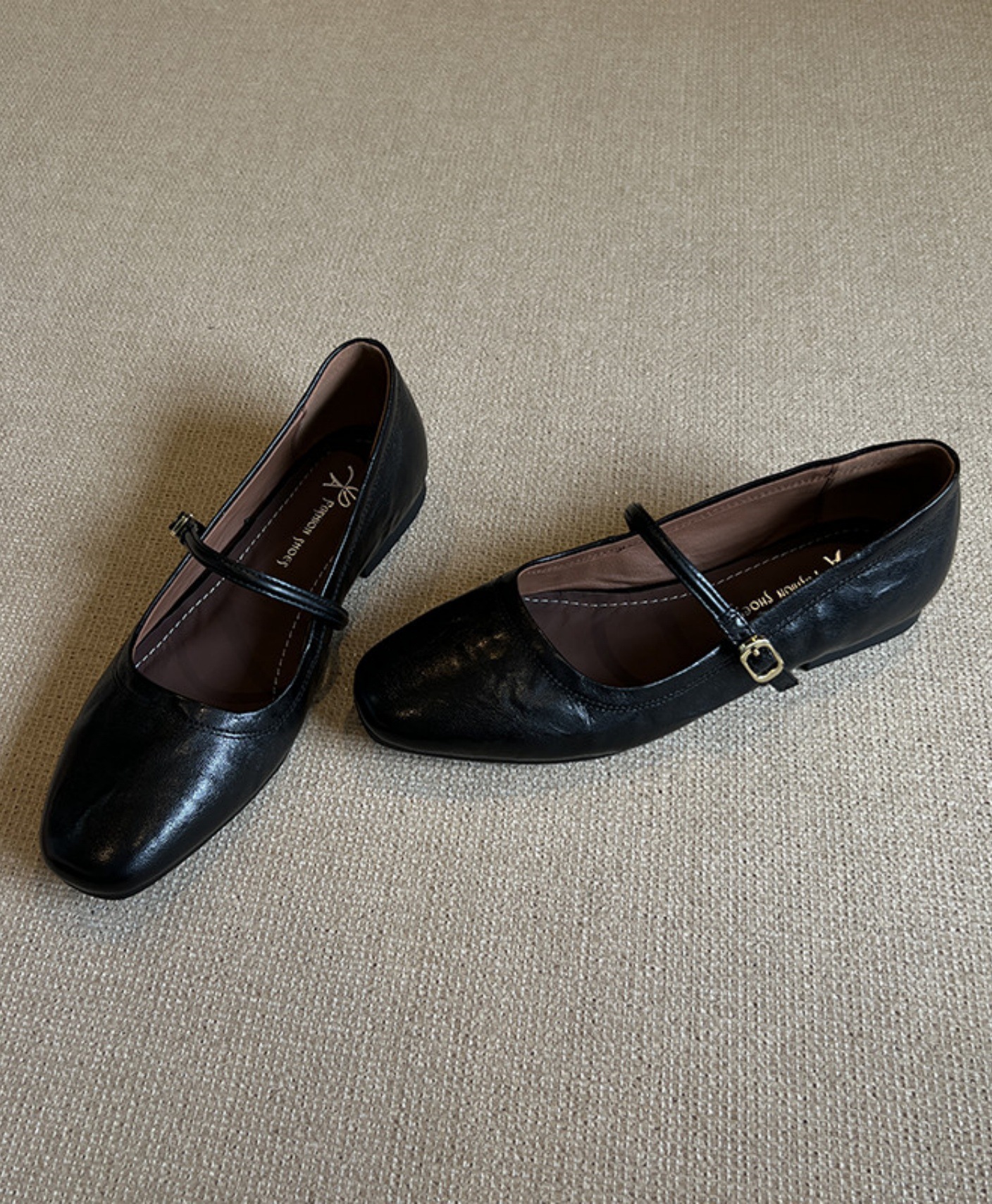 양가죽 버전 ~ 천연가죽 프렌치 레트로 원라인 버클 메리제인 슈즈 여성 플랫 슈즈 펌프스 작은 가죽신
