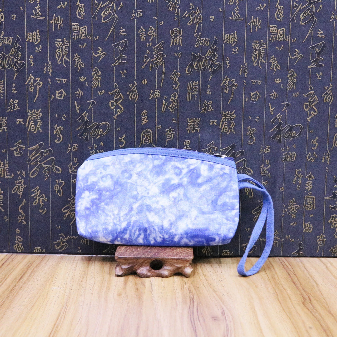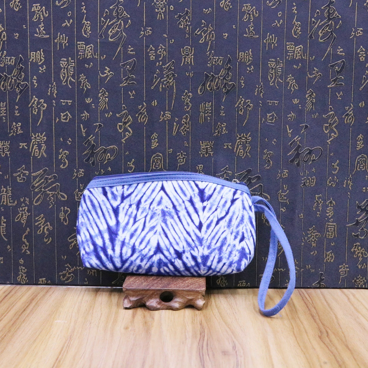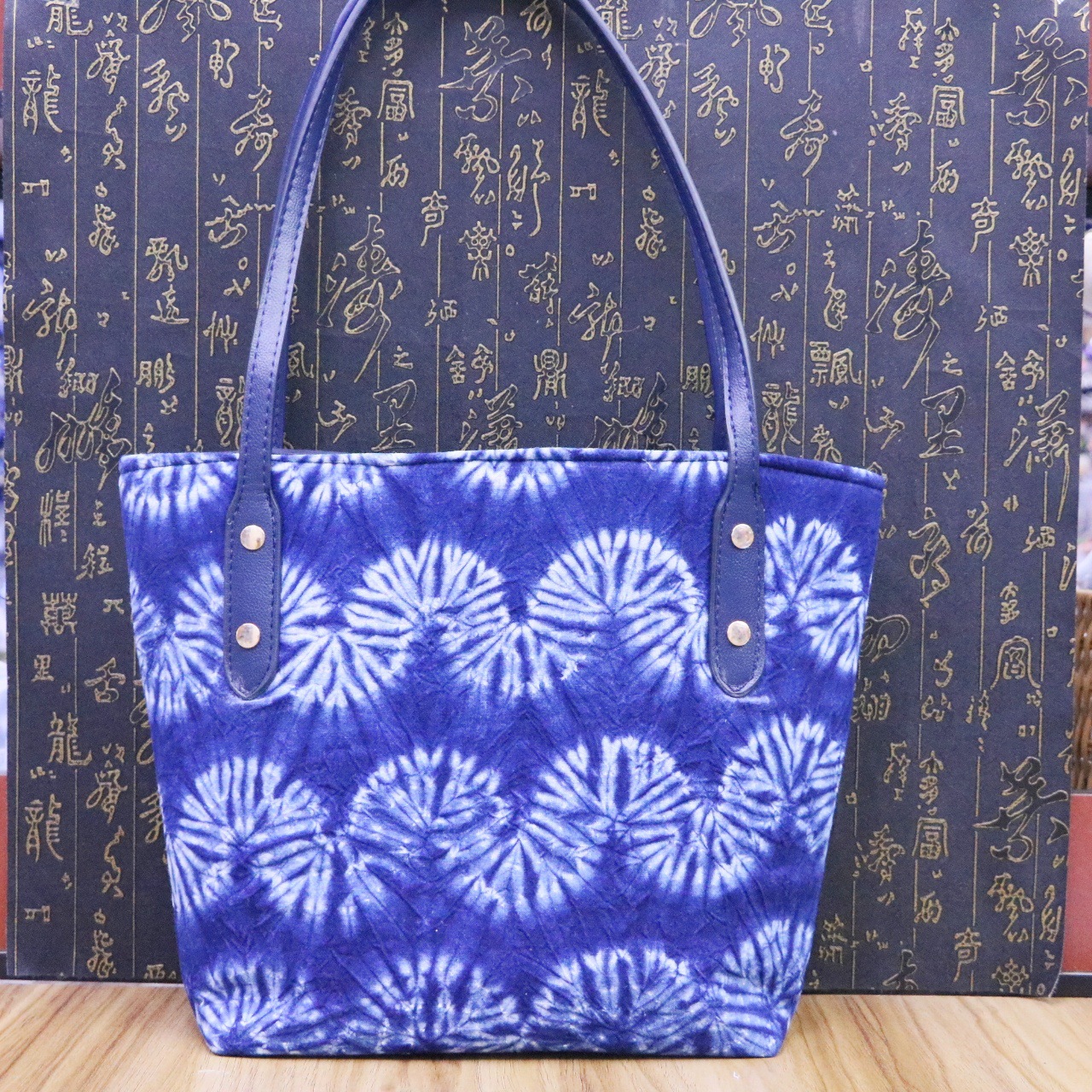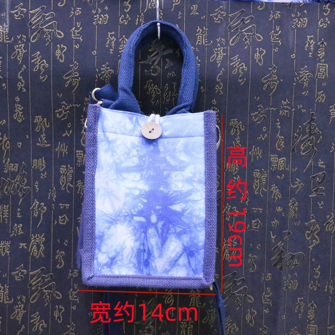 문화 및 창의적인 관광 기념품 대나무 타이 염색 청색 및 흰색 식물 염색 여성용 크로스 바디 백 핸드백