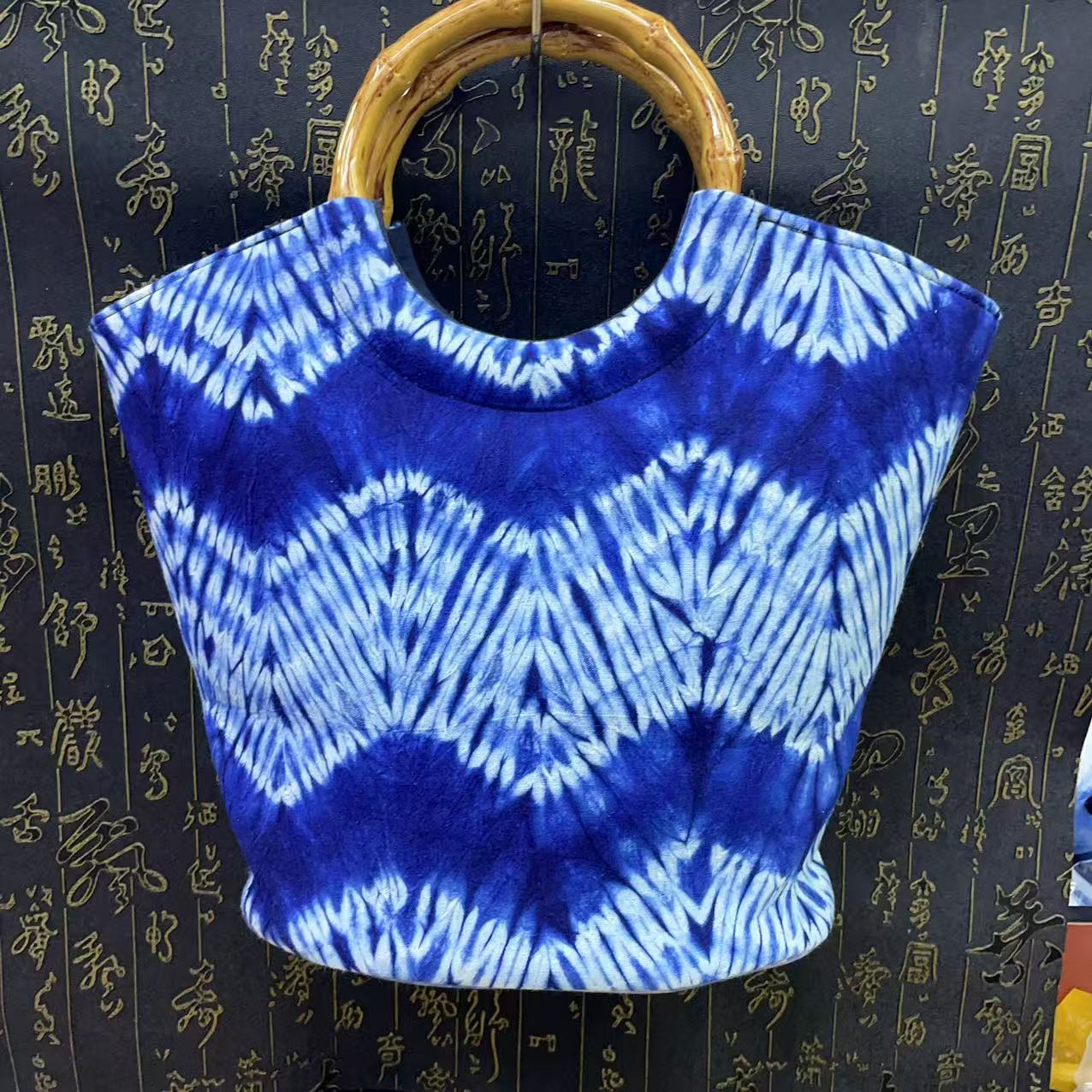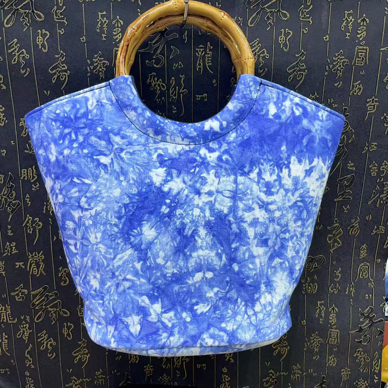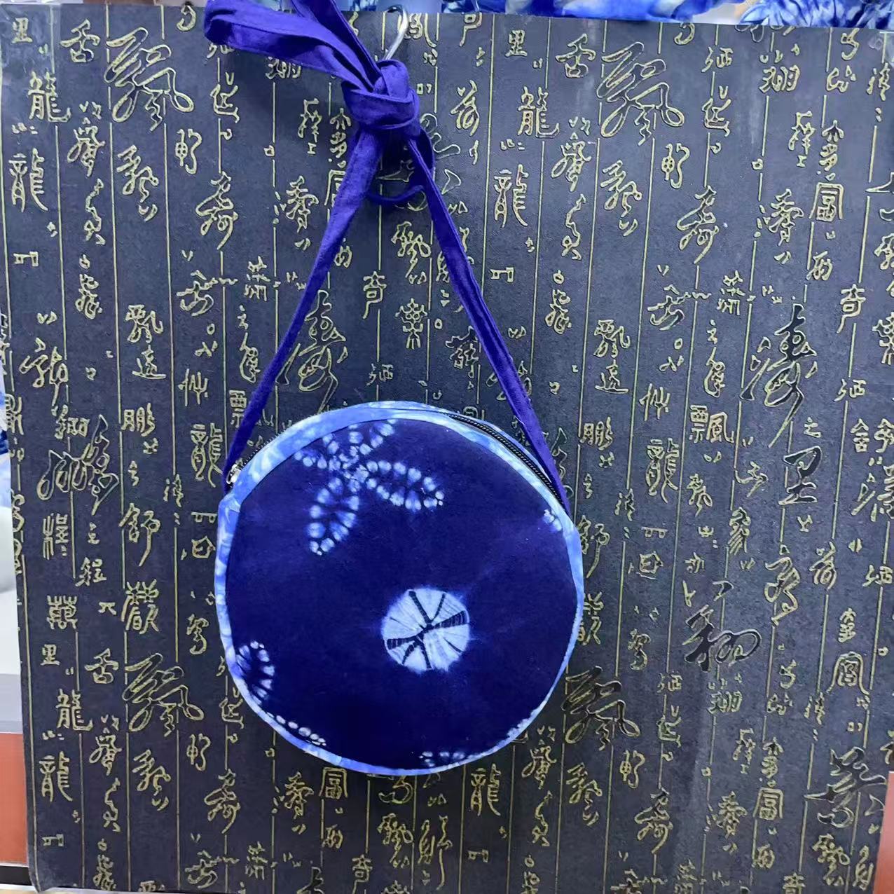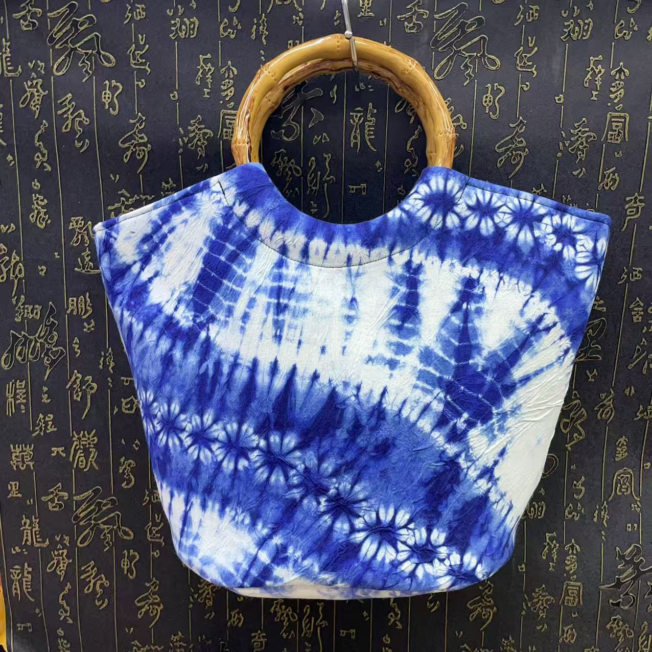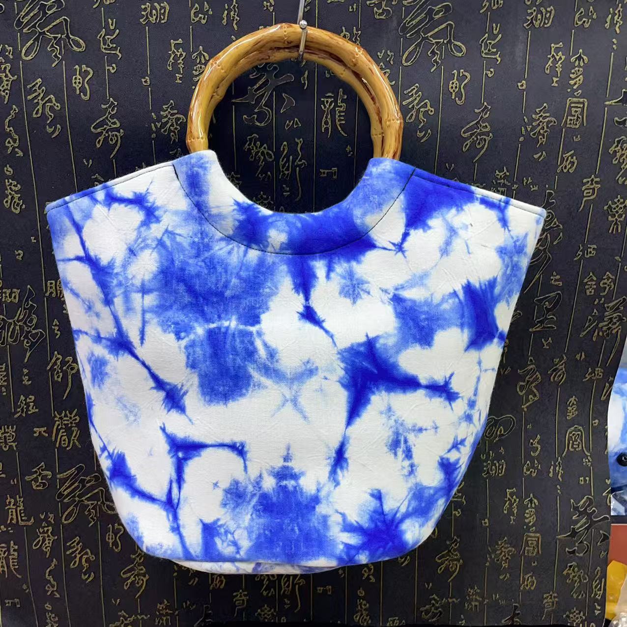문화 및 창의적인 관광 기념품 대나무 타이 염색 청색 및 흰색 식물 염색 여성용 크로스 바디 백 핸드백스토어 가기