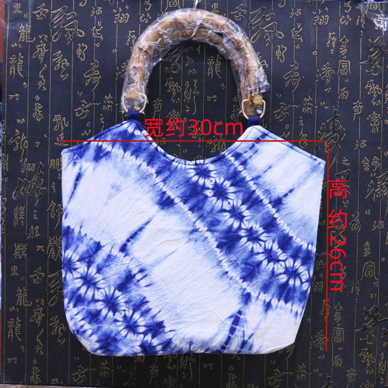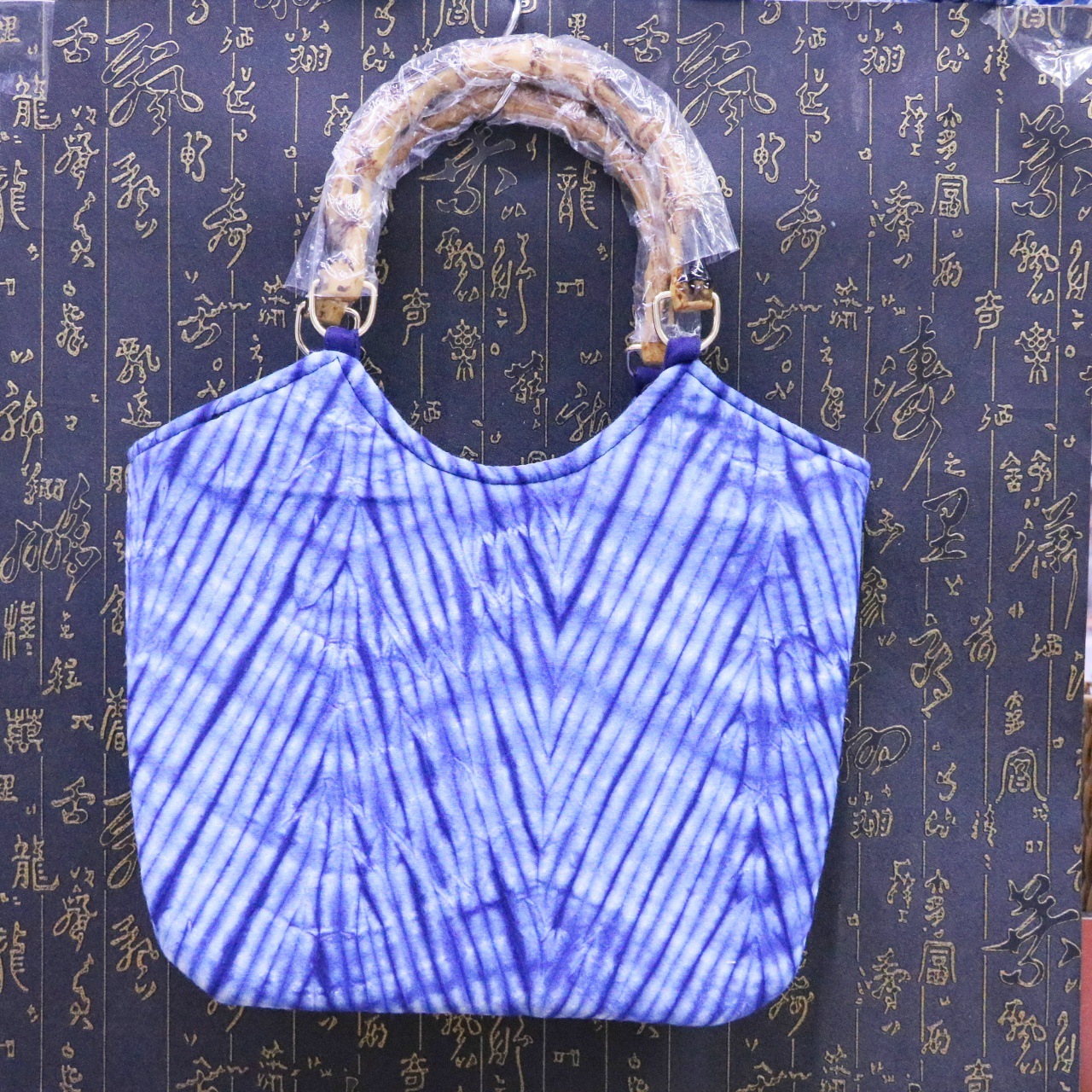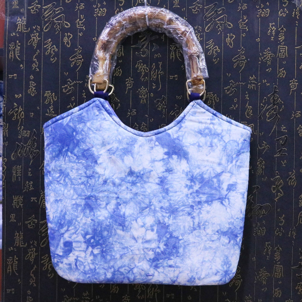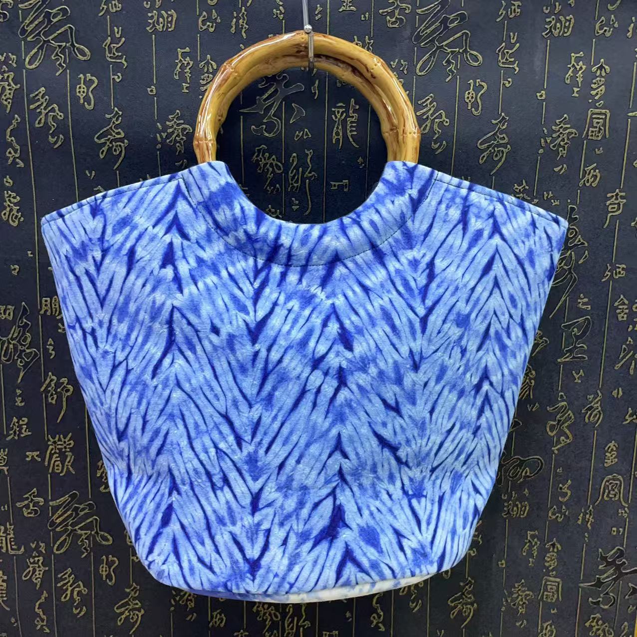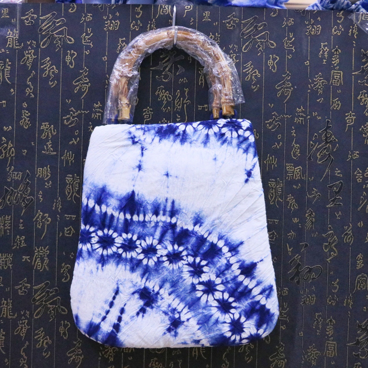 문화 및 창의적인 관광 기념품 대나무 타이 염색 청색 및 흰색 식물 염색 여성용 크로스 바디 백 핸드백스토어 가기