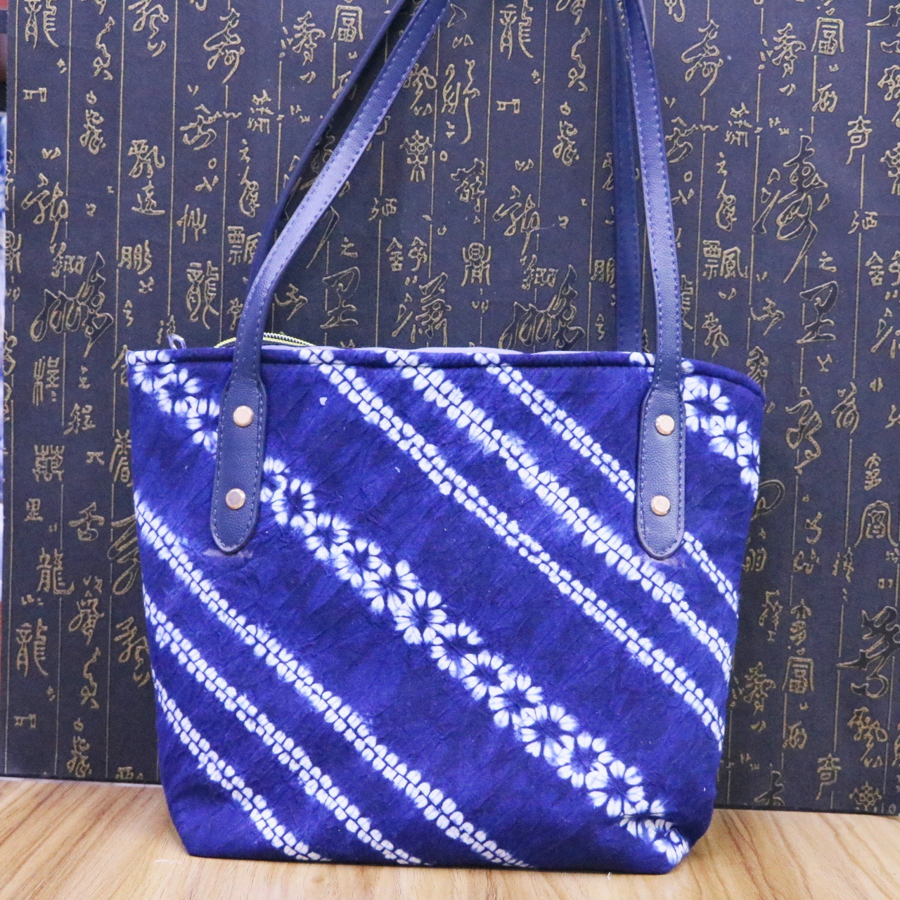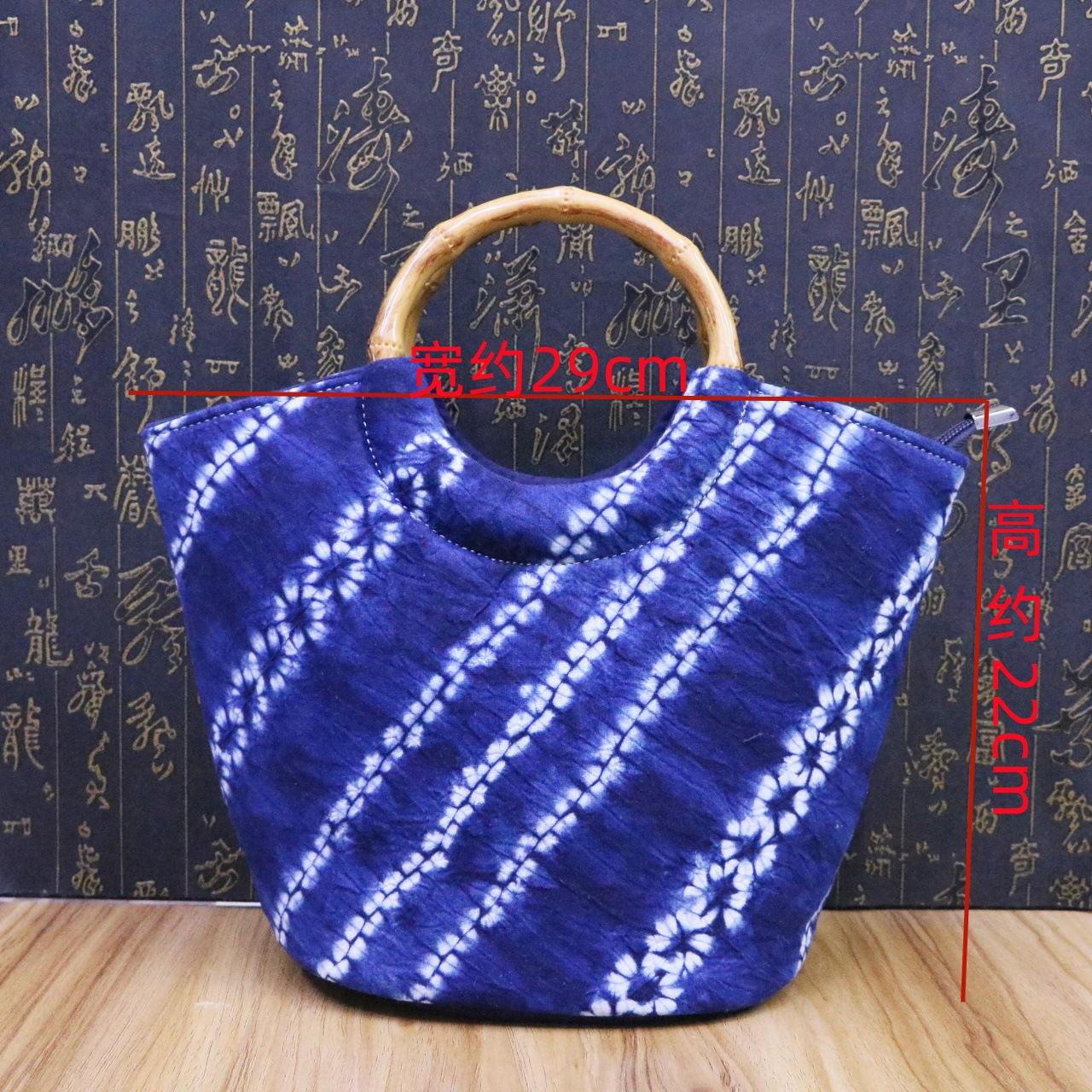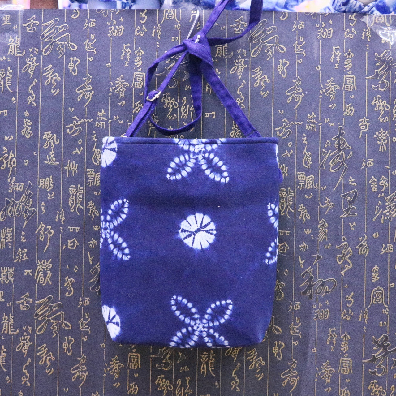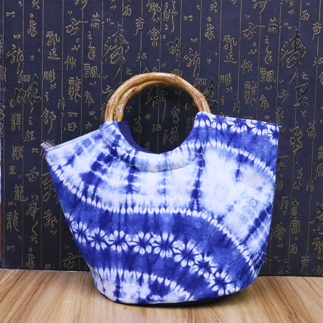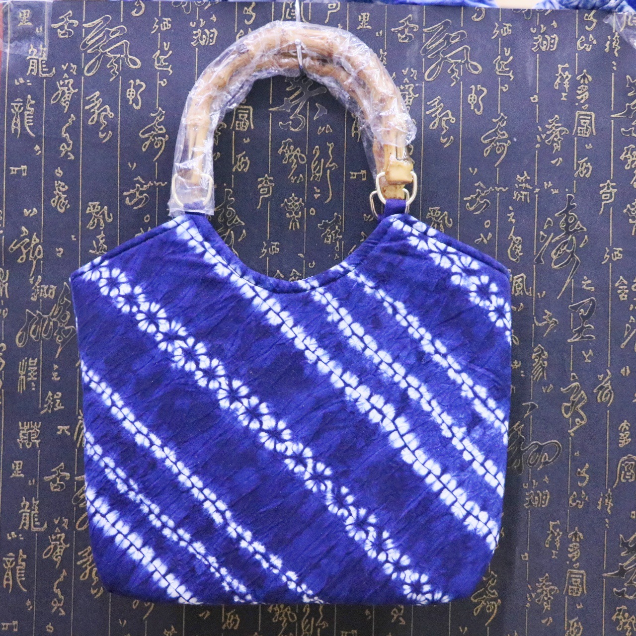 문화 및 창의적인 관광 기념품 대나무 타이 염색 청색 및 흰색 식물 염색 여성용 크로스 바디 백 핸드백스토어 가기