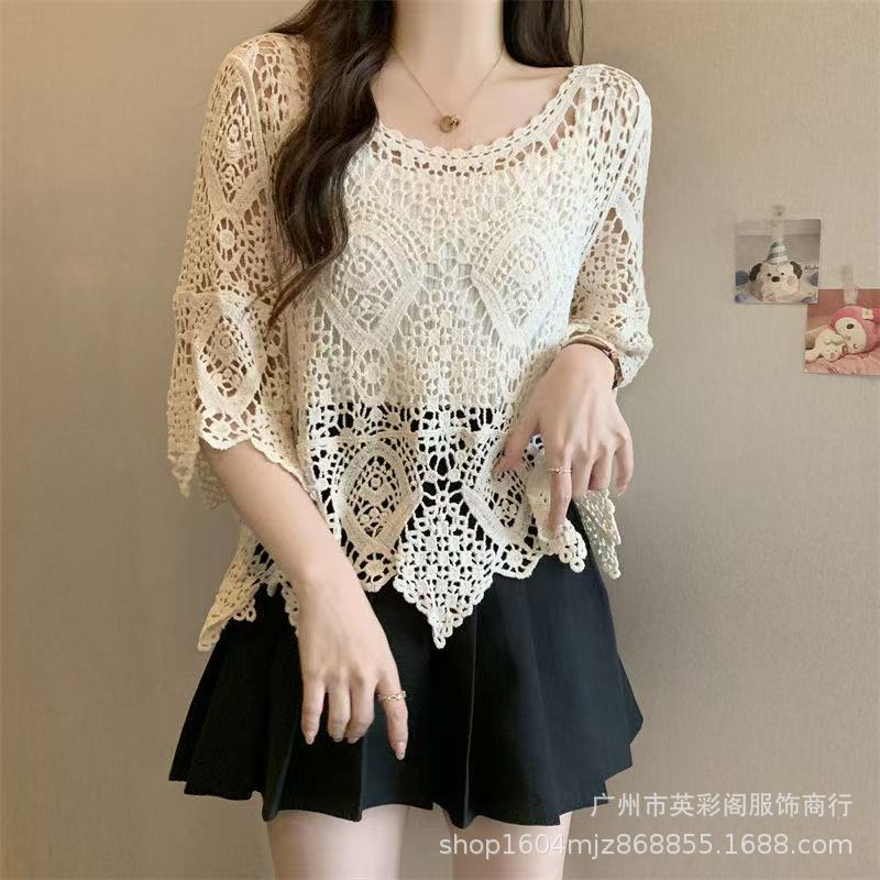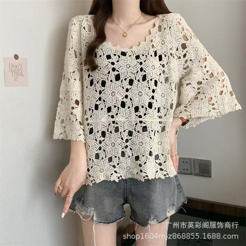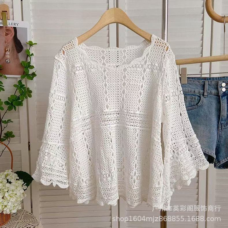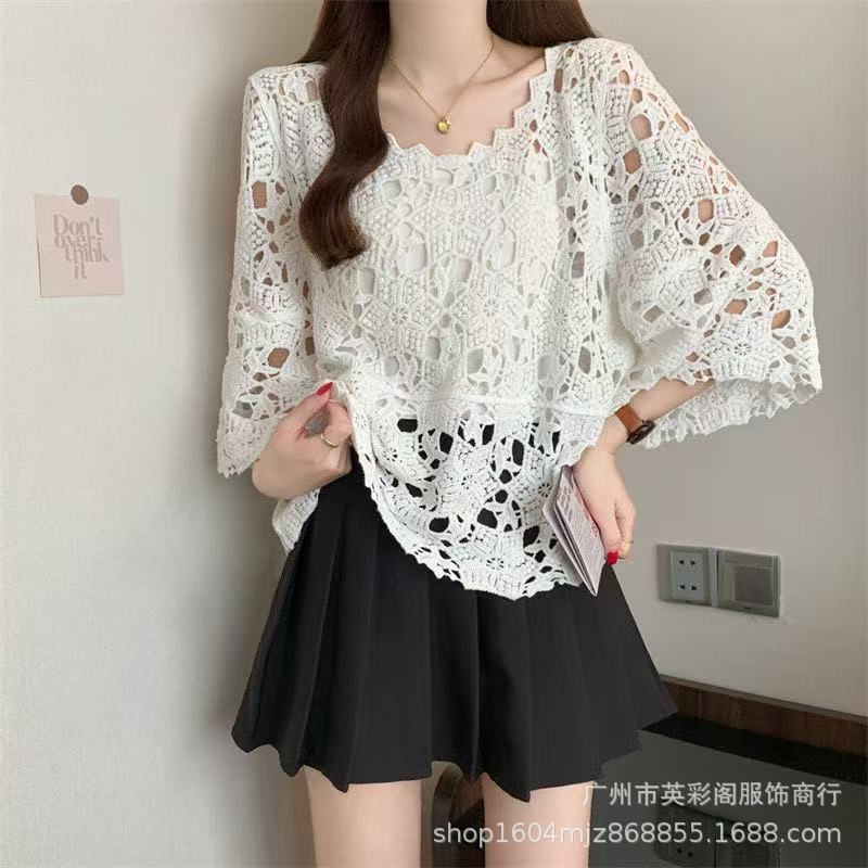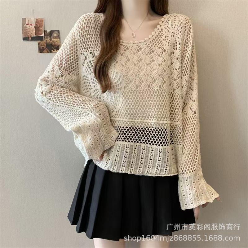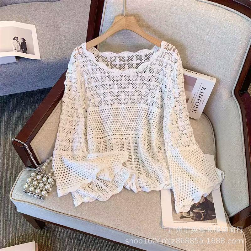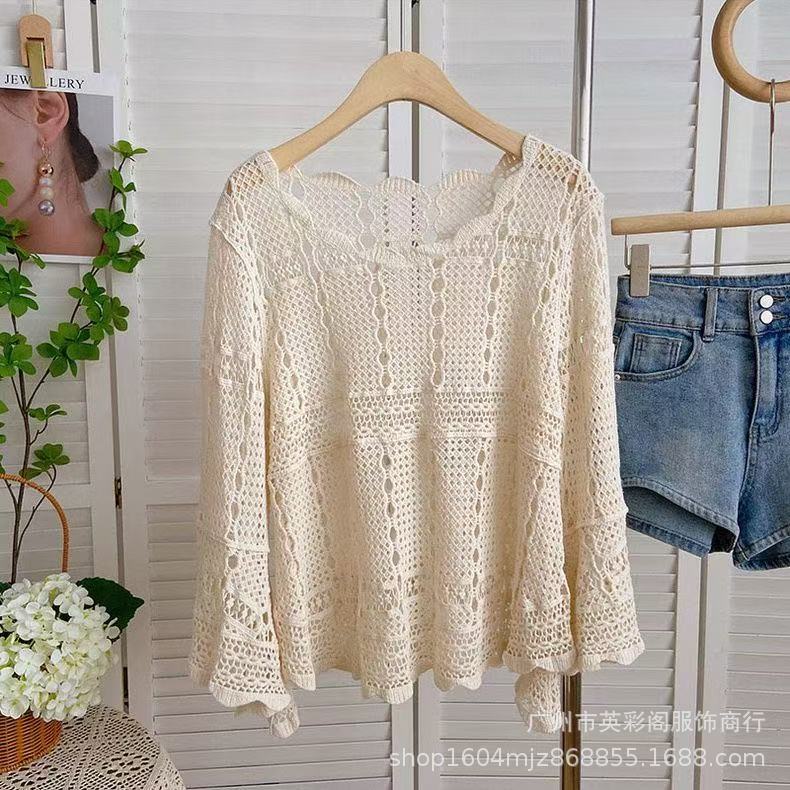 한국식 레이지 스타일 디자인 레이스 크로셰 아우터, 여성용 고급 니트 스웨터, 여성용 루즈 슬리밍 블라우스 탑스토어 가기