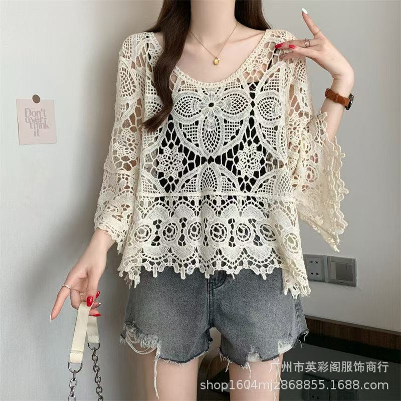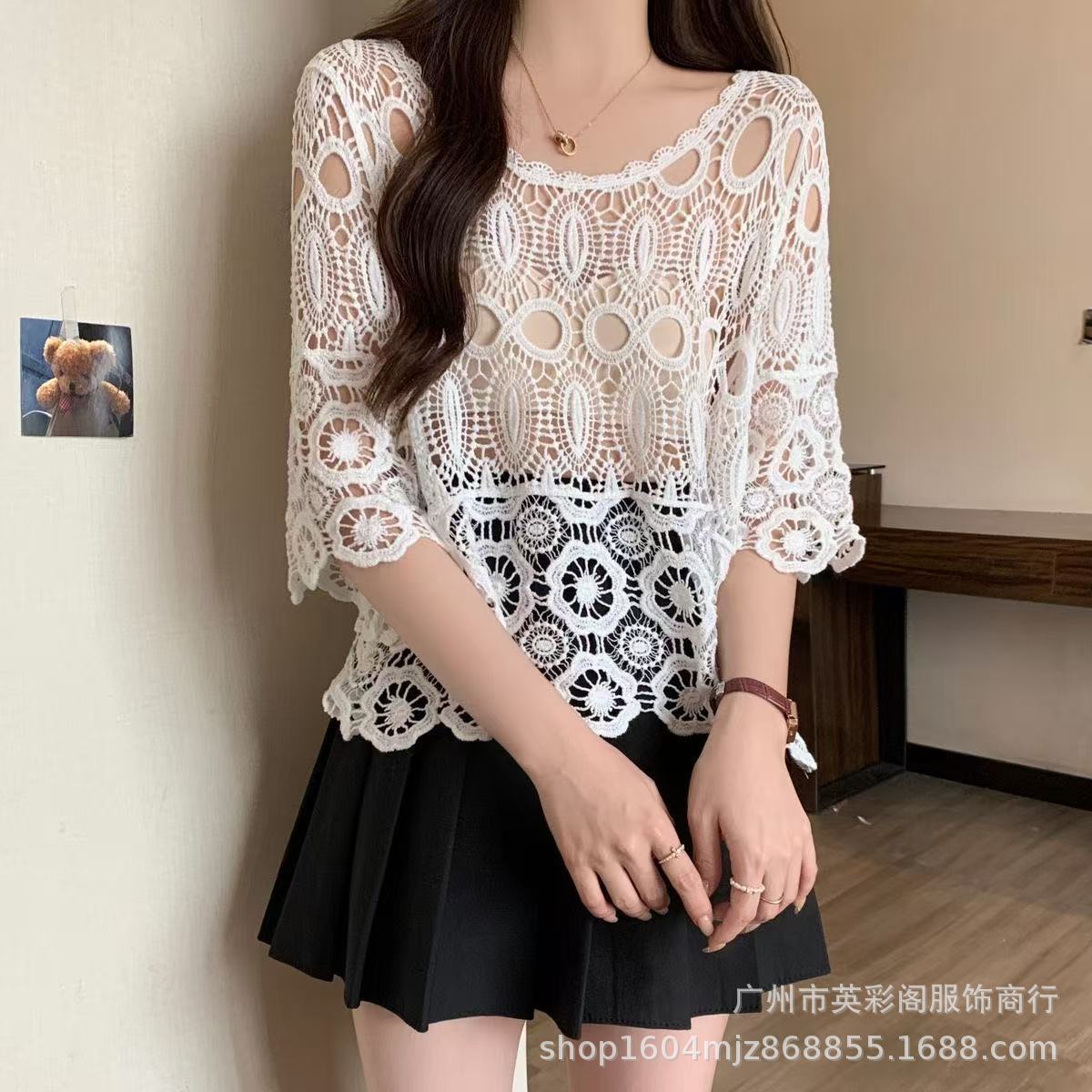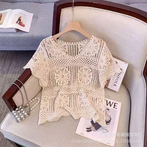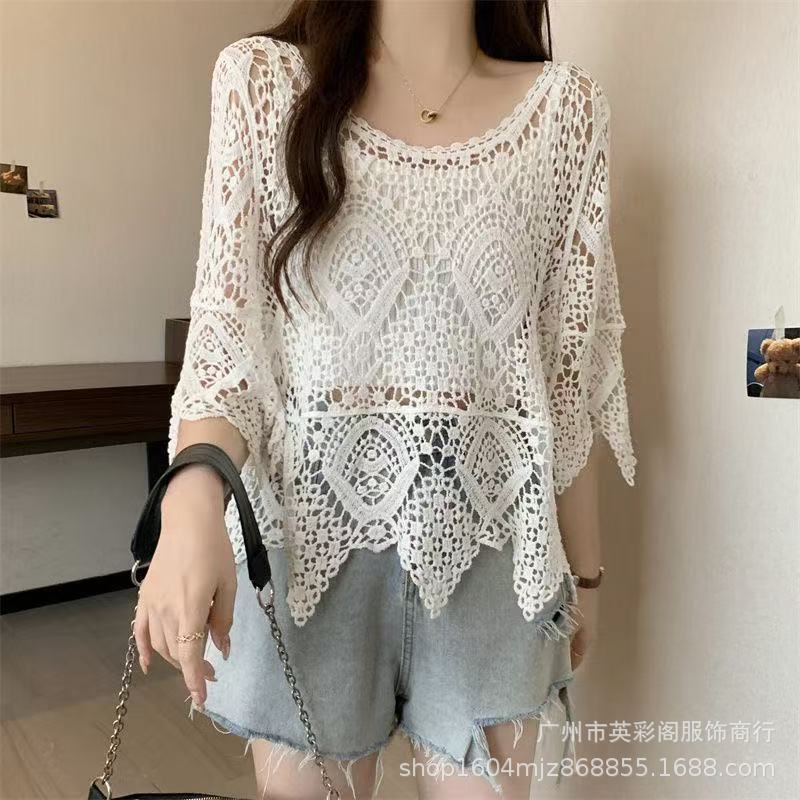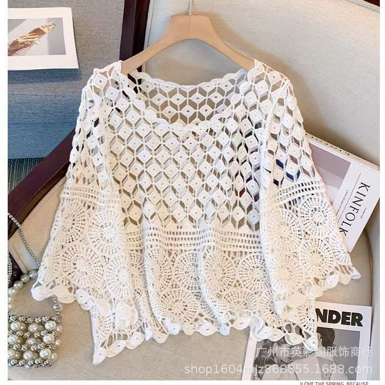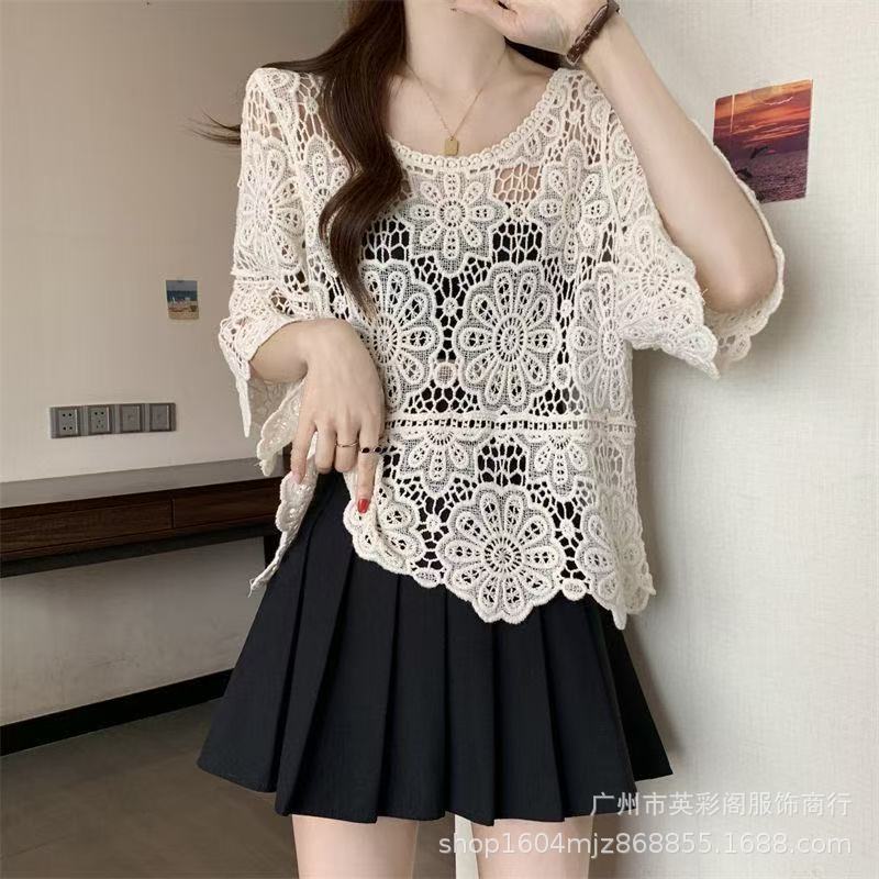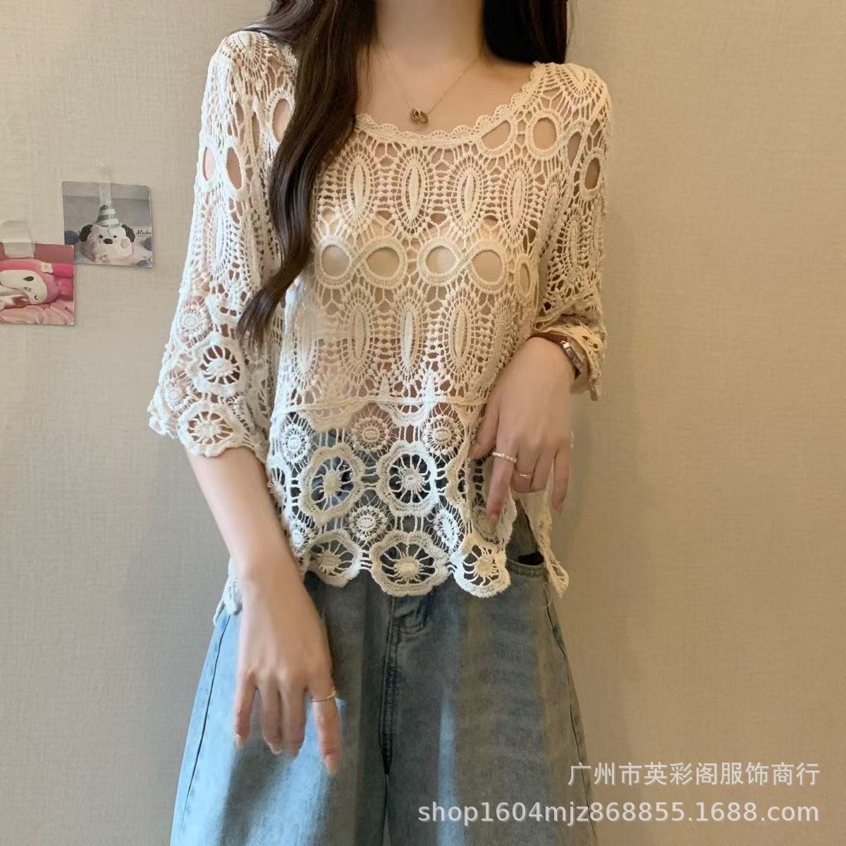 한국식 레이지 스타일 디자인 레이스 크로셰 아우터, 여성용 고급 니트 스웨터, 여성용 루즈 슬리밍 블라우스 탑스토어 가기