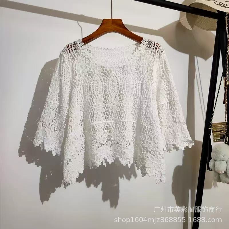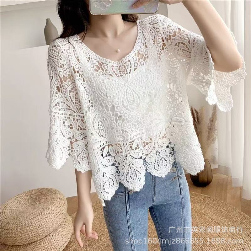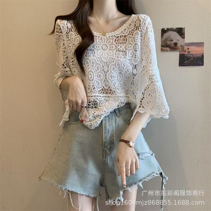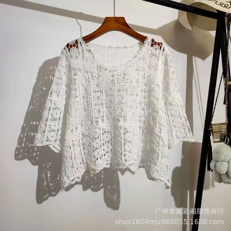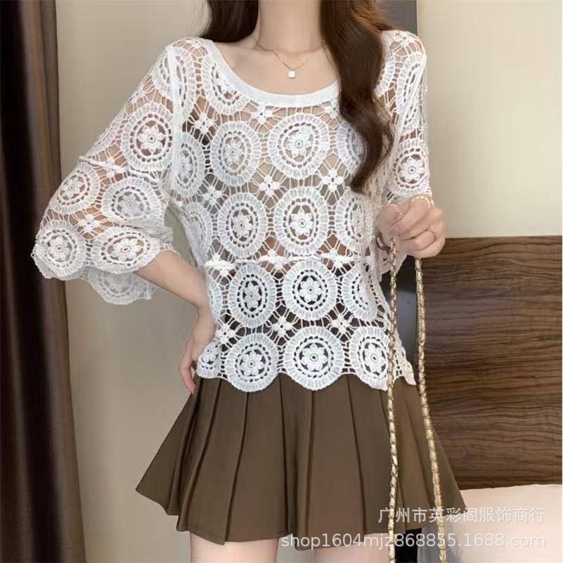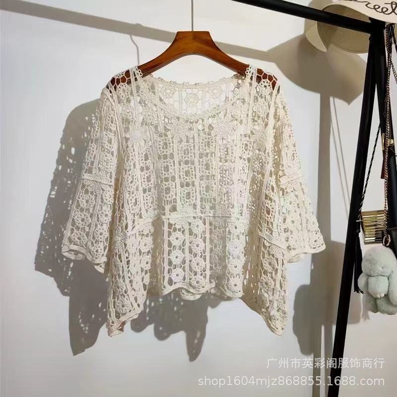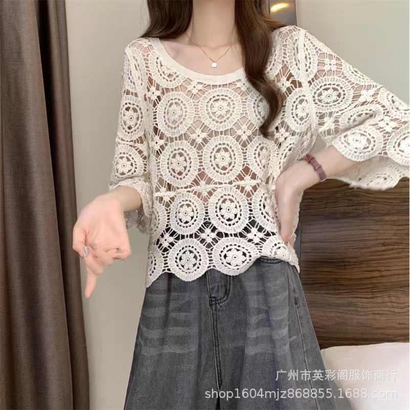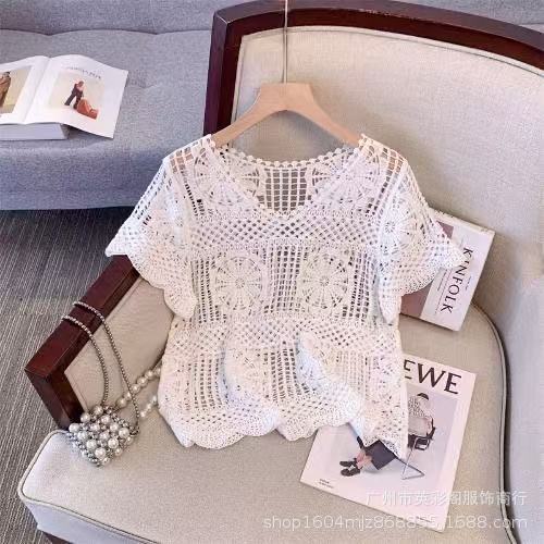 한국식 레이지 스타일 디자인 레이스 크로셰 아우터, 여성용 고급 니트 스웨터, 여성용 루즈 슬리밍 블라우스 탑스토어 가기