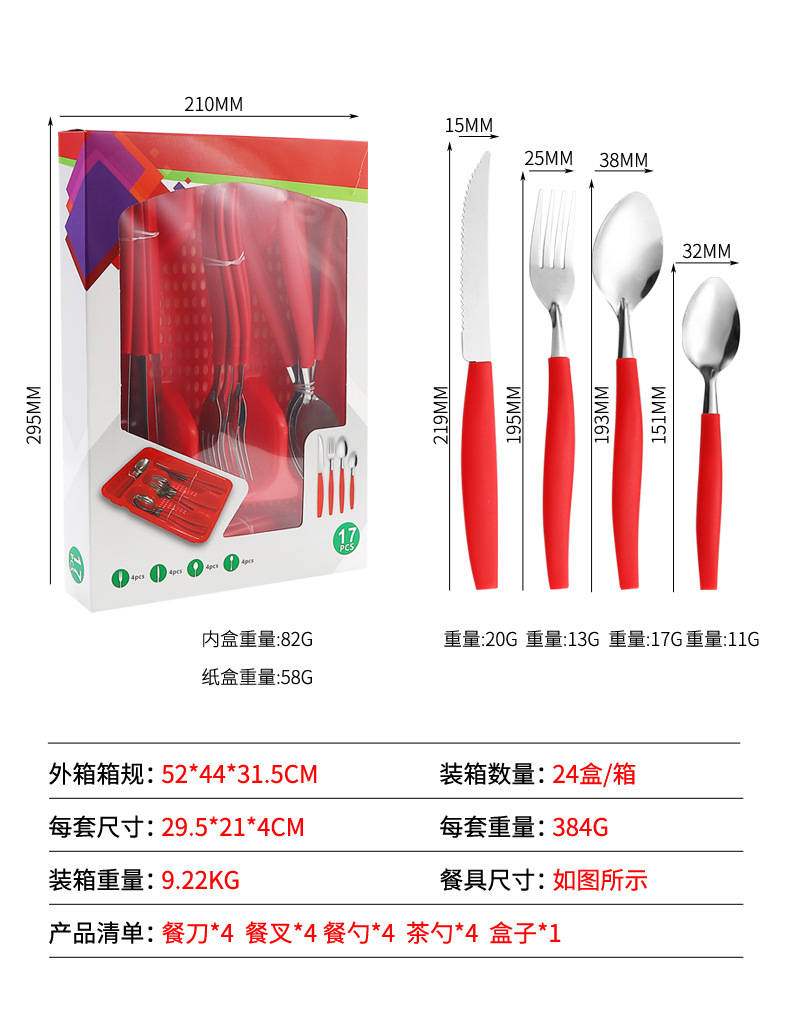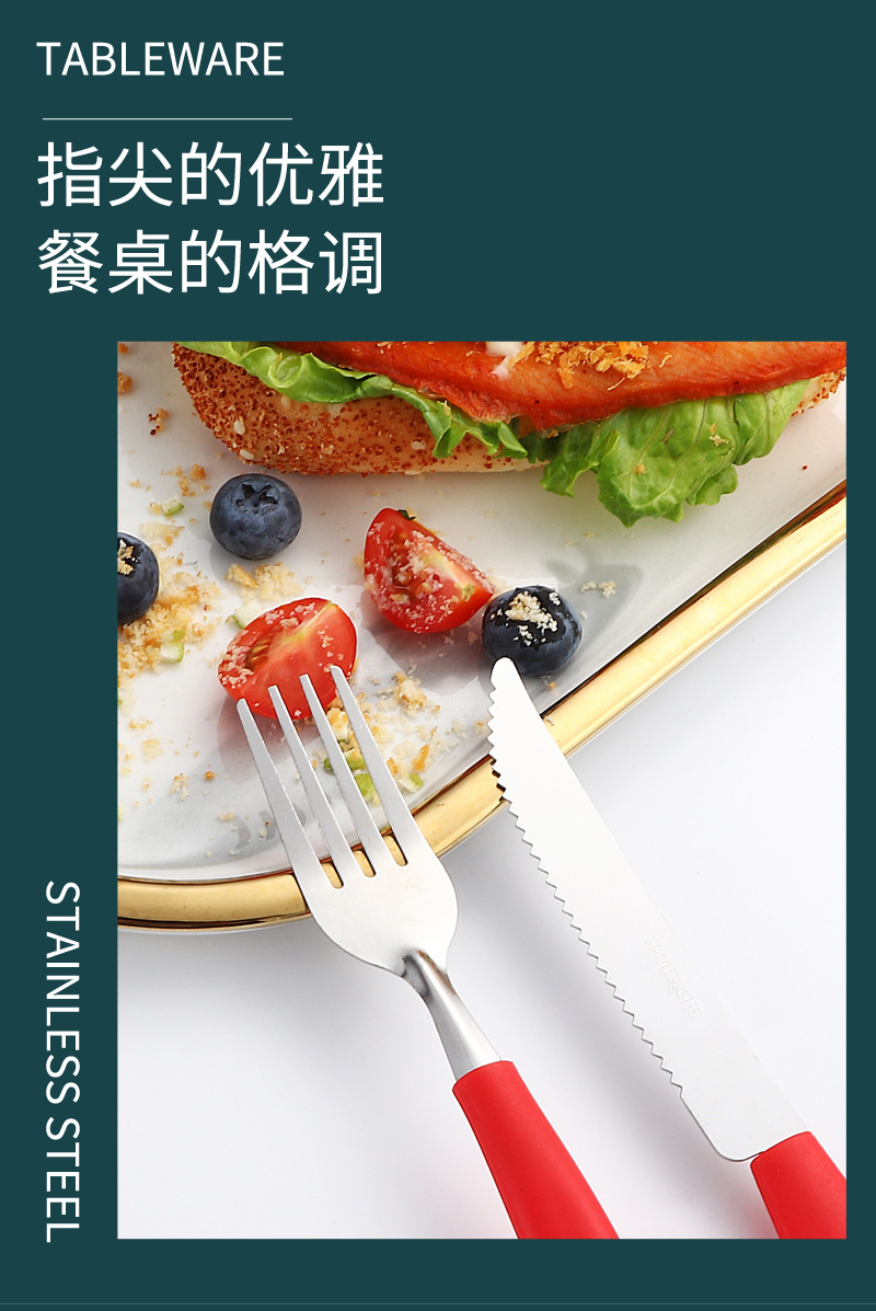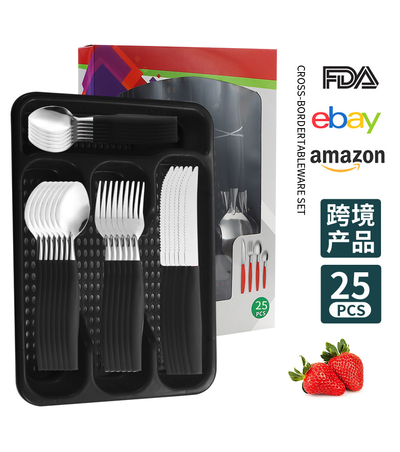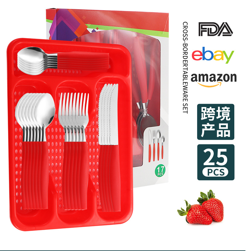 남미로 수출 경사 꼬리 플라스틱 손잡이 25pcs 칼, 포크 및 스푼 세트 대외 무역 플라스틱 손잡이 식기 보관 선물 상자 세트스토어 가기