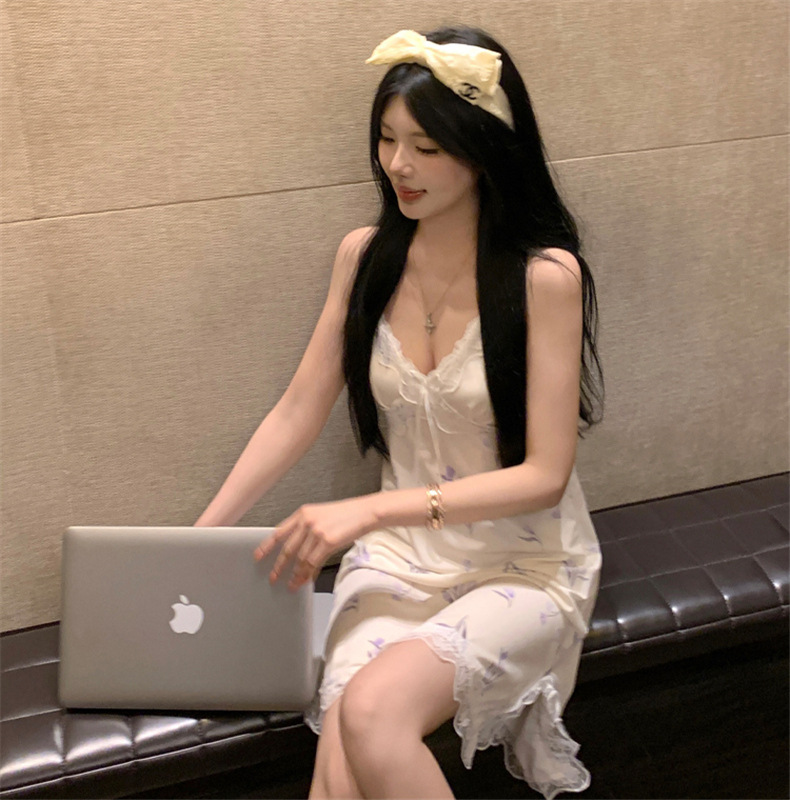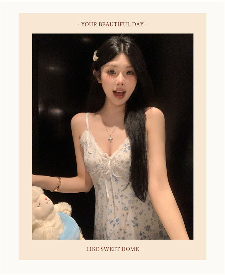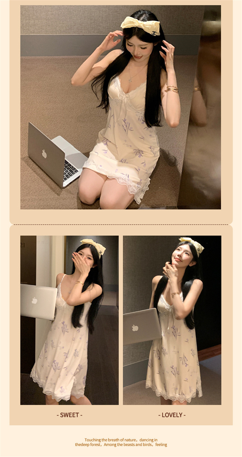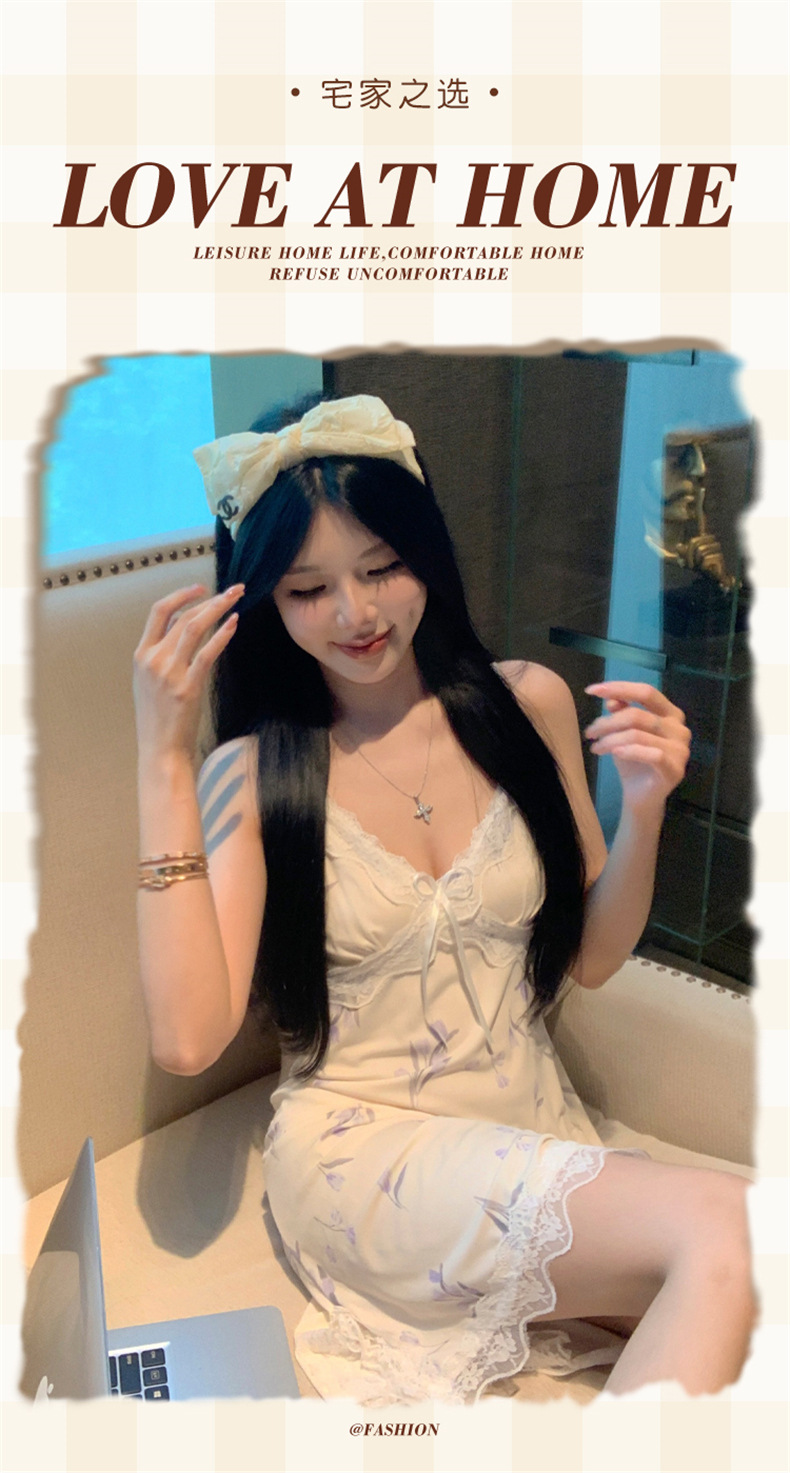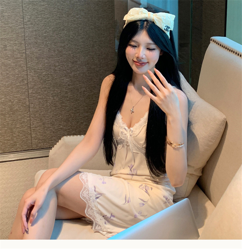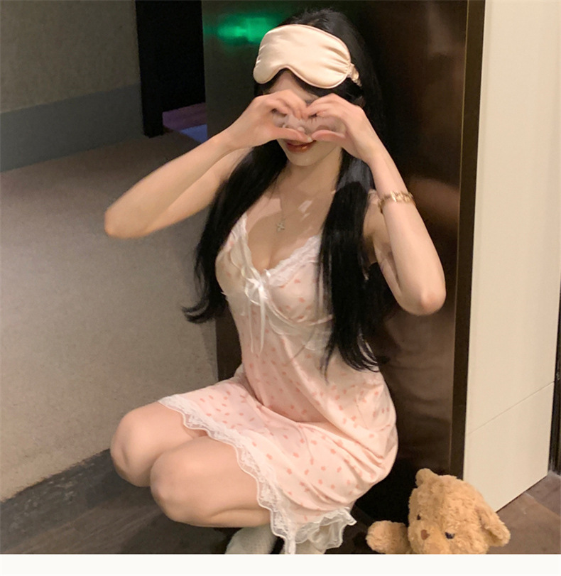 여름 스레드 얼음 실크 섹시한 v 넥 서스펜더 잠옷 여성의 얇은 순수한 정욕 레이스 홈 드레스스토어 가기