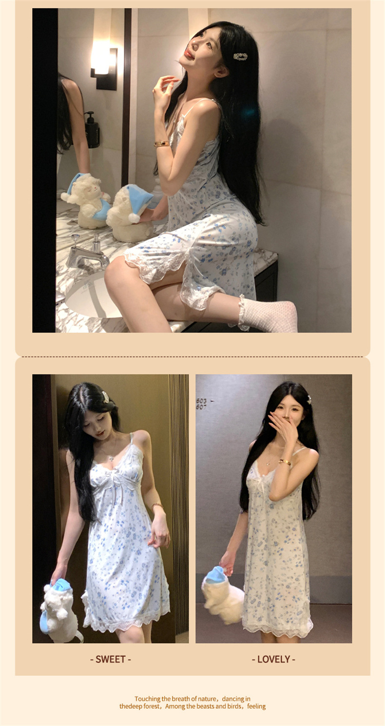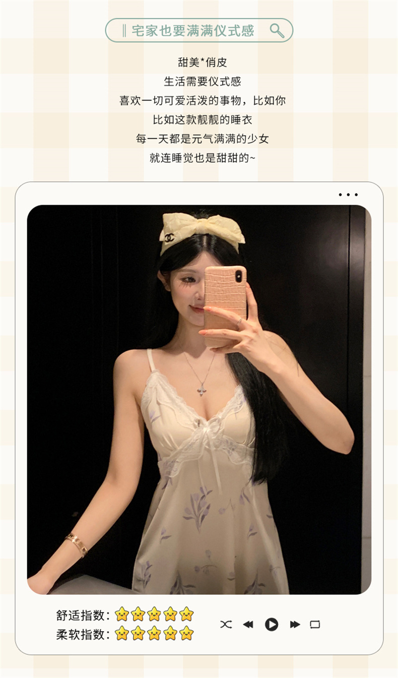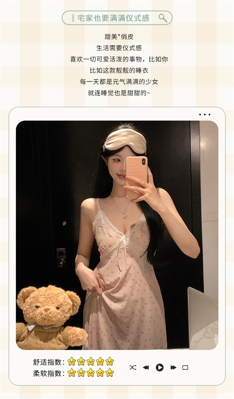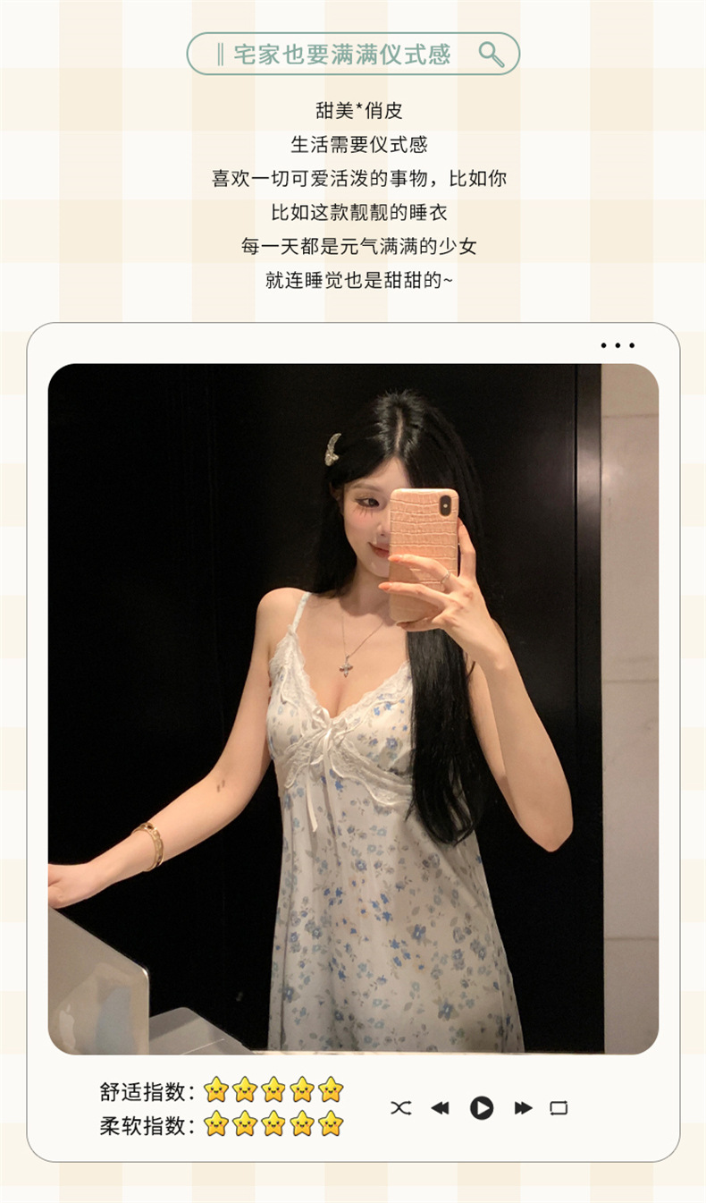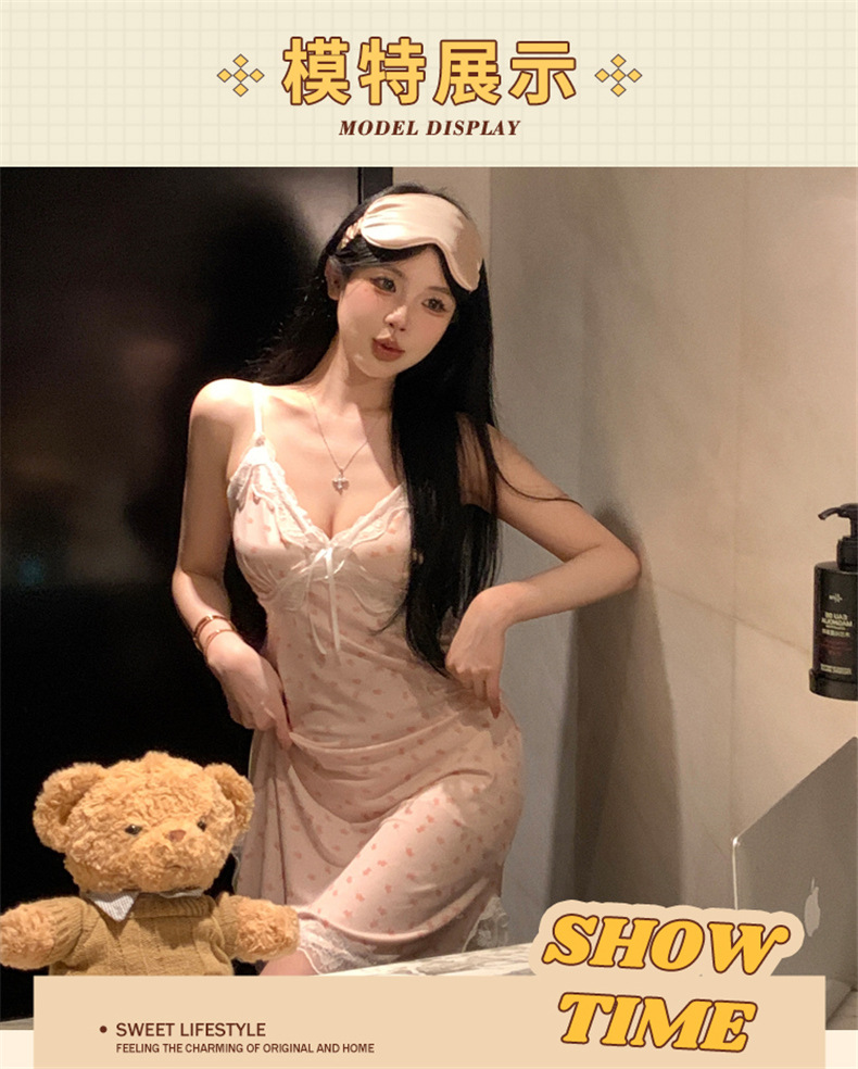 여름 스레드 얼음 실크 섹시한 v 넥 서스펜더 잠옷 여성의 얇은 순수한 정욕 레이스 홈 드레스스토어 가기