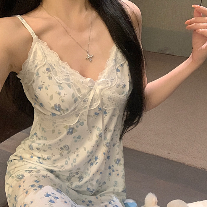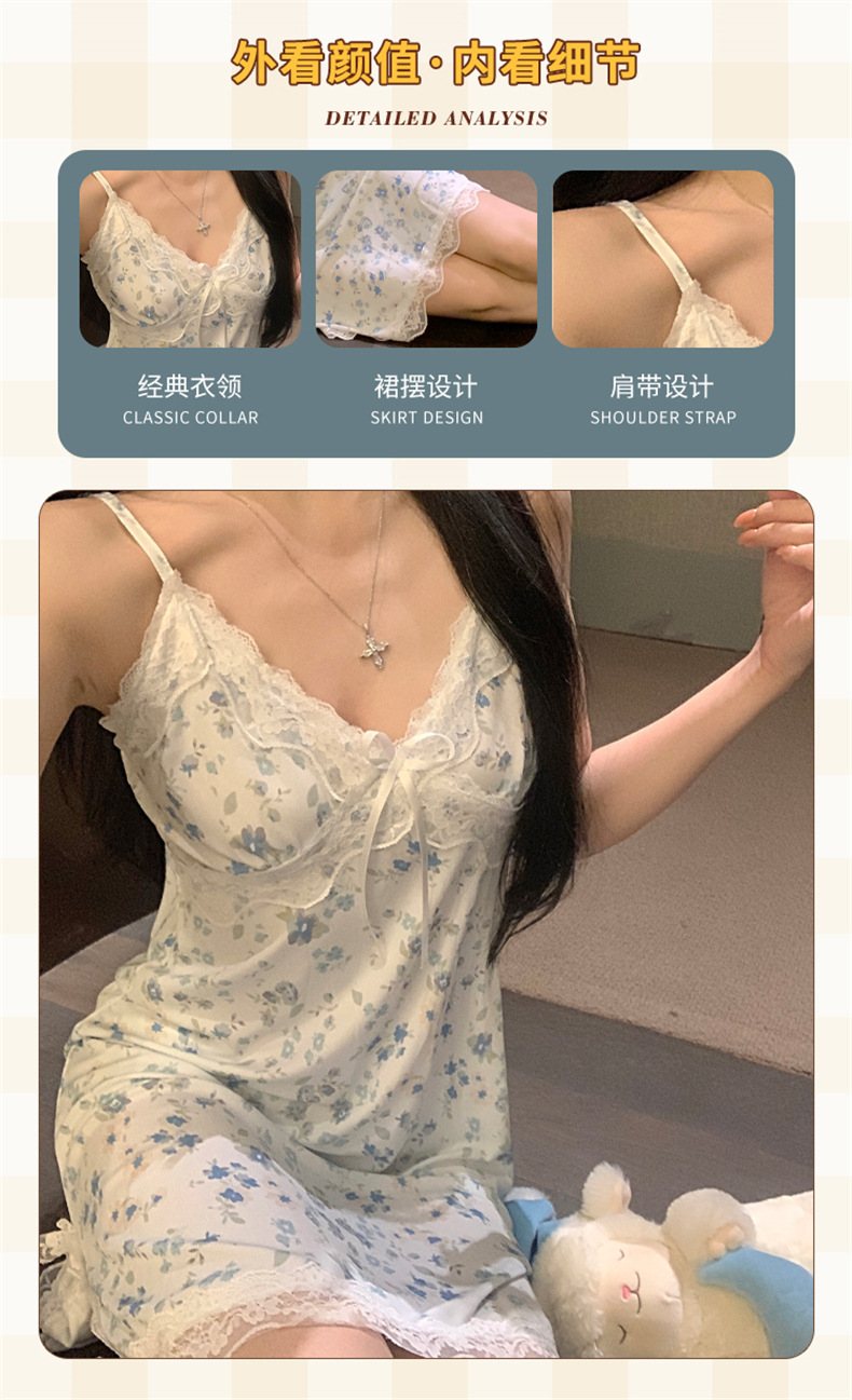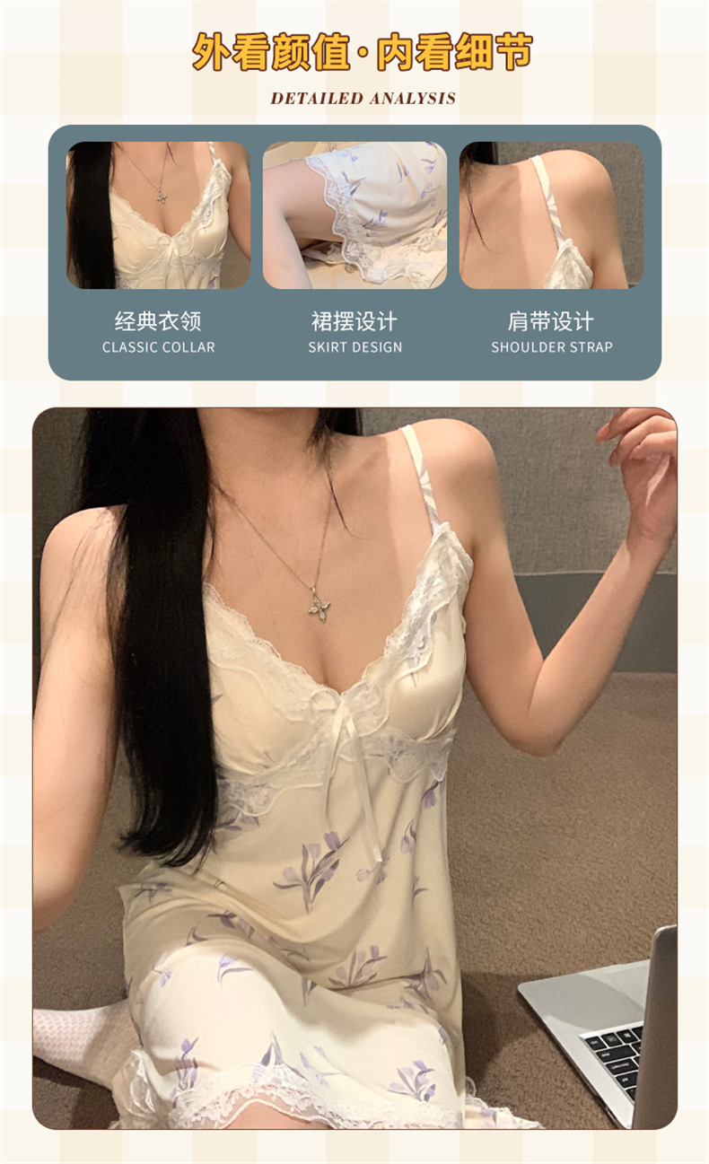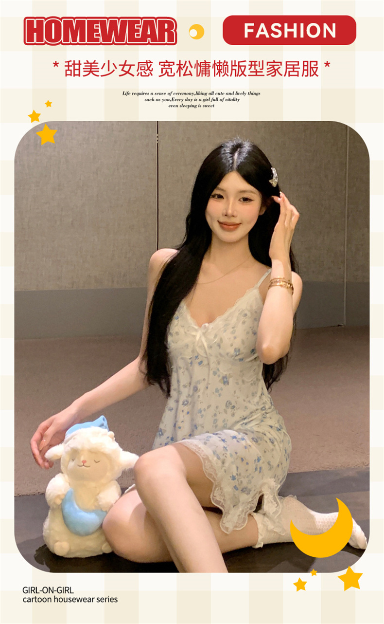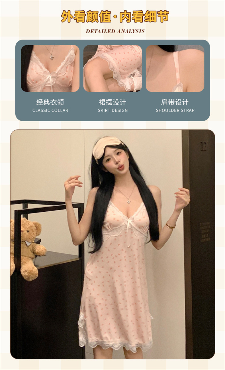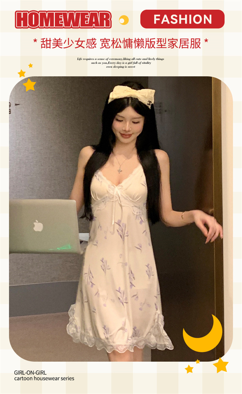 여름 스레드 얼음 실크 섹시한 v 넥 서스펜더 잠옷 여성의 얇은 순수한 정욕 레이스 홈 드레스스토어 가기