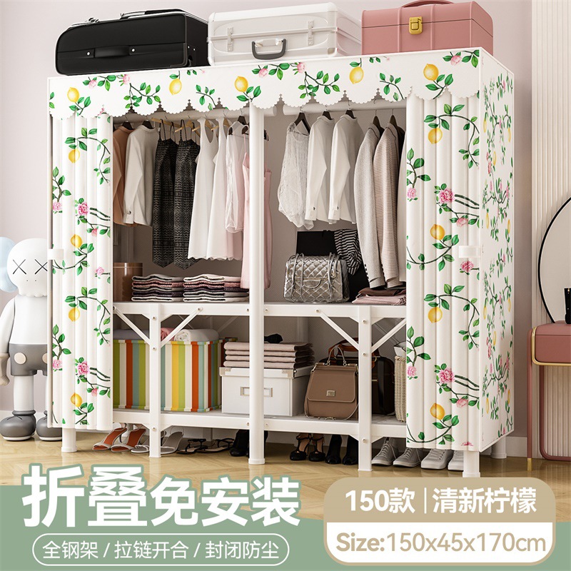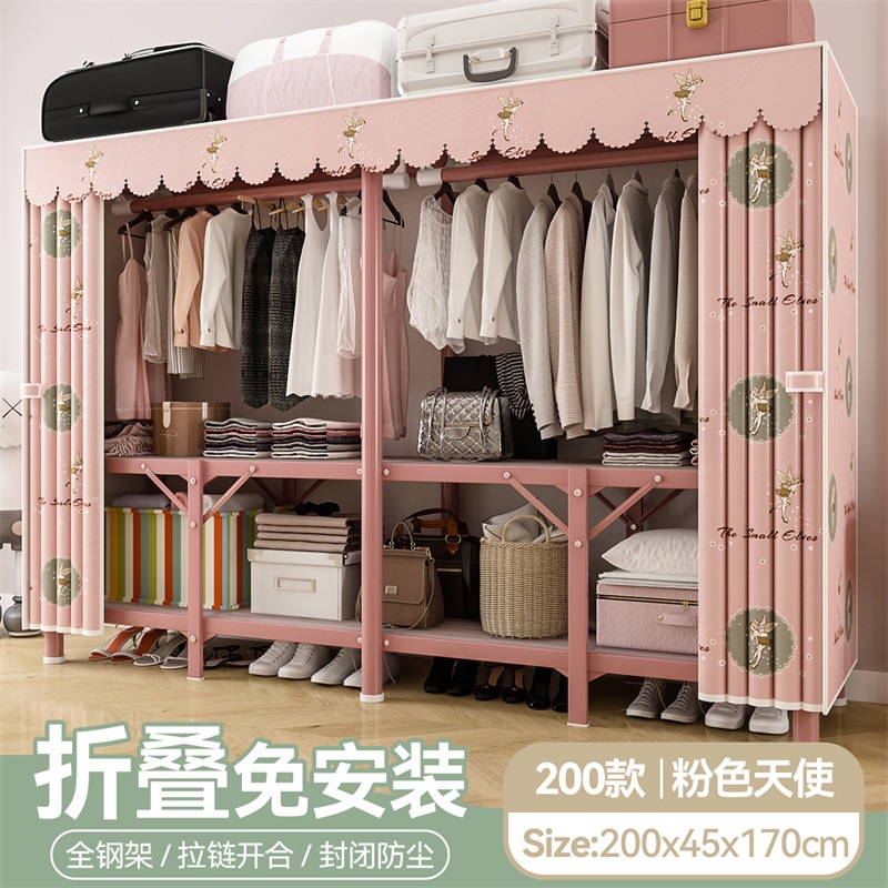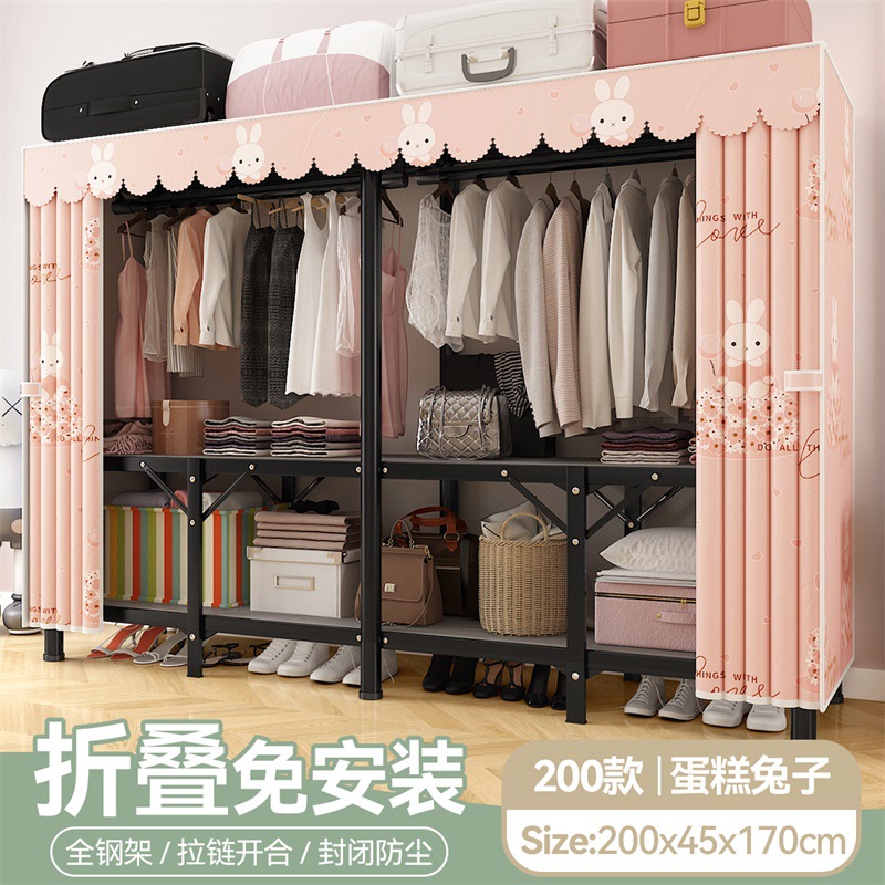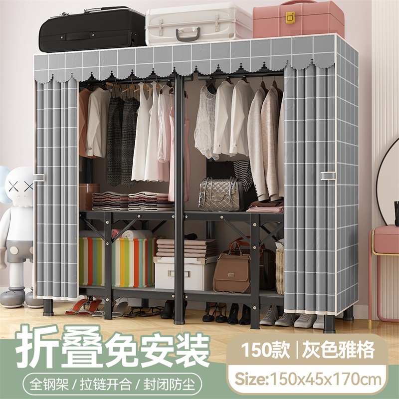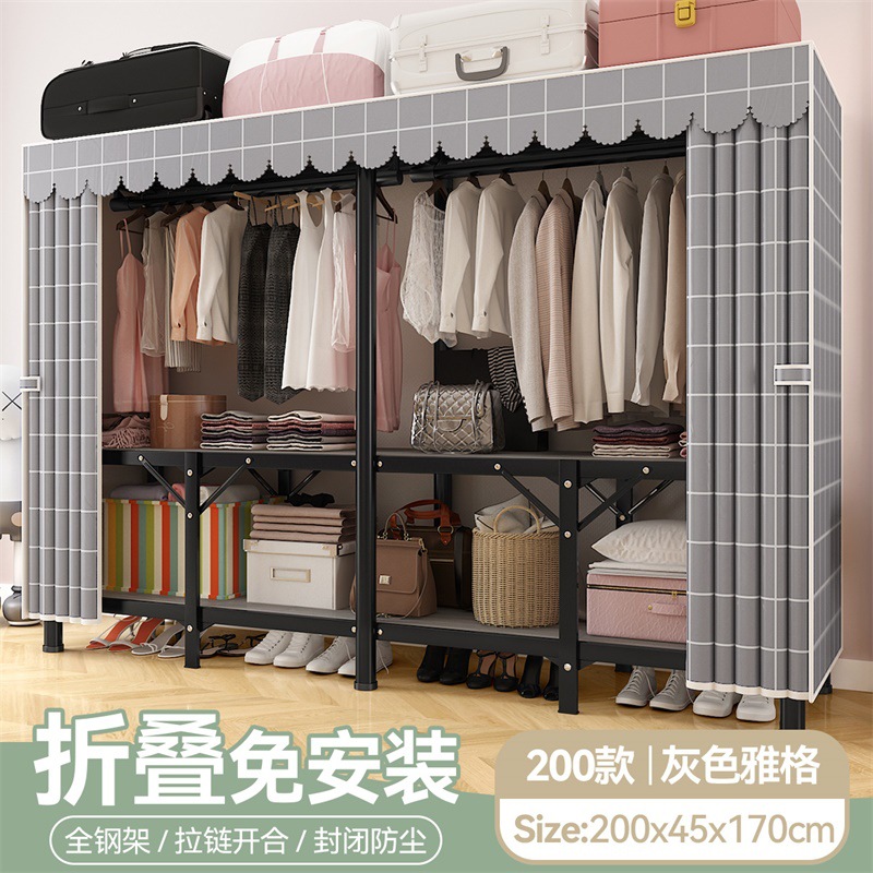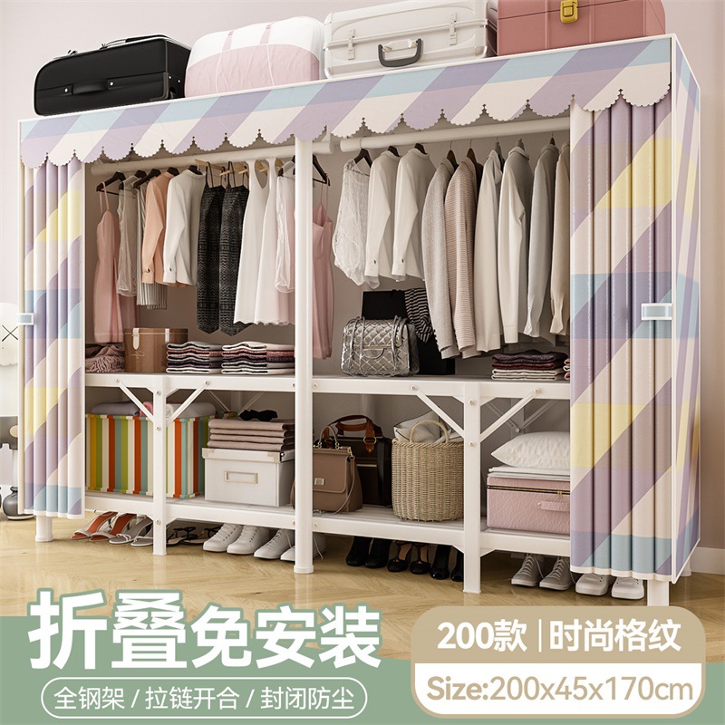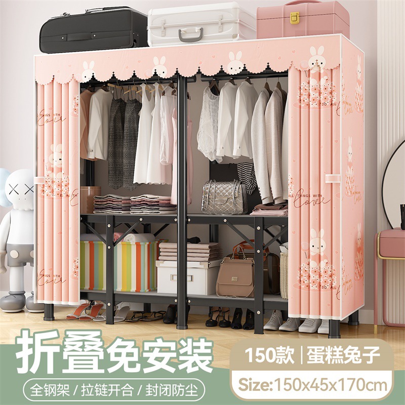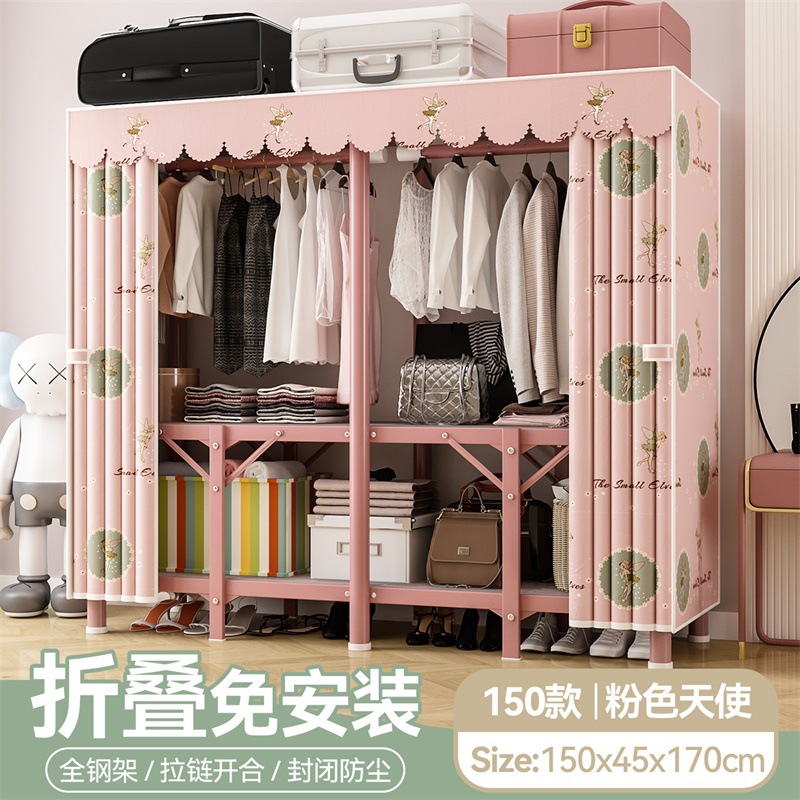 설치가 필요 없는 접이식 강철 프레임 구조 간단한 천 옷장 강철 파이프 두꺼운 가정용 침실 튼튼한 전체 교수형 옷장