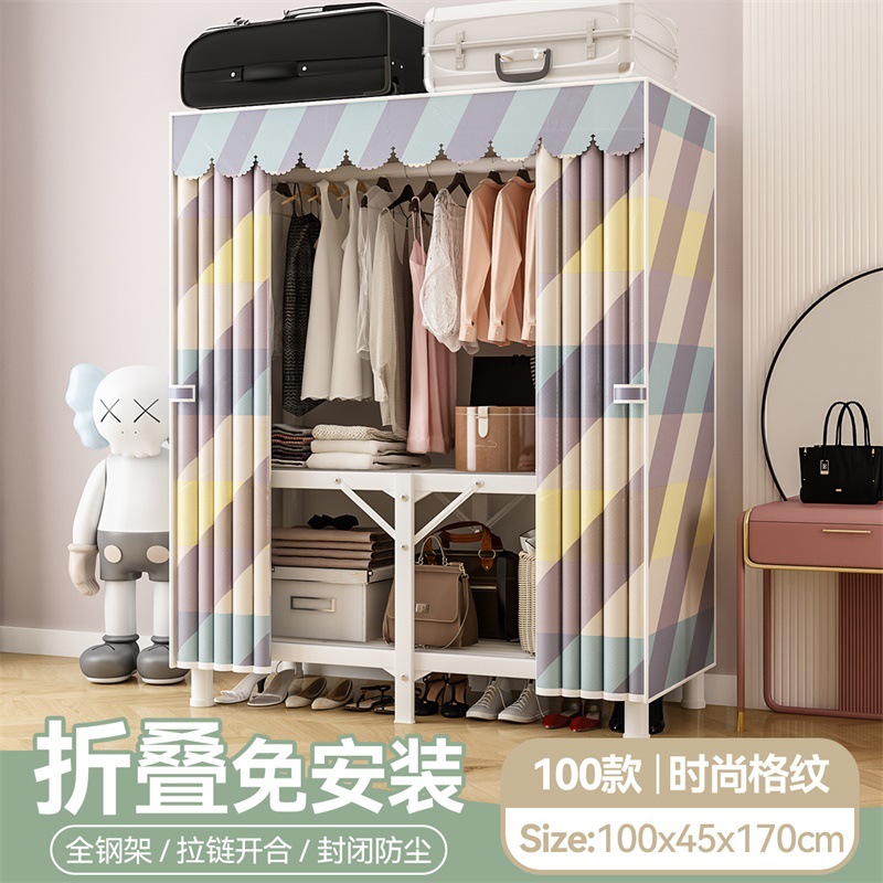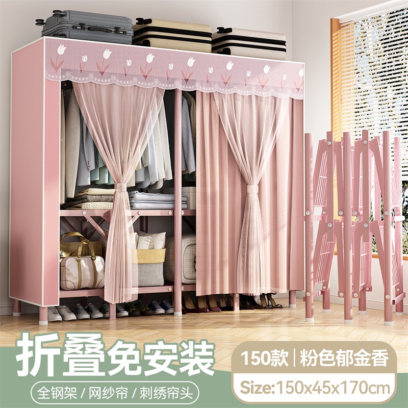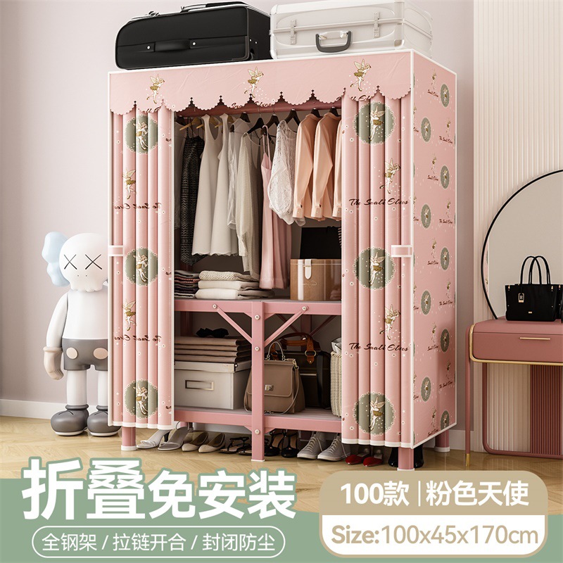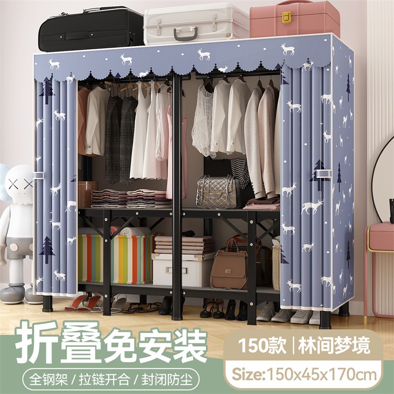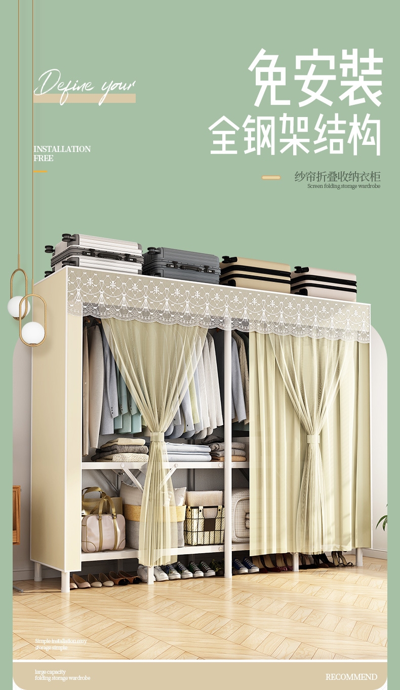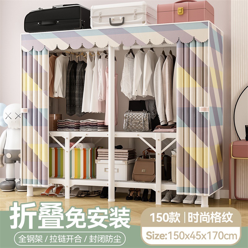 설치가 필요 없는 접이식 강철 프레임 구조 간단한 천 옷장 강철 파이프 두꺼운 가정용 침실 튼튼한 전체 교수형 옷장
