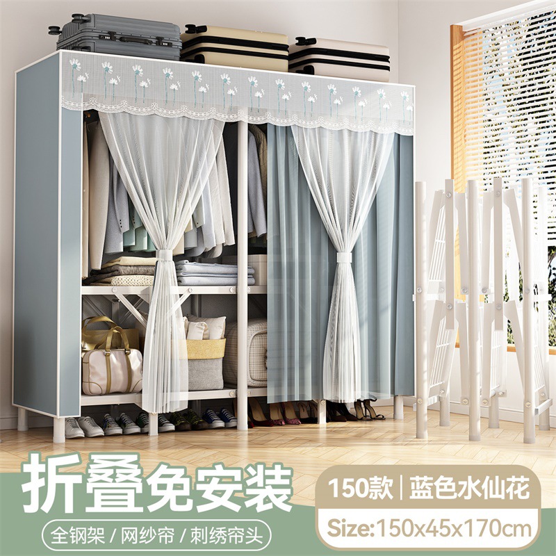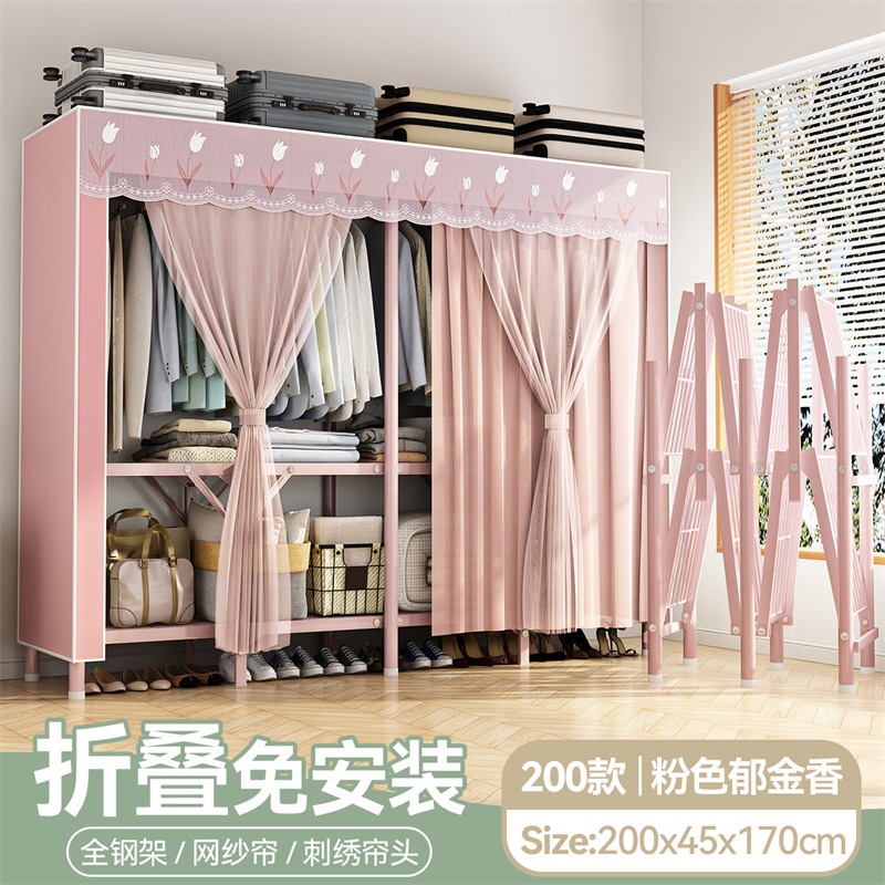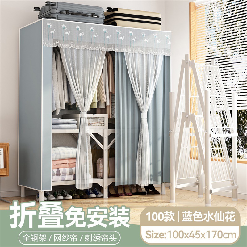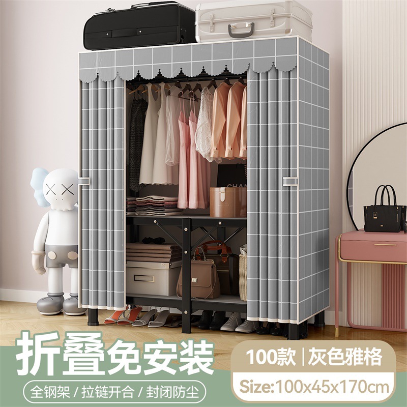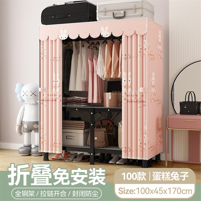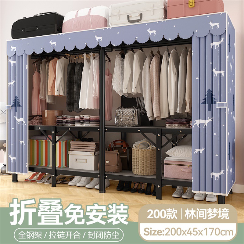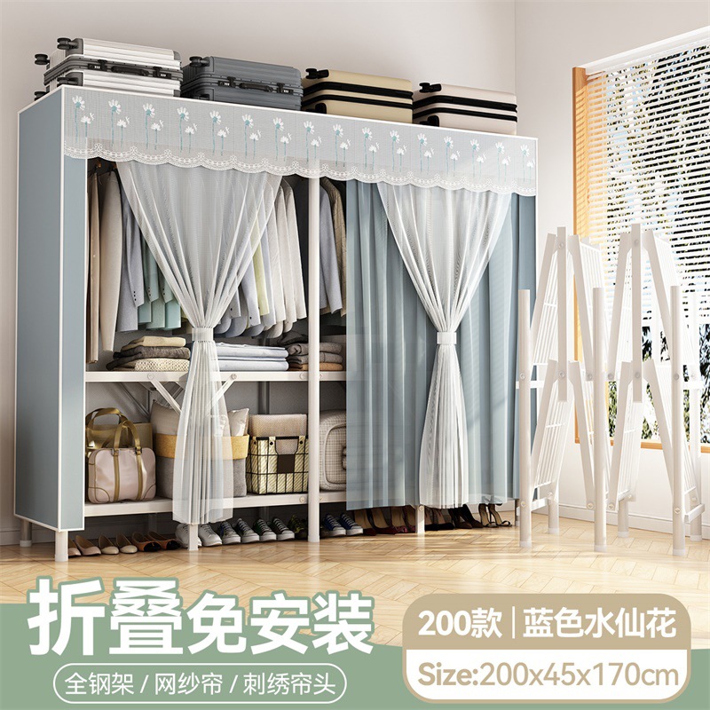 설치가 필요 없는 접이식 강철 프레임 구조 간단한 천 옷장 강철 파이프 두꺼운 가정용 침실 튼튼한 전체 교수형 옷장