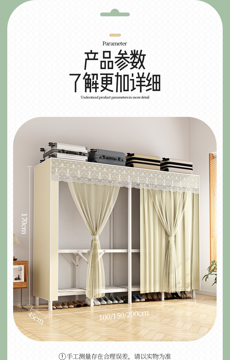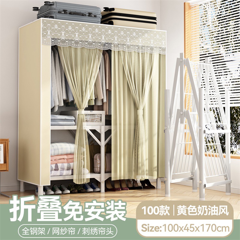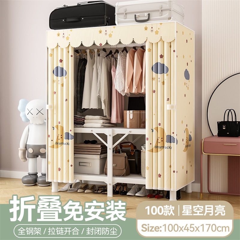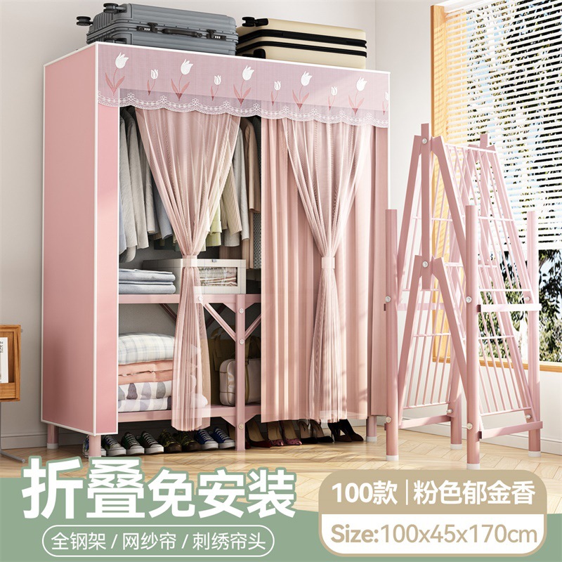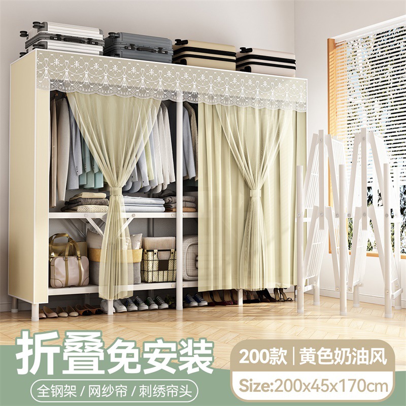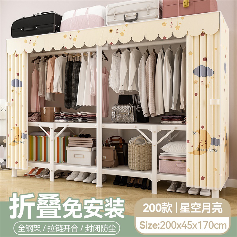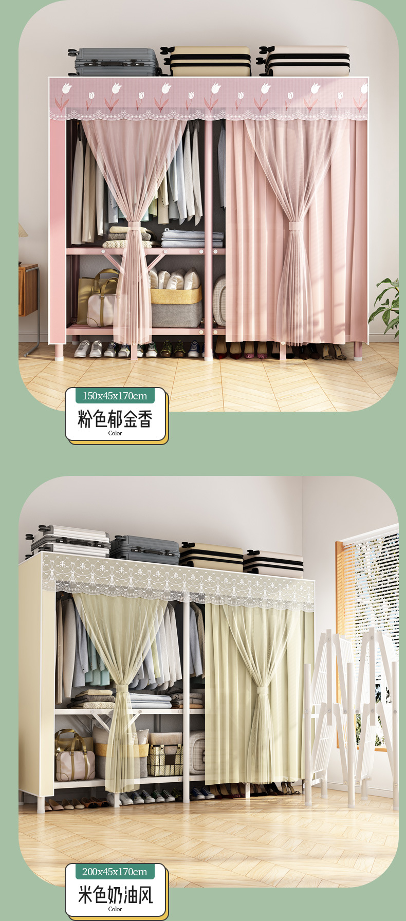 설치가 필요 없는 접이식 강철 프레임 구조 간단한 천 옷장 강철 파이프 두꺼운 가정용 침실 튼튼한 전체 교수형 옷장