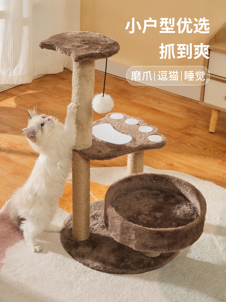 고양이 클라이밍 프레임, 소형, 공간 절약형, 고양이 선반, 고양이 둥지, 고양이 트리, 일체형 사이잘 고양이 스크래치 컬럼, 고양이 타워, 새끼 고양이 장난감스토어 가기