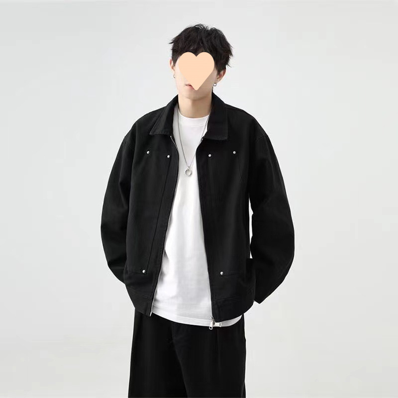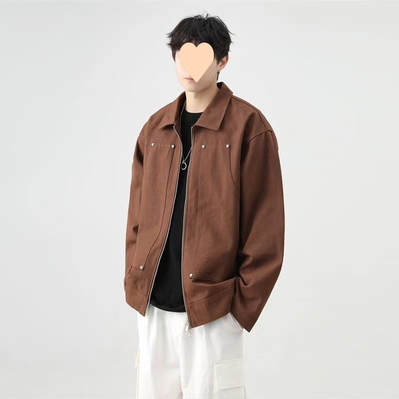 가을 하이 엔드 코트 복고풍 리벳 라펠 캐주얼 재킷 2025 새로운 미국 스타일 루즈하고 멋진 트렌디 남성 겉옷스토어 가기