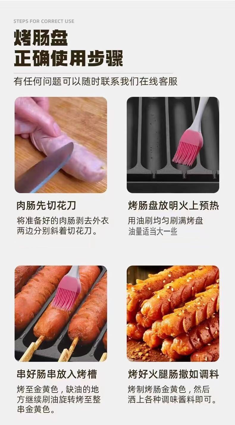 • 확대되고 두꺼워진 4관 소시지 팬(오일 브러시 + 대나무 꼬치 20개)