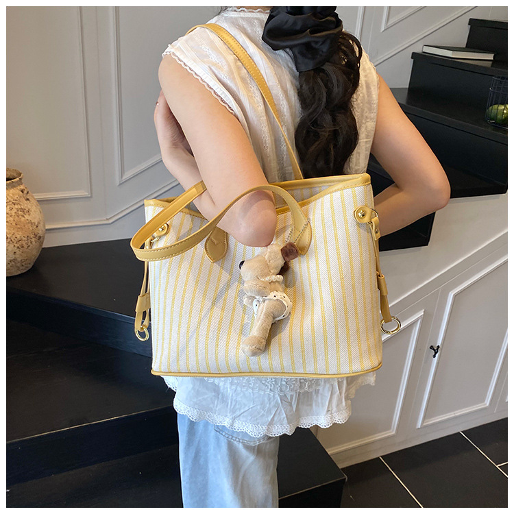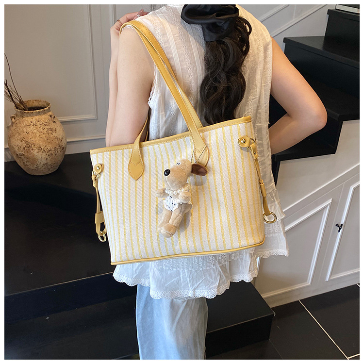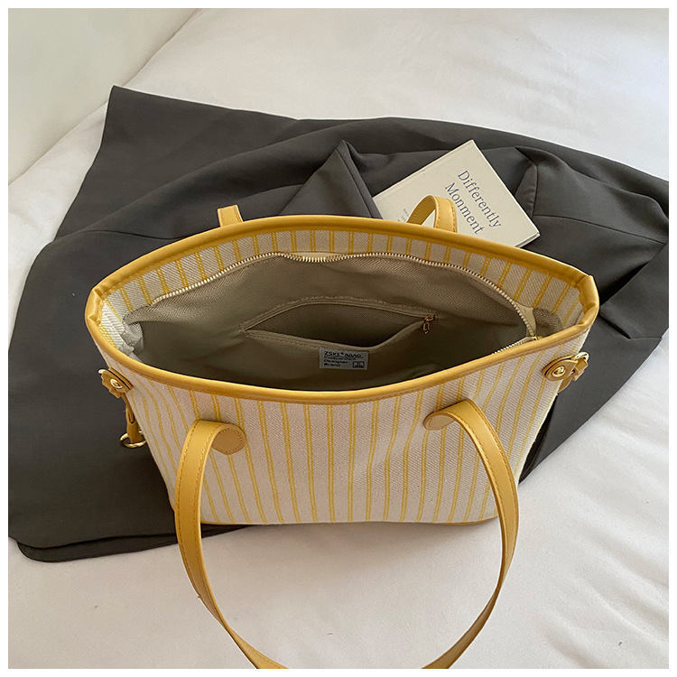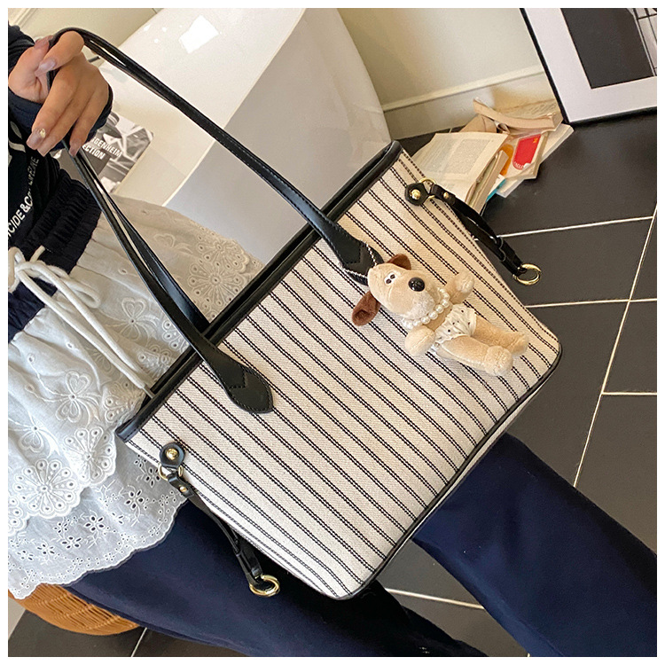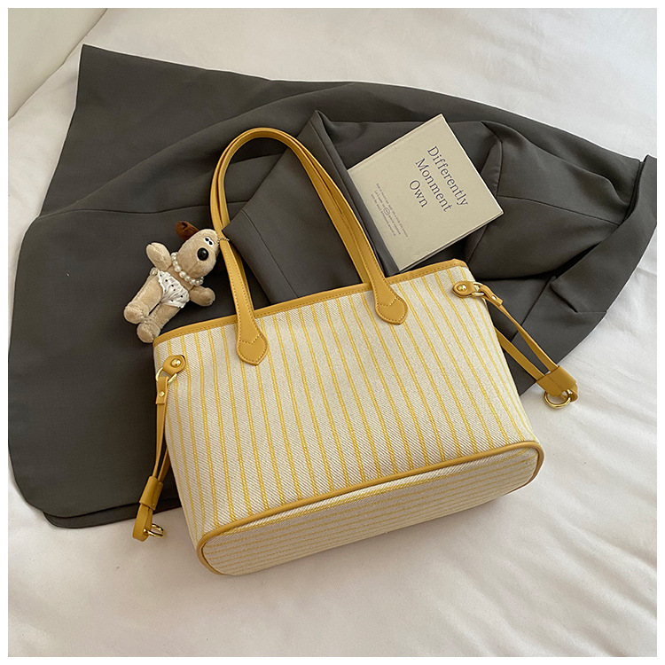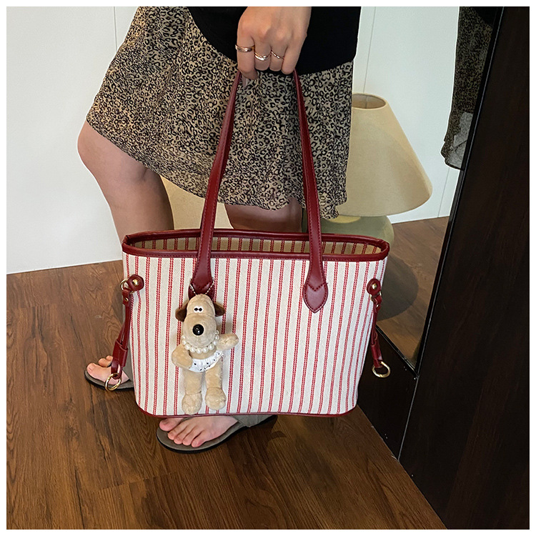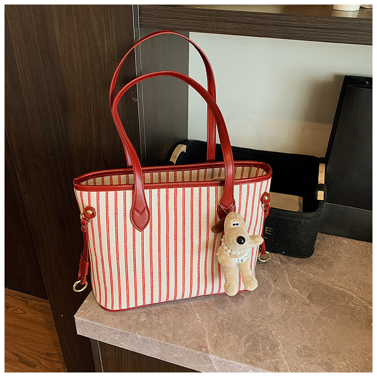 여성을위한 통근 대용량 스트라이프 캔버스 가방 2025 새로운 패션 다용도 숄더백 출근 토트 백