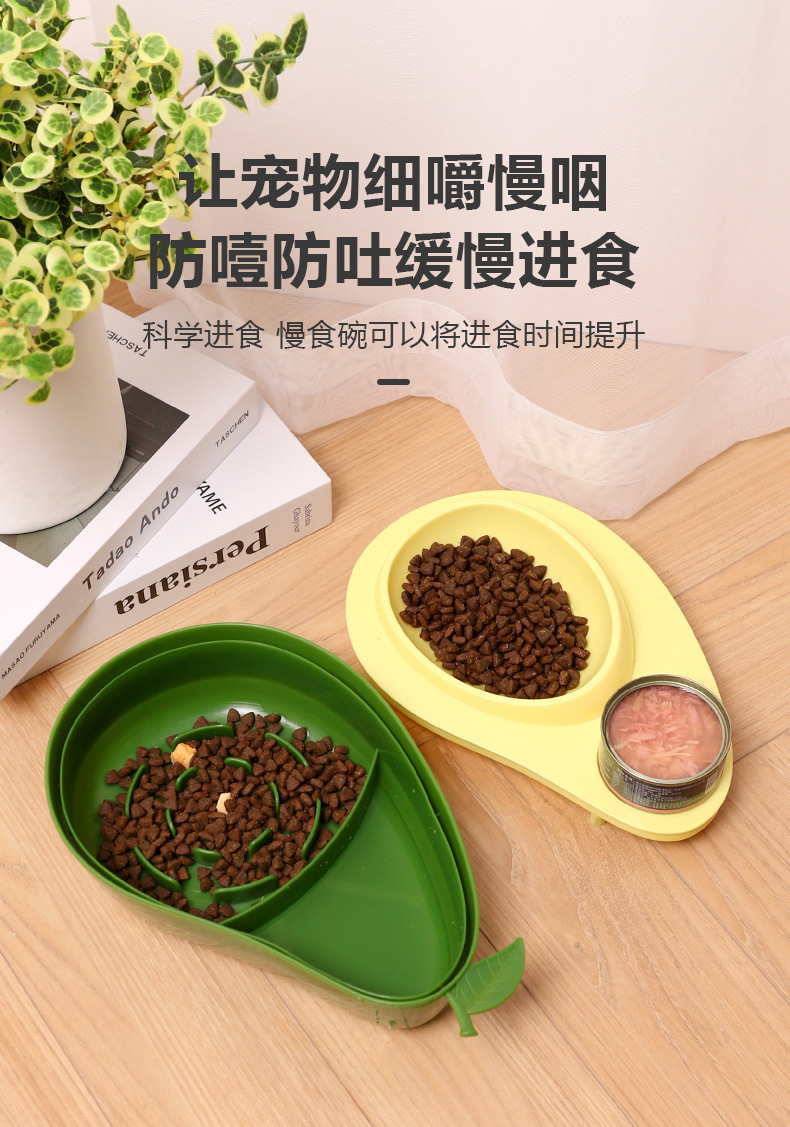 아보카도 먹이 및 물그릇, 고양이 그릇, 이중 그릇, 방습 입, 다기능 애완동물 자동 급수기, 질식 방지 개 그릇