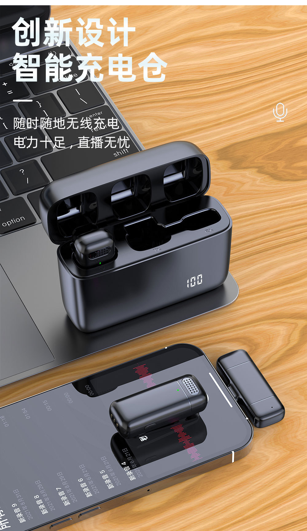 디지털 디스플레이 충전 박스가 포함된 새로운 무선 라발리에 마이크 라이브 비디오 녹화 경량 소형 소음 감소 마이크
