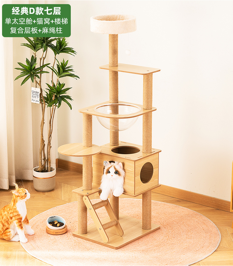 고양이 클라이밍 프레임, 고양이 둥지, 고양이 트리, 원목 일체형 우주 캡슐, 스카이 컬럼, 고양이 선반, 고양이 용품, 사이잘라 장난감