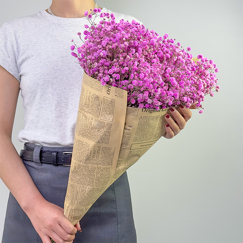 • 보라색 안개꽃 [큰 묶음] 복고풍 신문 포장