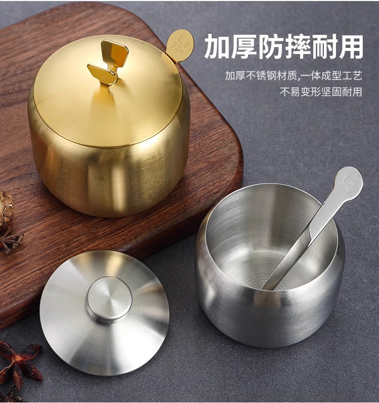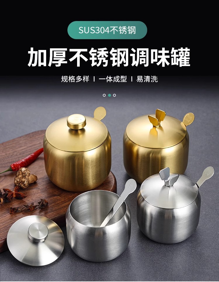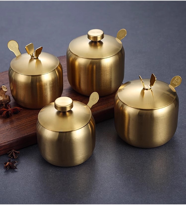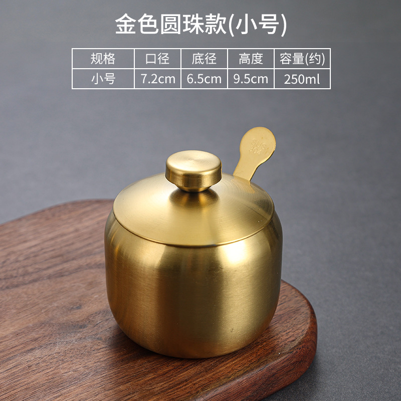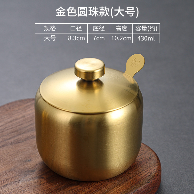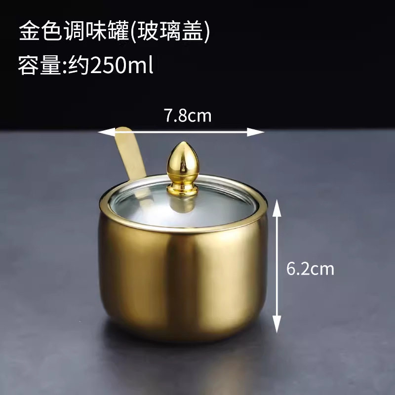 한국 스테인레스 스틸 조미료 병 주방 고추 간장 항아리 소금 항아리 스푼 조미료 상자 크리 에이 티브 골드 항아리 조미료