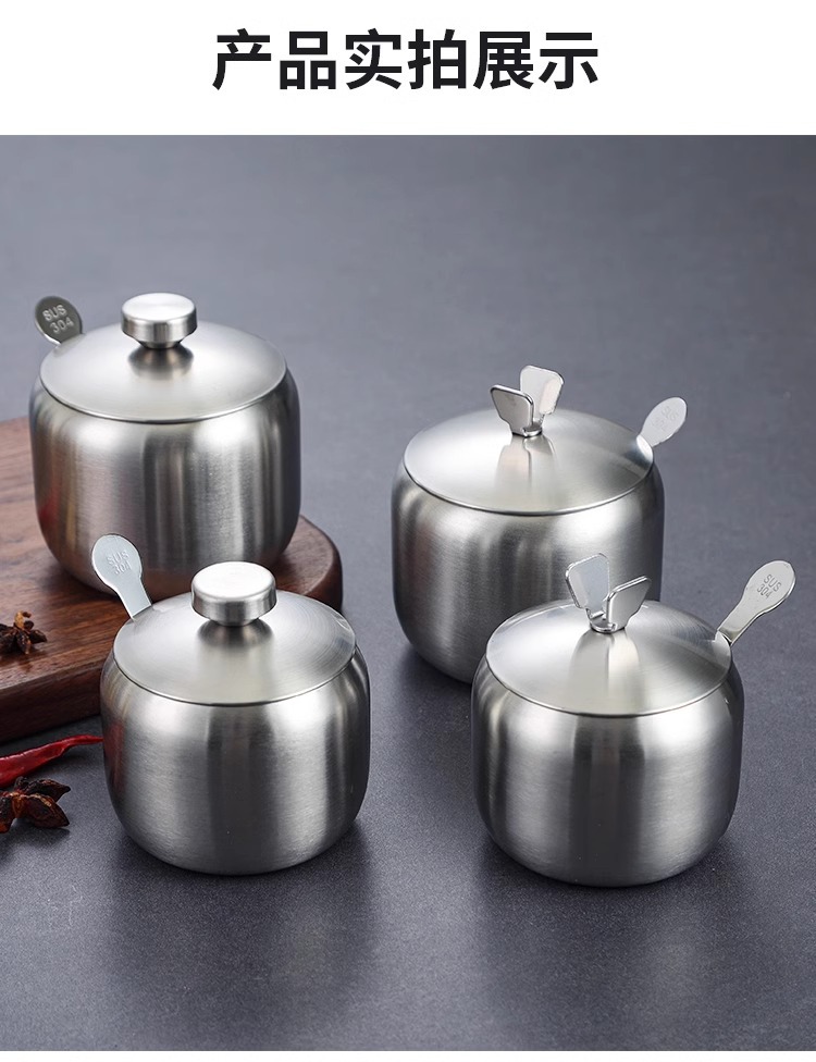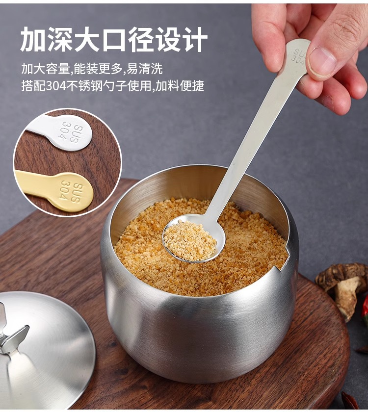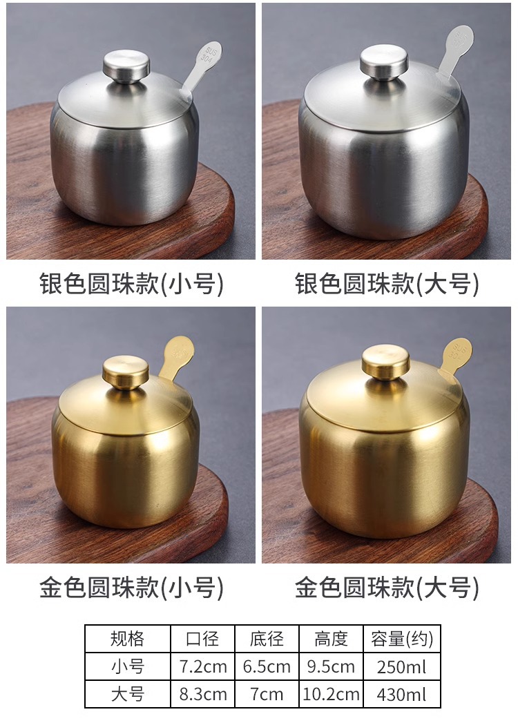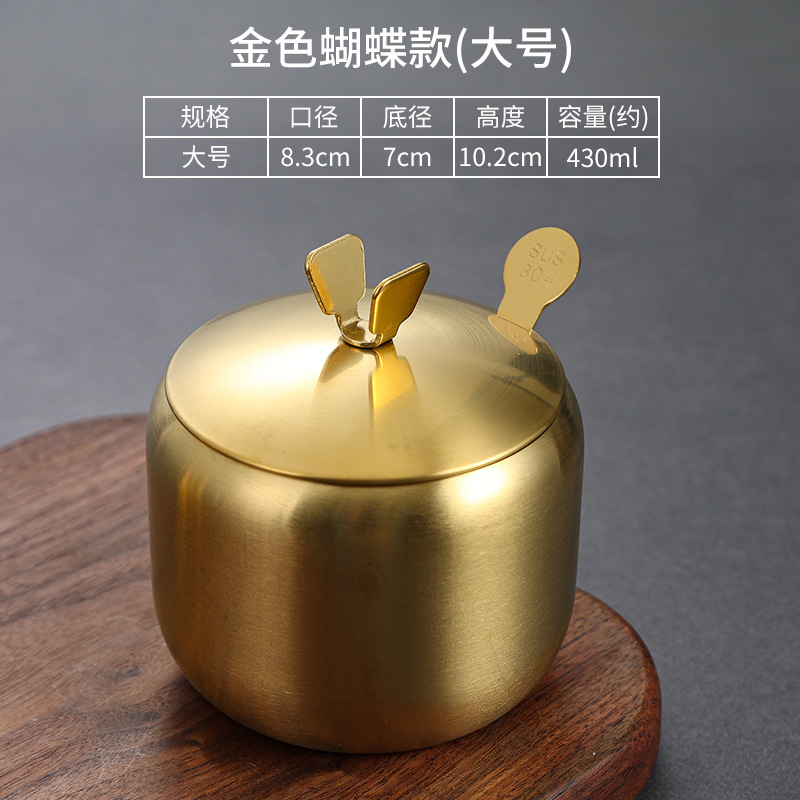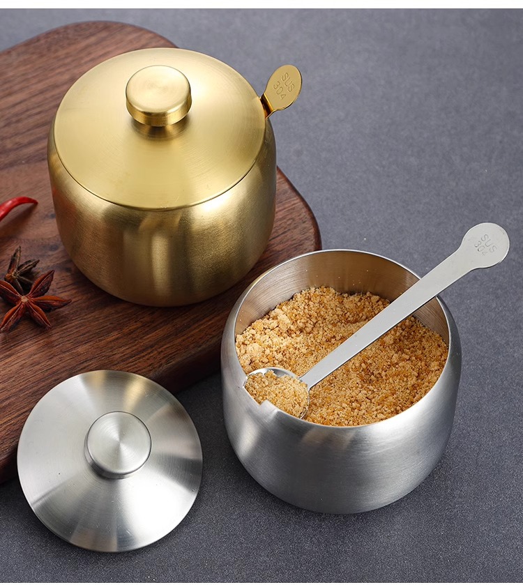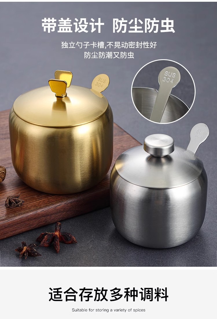 한국 스테인레스 스틸 조미료 병 주방 고추 간장 항아리 소금 항아리 스푼 조미료 상자 크리 에이 티브 골드 항아리 조미료
