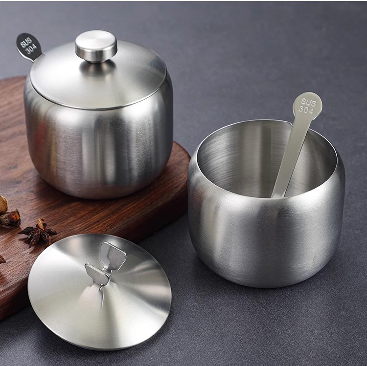한국 스테인레스 스틸 조미료 병 주방 고추 간장 항아리 소금 항아리 스푼 조미료 상자 크리 에이 티브 골드 항아리 조미료스토어 가기