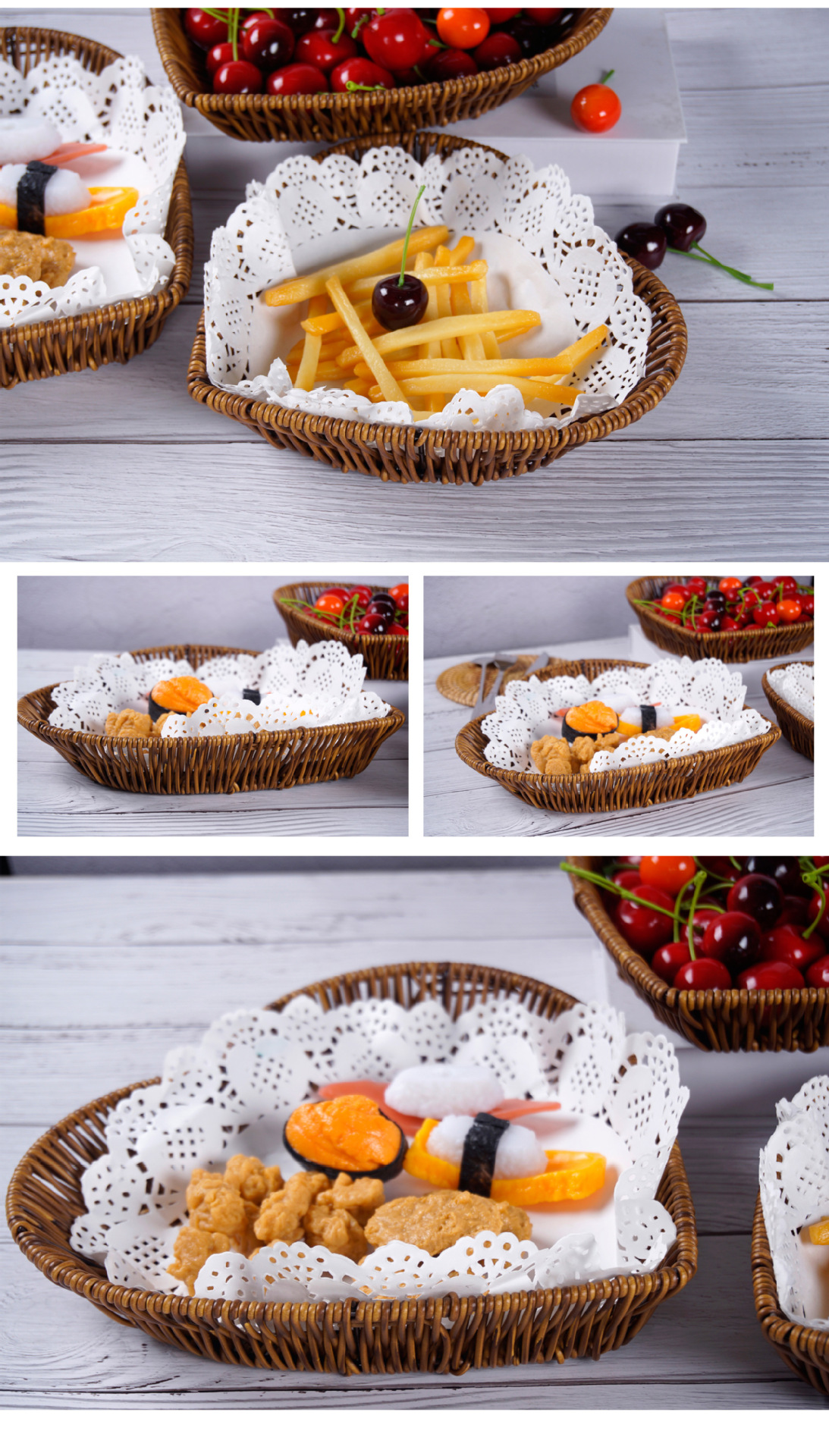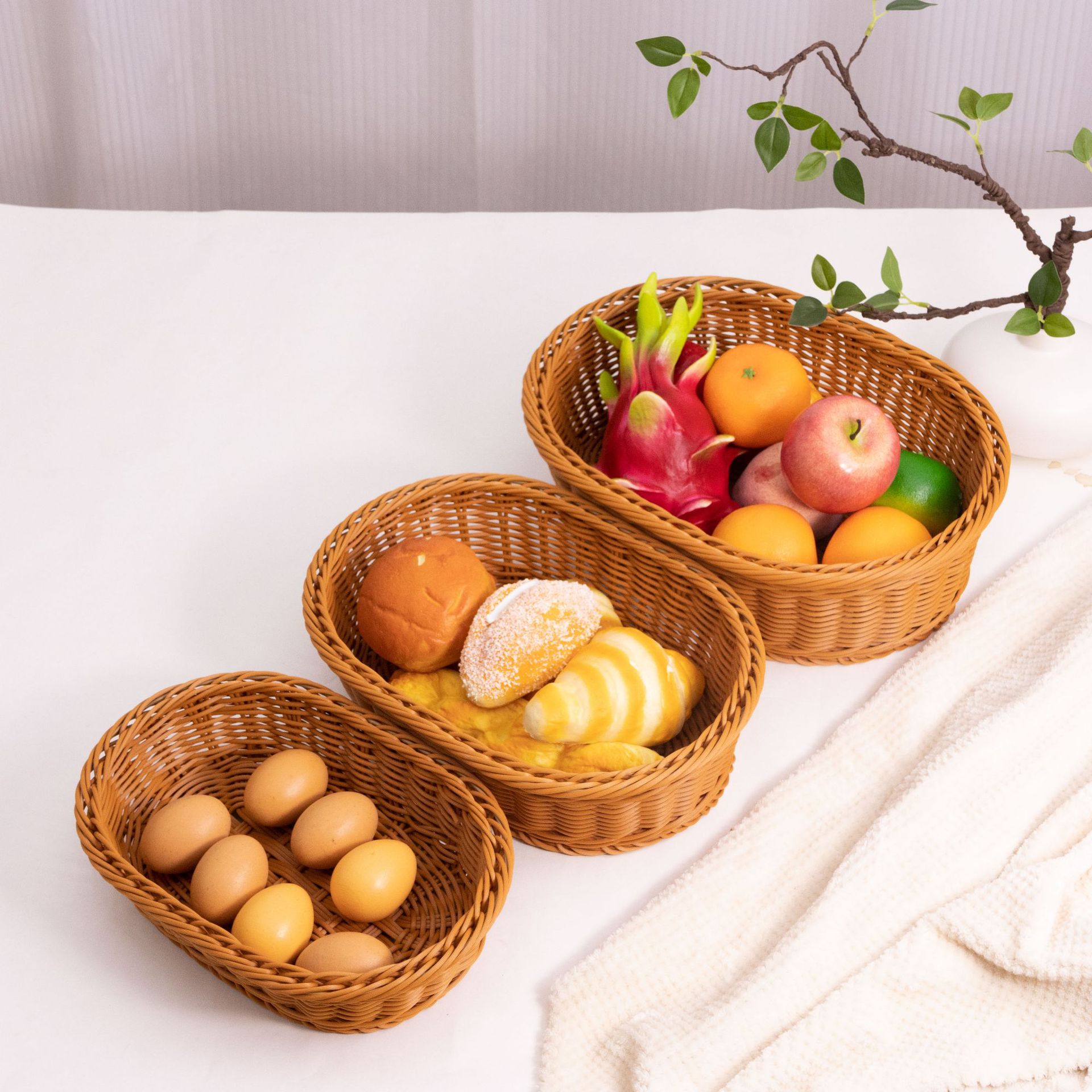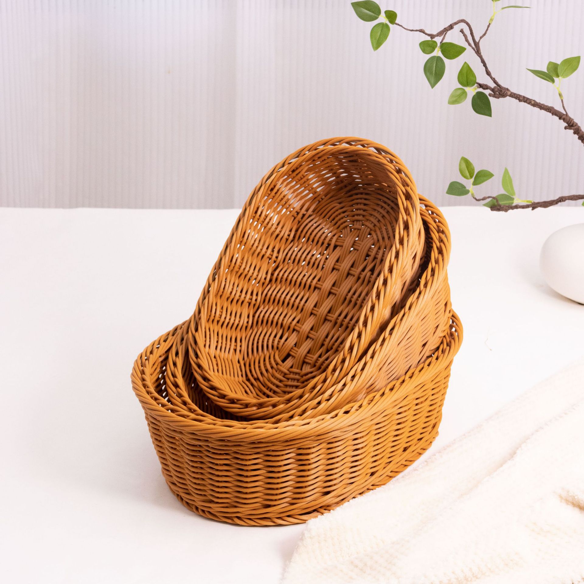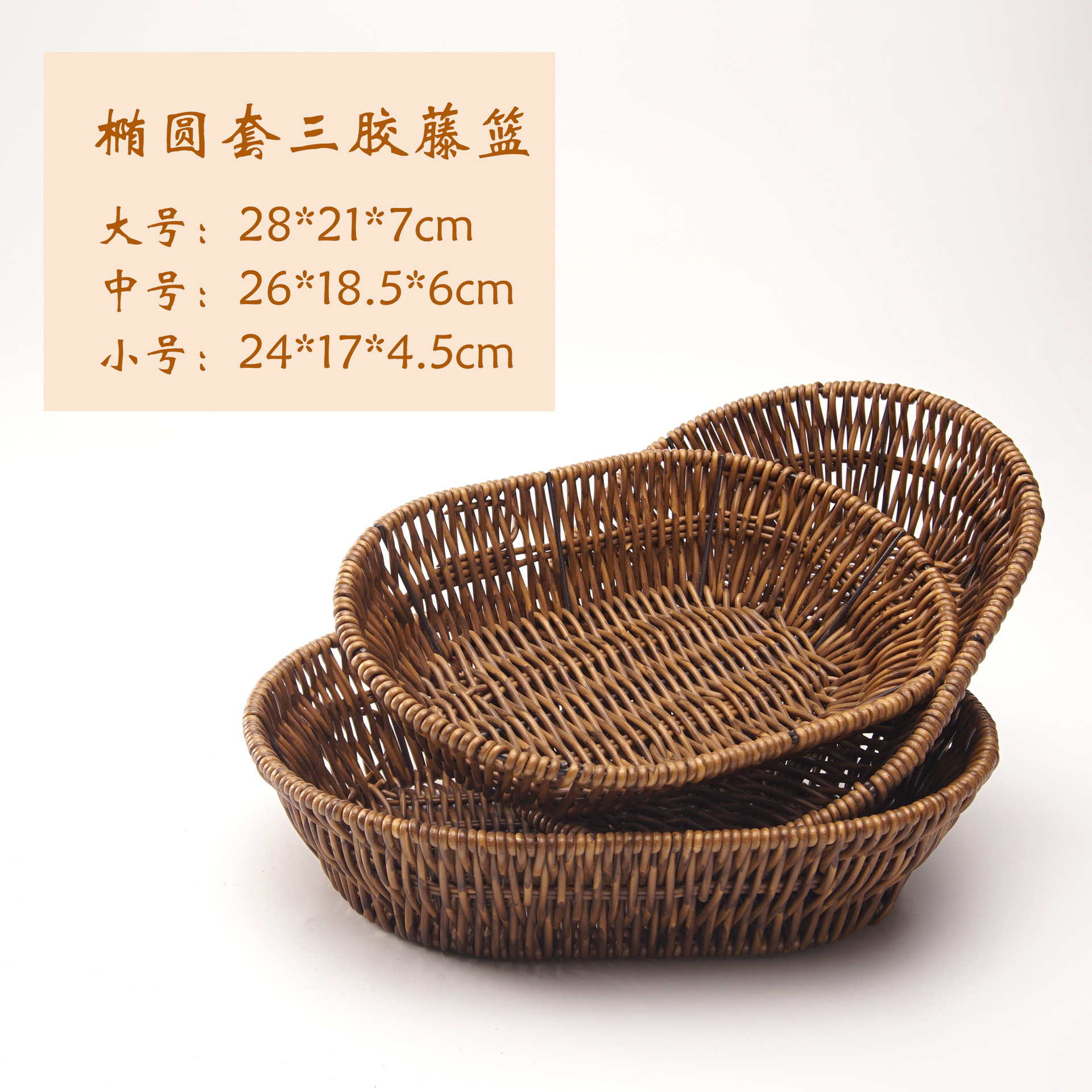 • 소형 + 중형 + 대형 타원형 다크 브라운 스낵 바구니