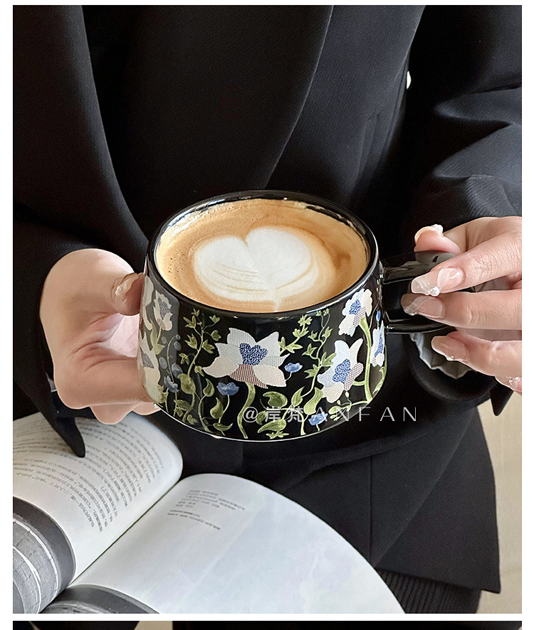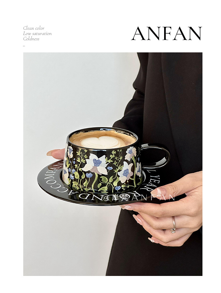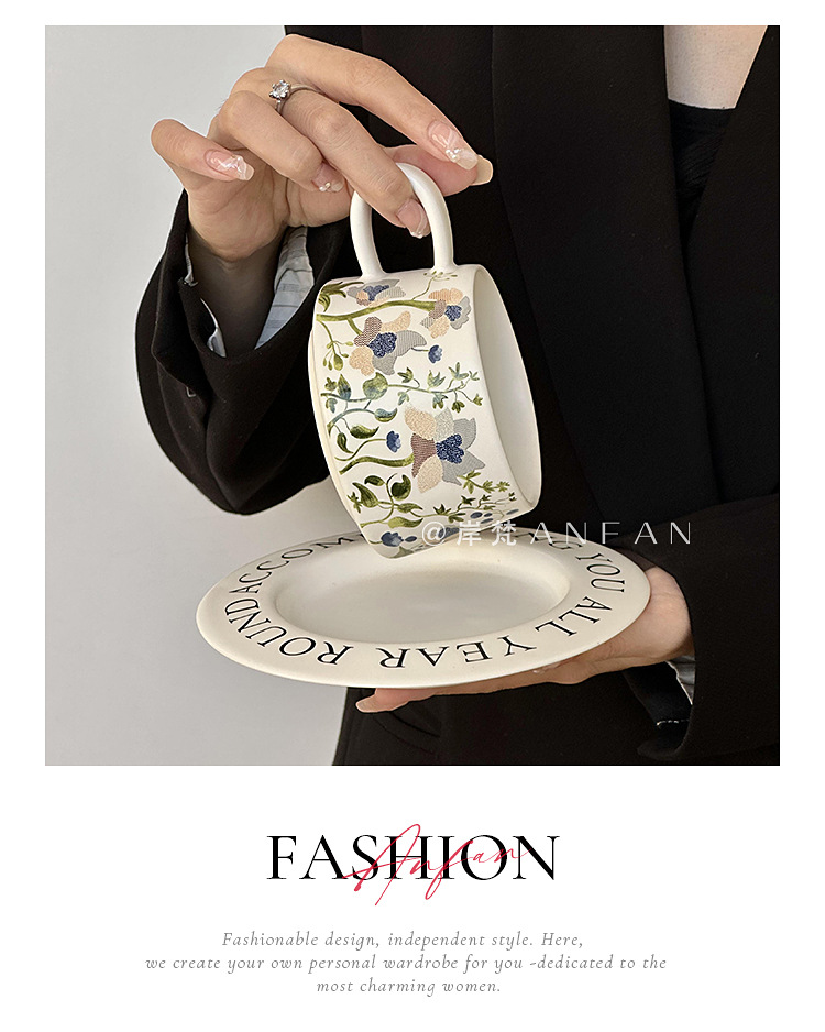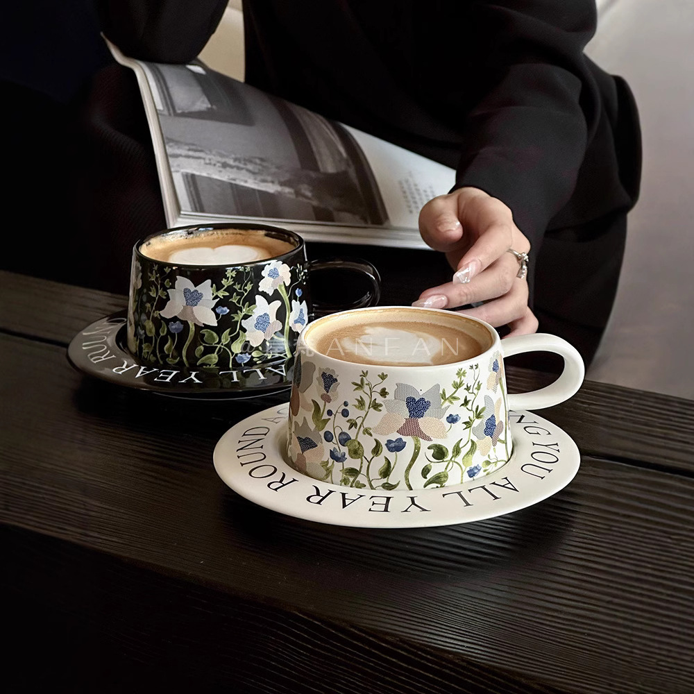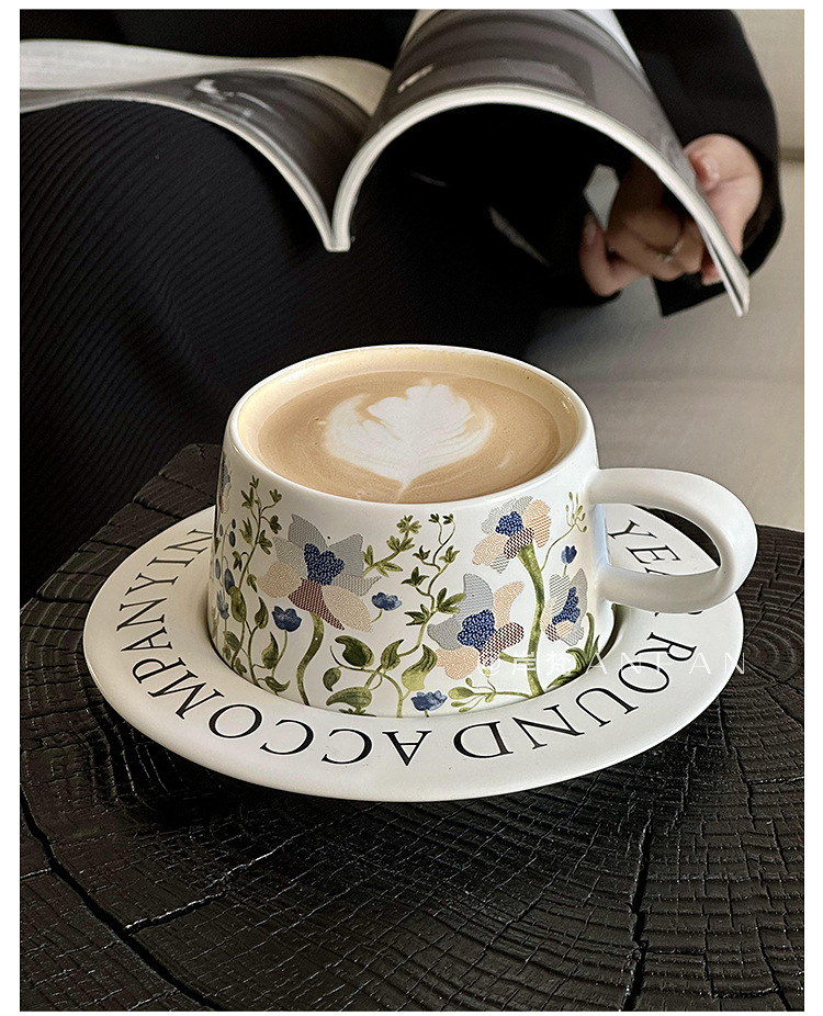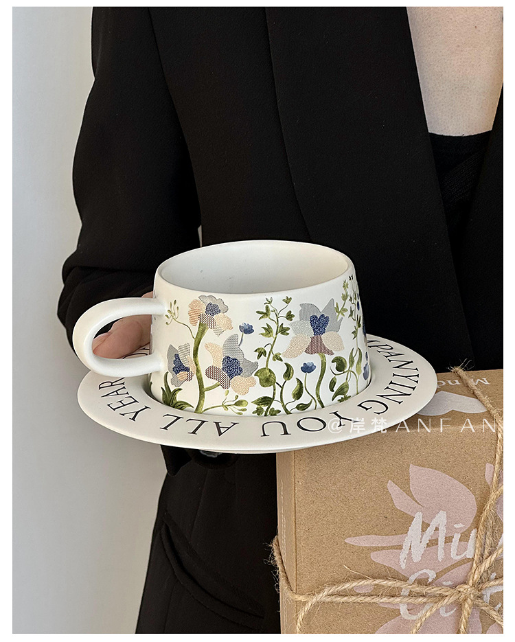 레트로 유화 스타일 은방울꽃 커피 컵과 접시 손으로 그린 라떼 컵 세트 오리지널 선물 세라믹 컵스토어 가기