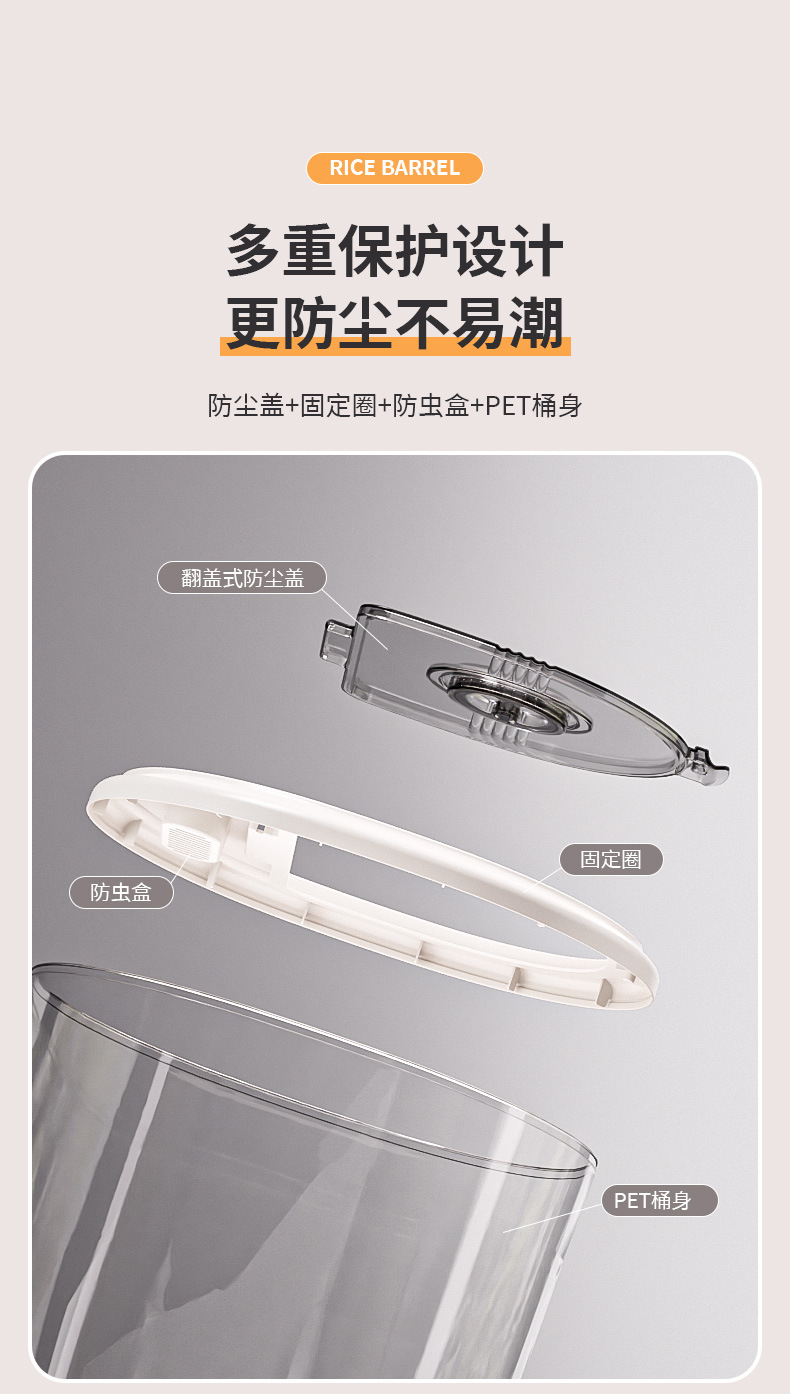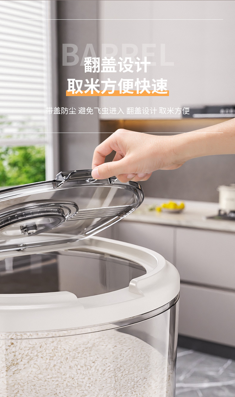 가벼운 고급 쌀통, 가정용 방충 및 방습 대용량 쌀통, 곡물 저장통, 밀가루 저장통