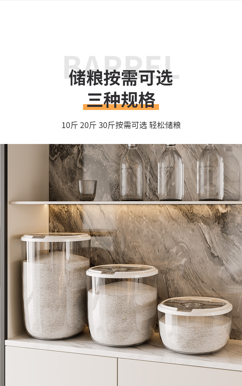 가벼운 고급 쌀통, 가정용 방충 및 방습 대용량 쌀통, 곡물 저장통, 밀가루 저장통스토어 가기