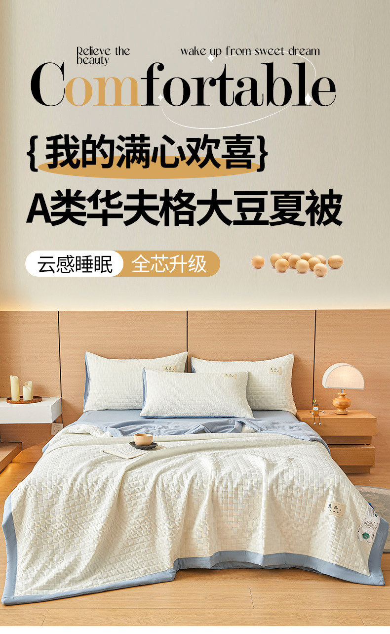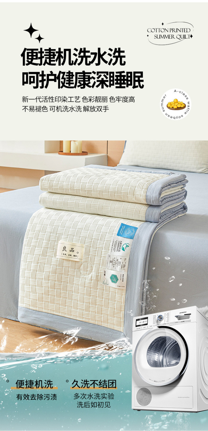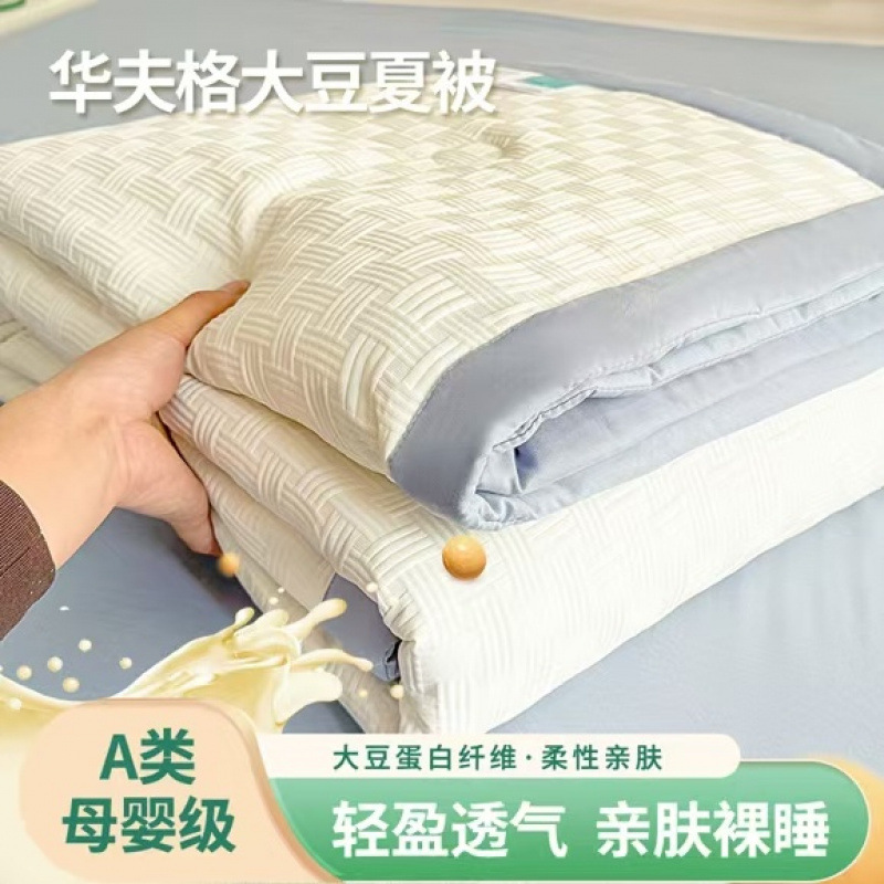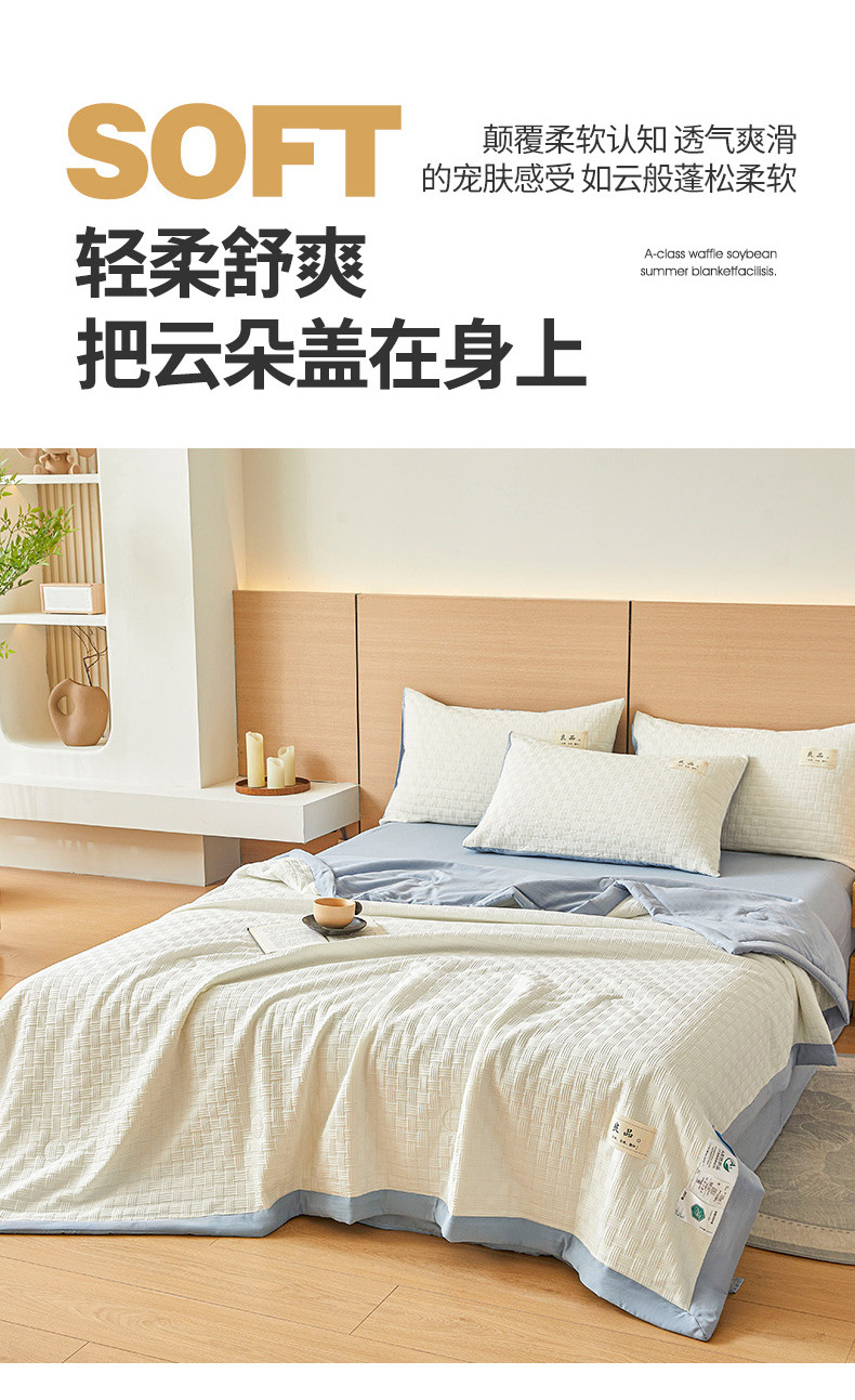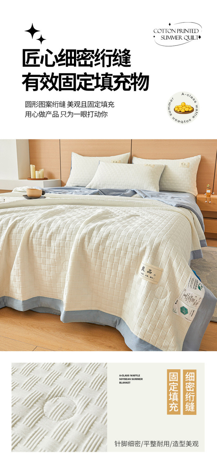 세탁기로 세탁 가능한 콩 섬유 와플 에어컨 학생 기숙사 여름 이불 얇은 여름 이불 싱글 및 더블 이불 코어스토어 가기