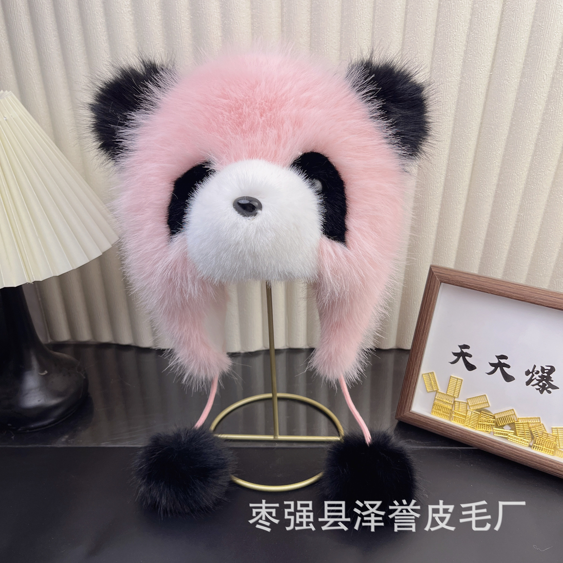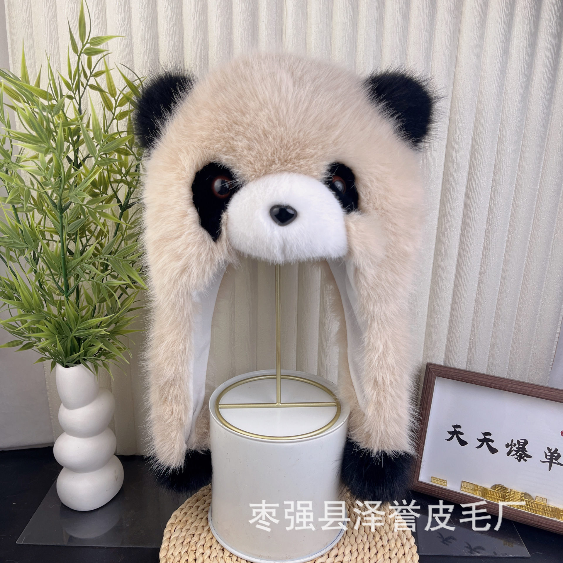 팬더 모자 모조 여우 부모-자식 플러시 자이언트 팬더 모자 겨울 여성 귀 보호 모자 어린이 곰 모자 청두 곰스토어 가기