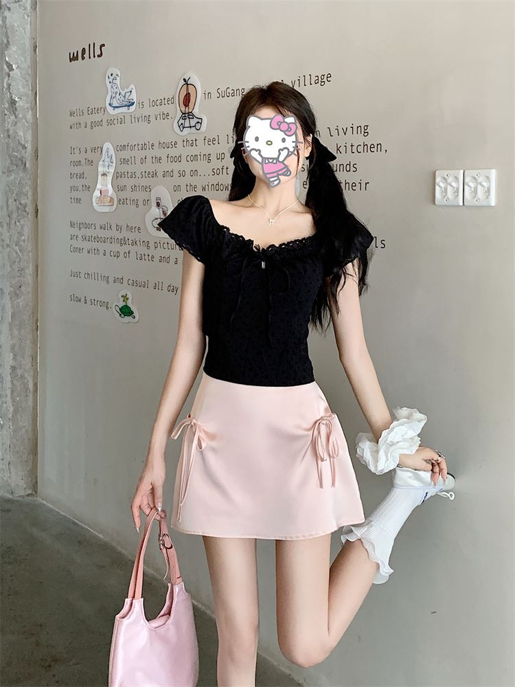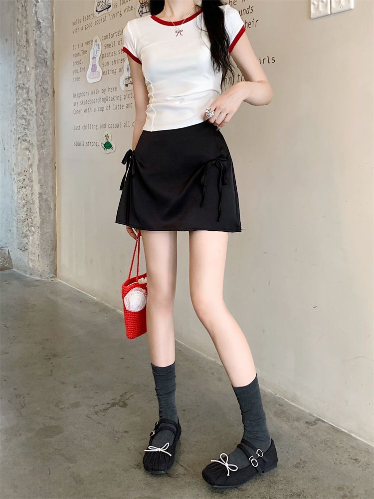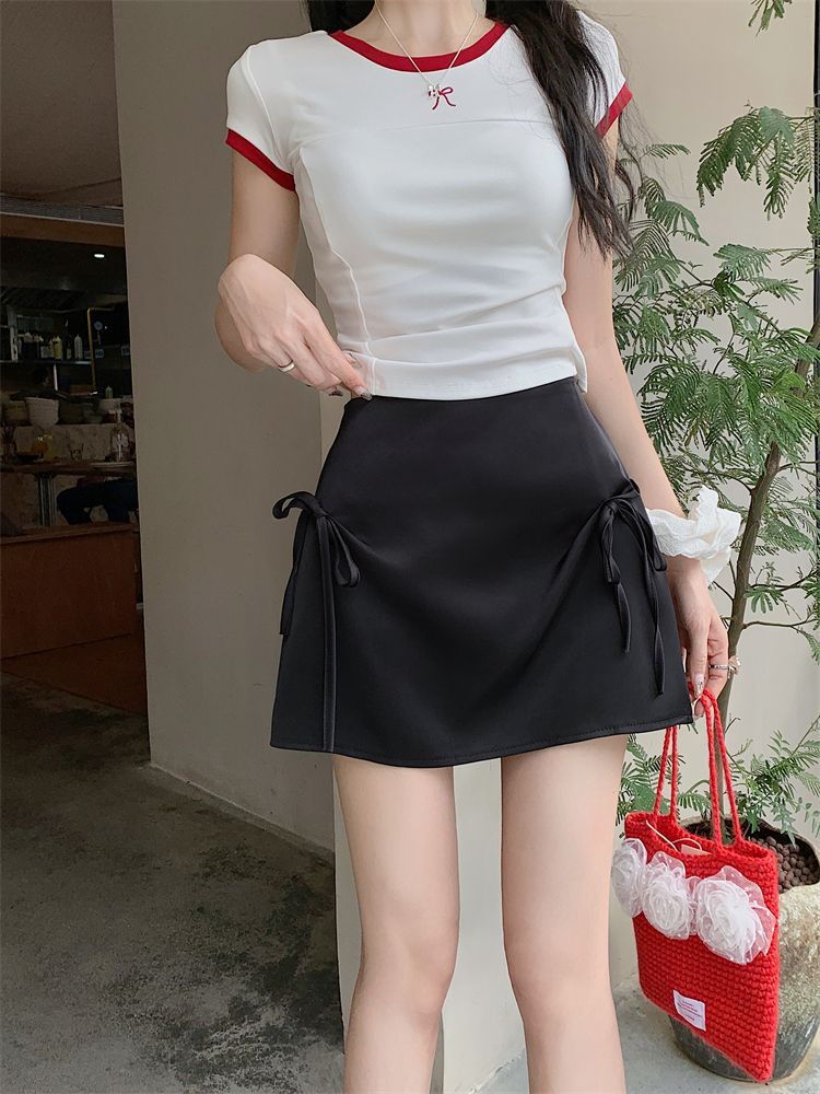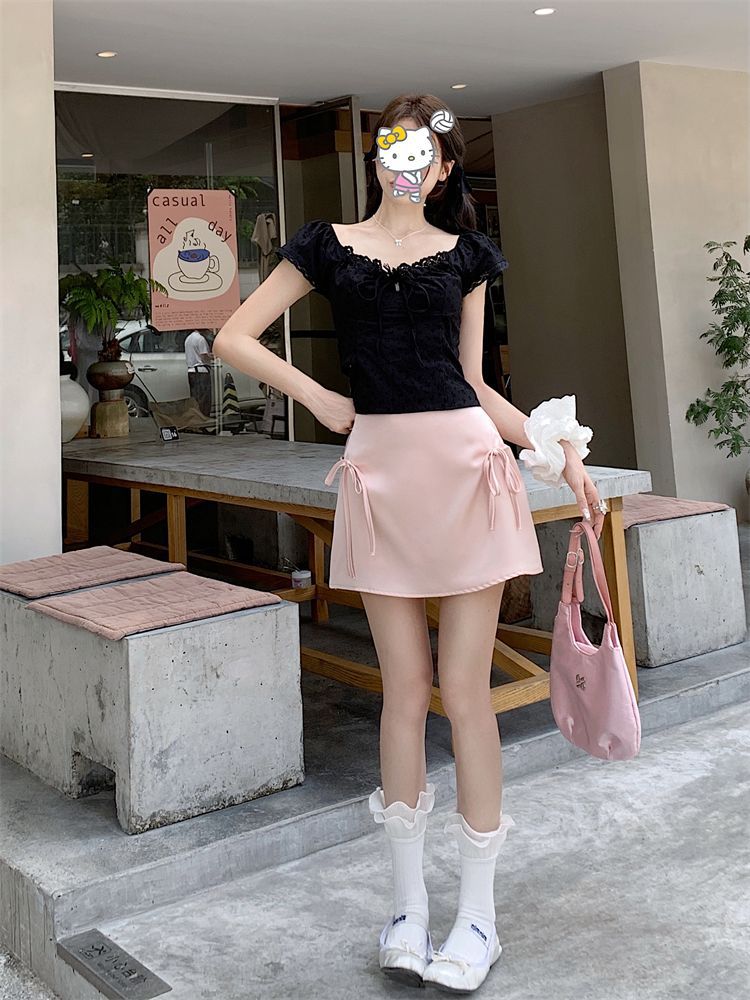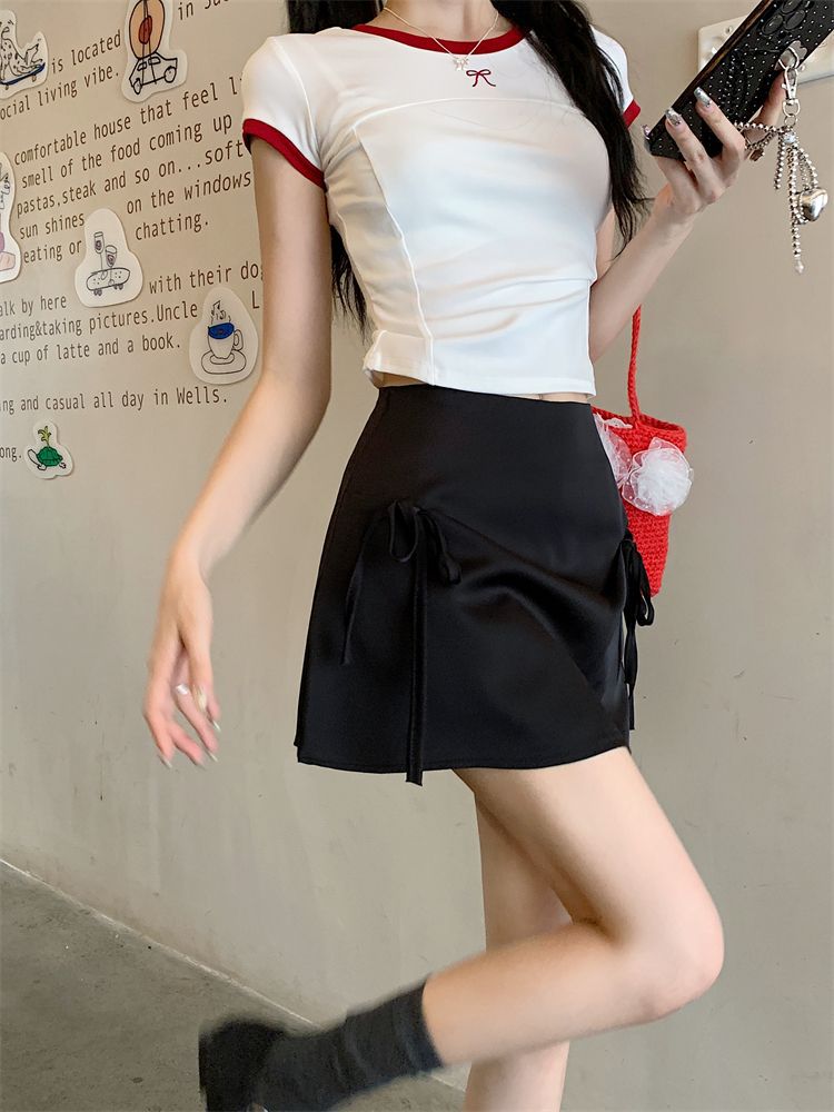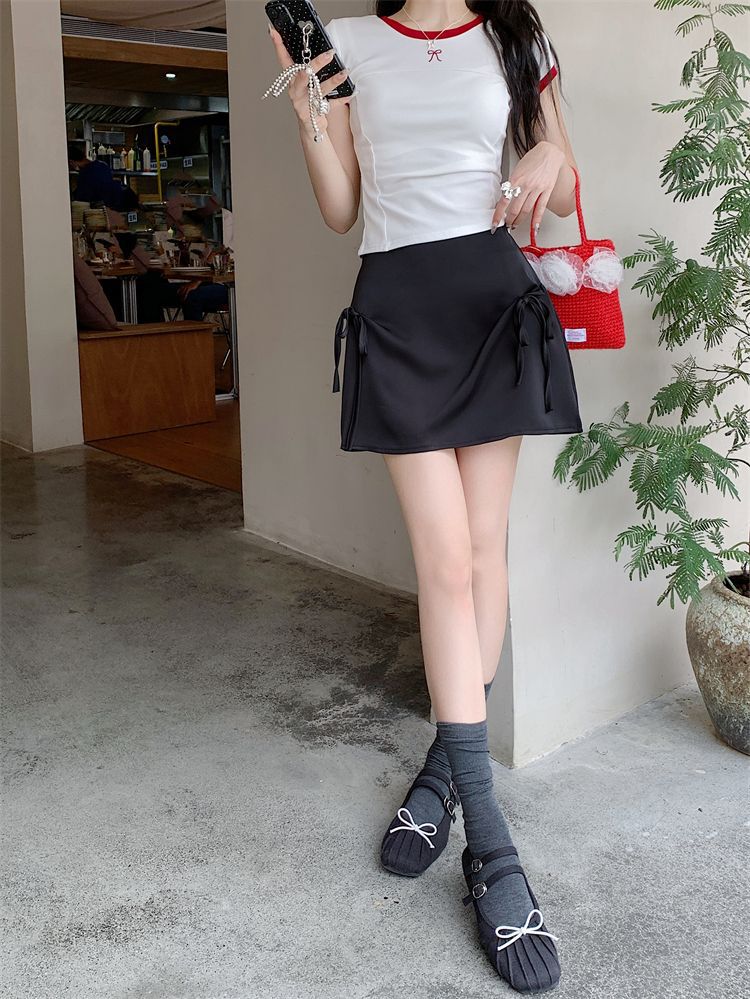 여성용 새틴 심플 솔리드 컬러 레이스 업 A 라인 스커트, 하이 웨이스트, 힙 커버, 슬리밍 스커트, 리본 스커트, 반바지 스커트