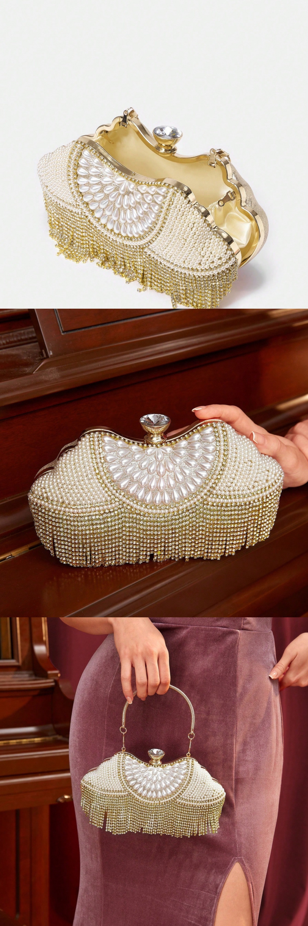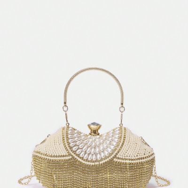 • 디너 백 2024 새로운 유럽과 미국의 연예인 진주 가방 라인 석 핸드백 골드 드레스 핸드백 체인 술 가방