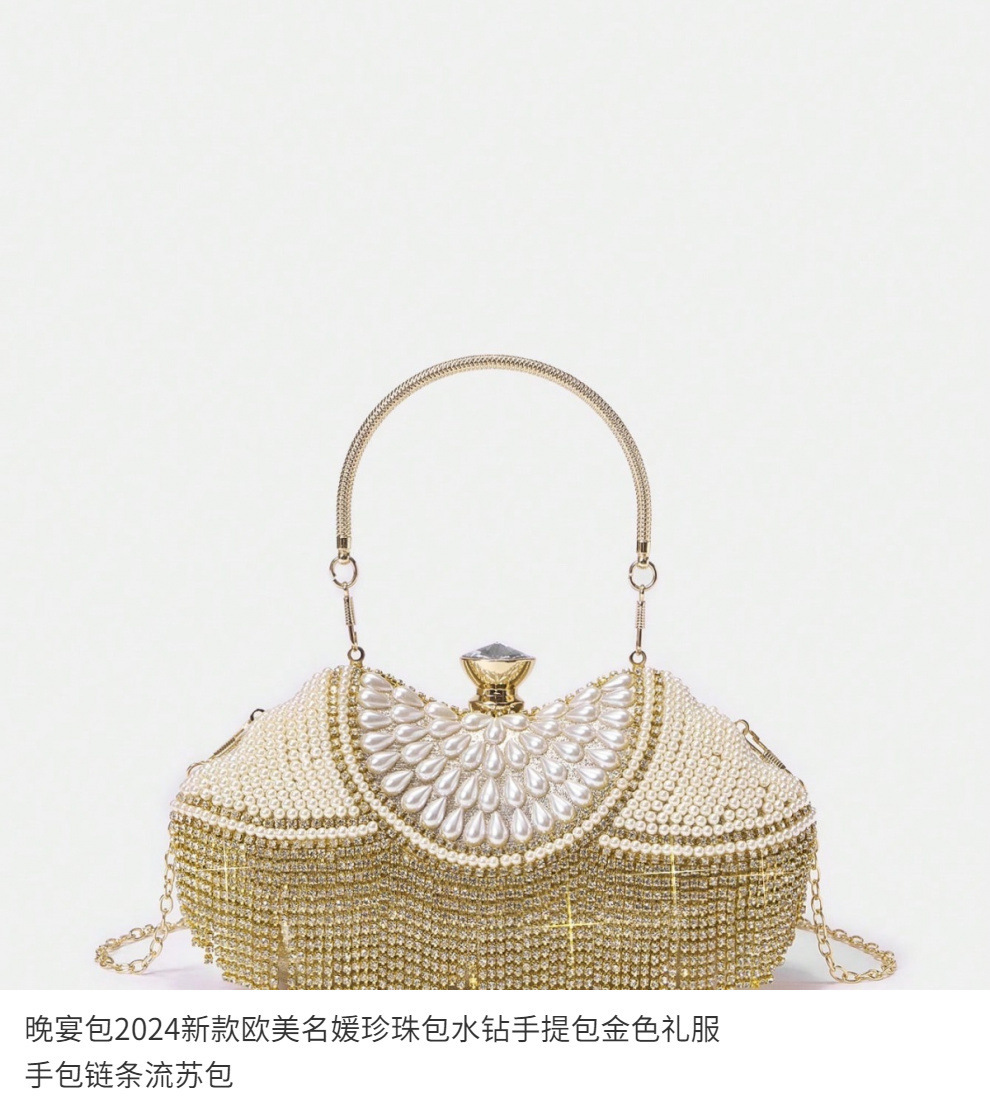 이브닝 백 2025 새로운 유럽과 미국의 연예인 진주 가방 라인 석 핸드백 골드 드레스 핸드백 체인 술 가방스토어 가기