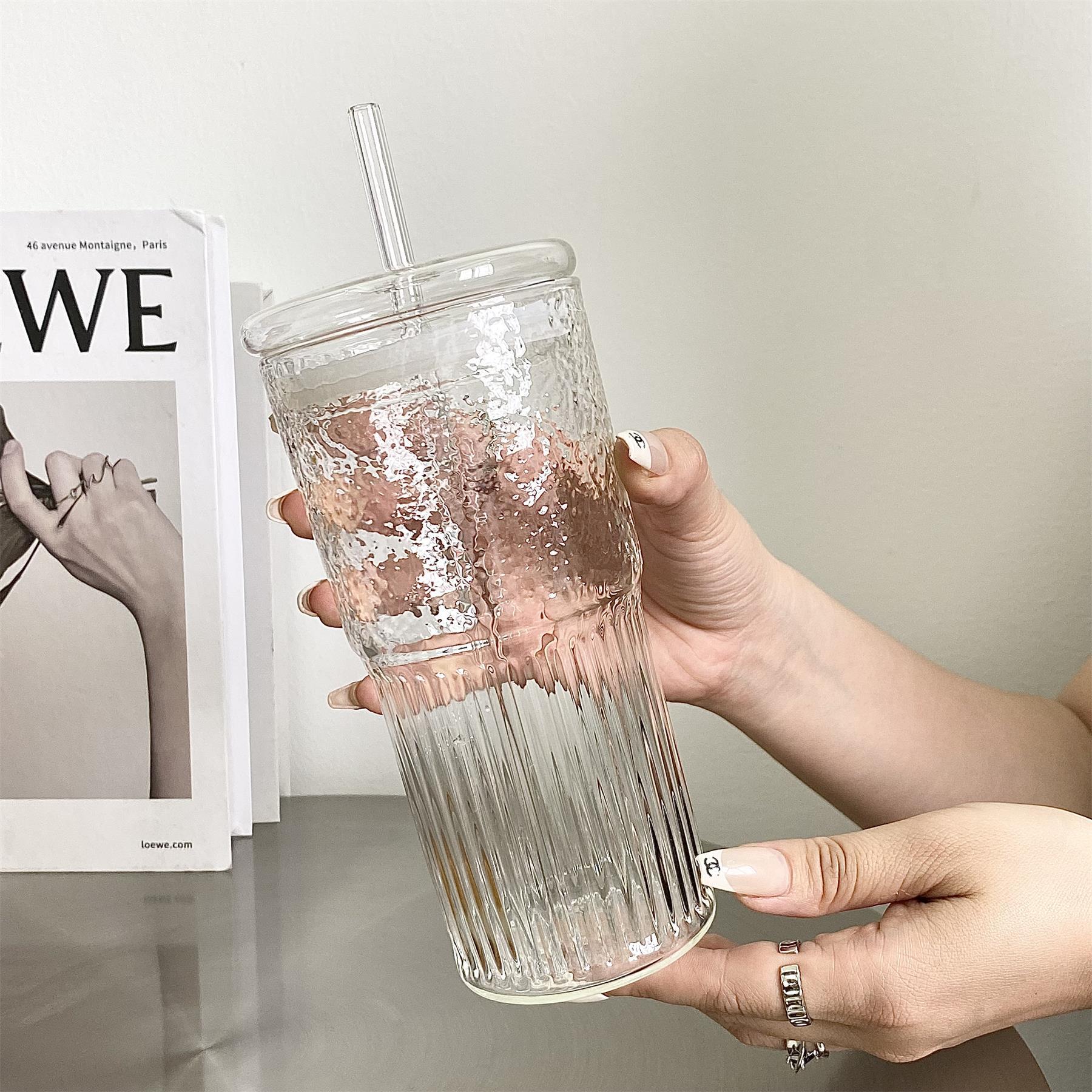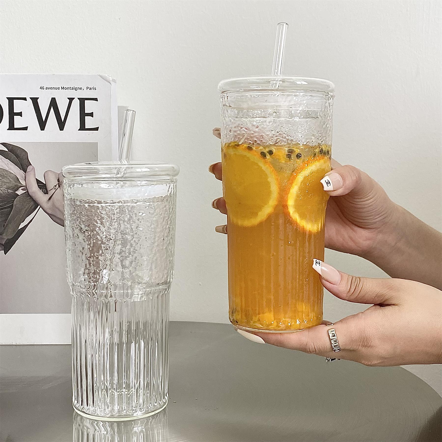 대용량 밀짚 유리 과일 차 컵 가정용 여름 특별 음료 주스 컵 마시는 컵 고붕규산염